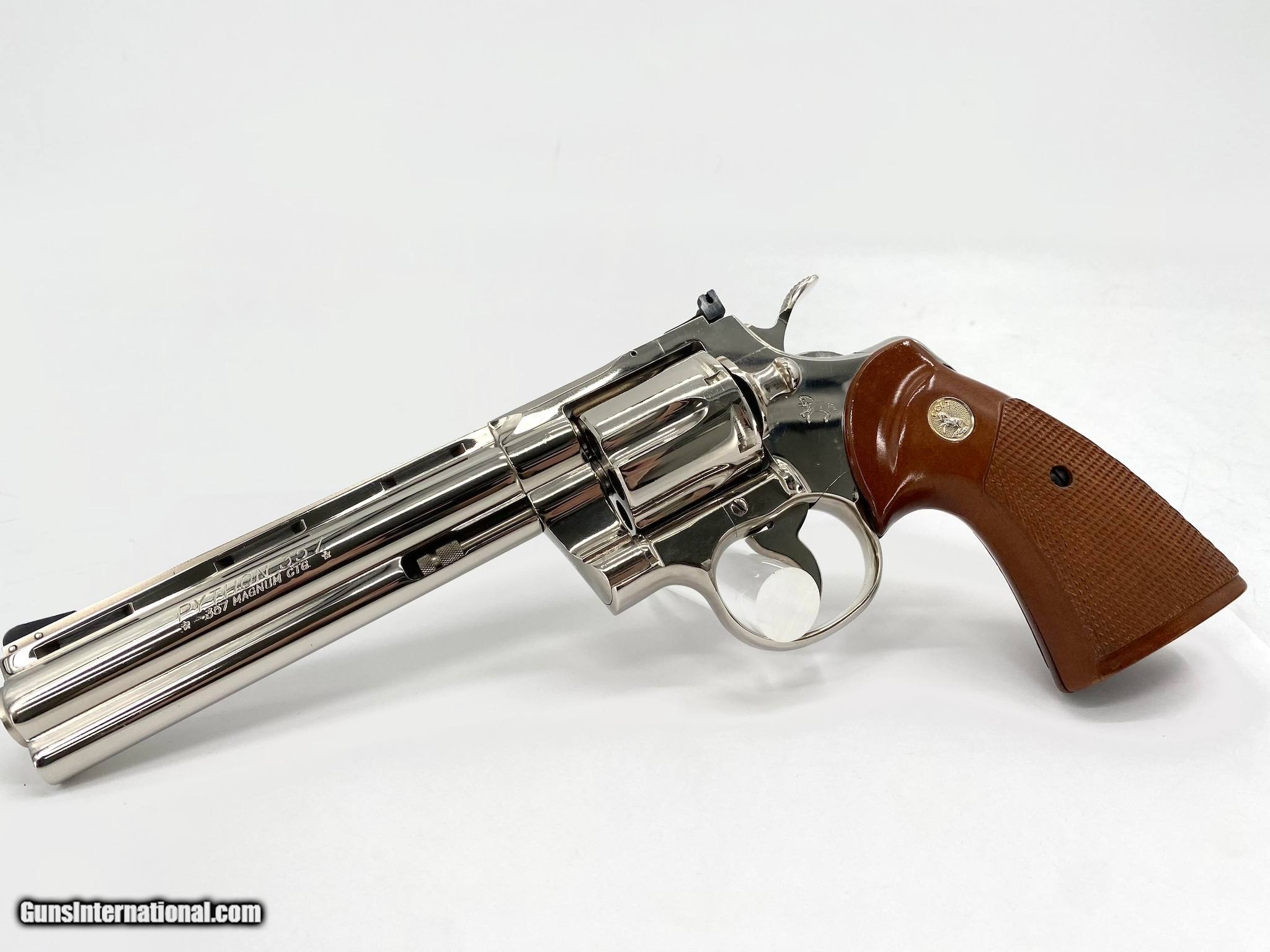 Description: Guns Listing ID: 1075283 Coly Python Nickel 6\" barrel .357 magnum With original box and in really good condition and still in perfect working order. SOLD Manufacturer: COLT Model: 1975 Python Caliber Info: .357 MAG Condition: Used - Non-Certified Barrels: 6 BARREL Finish: NICKEL |