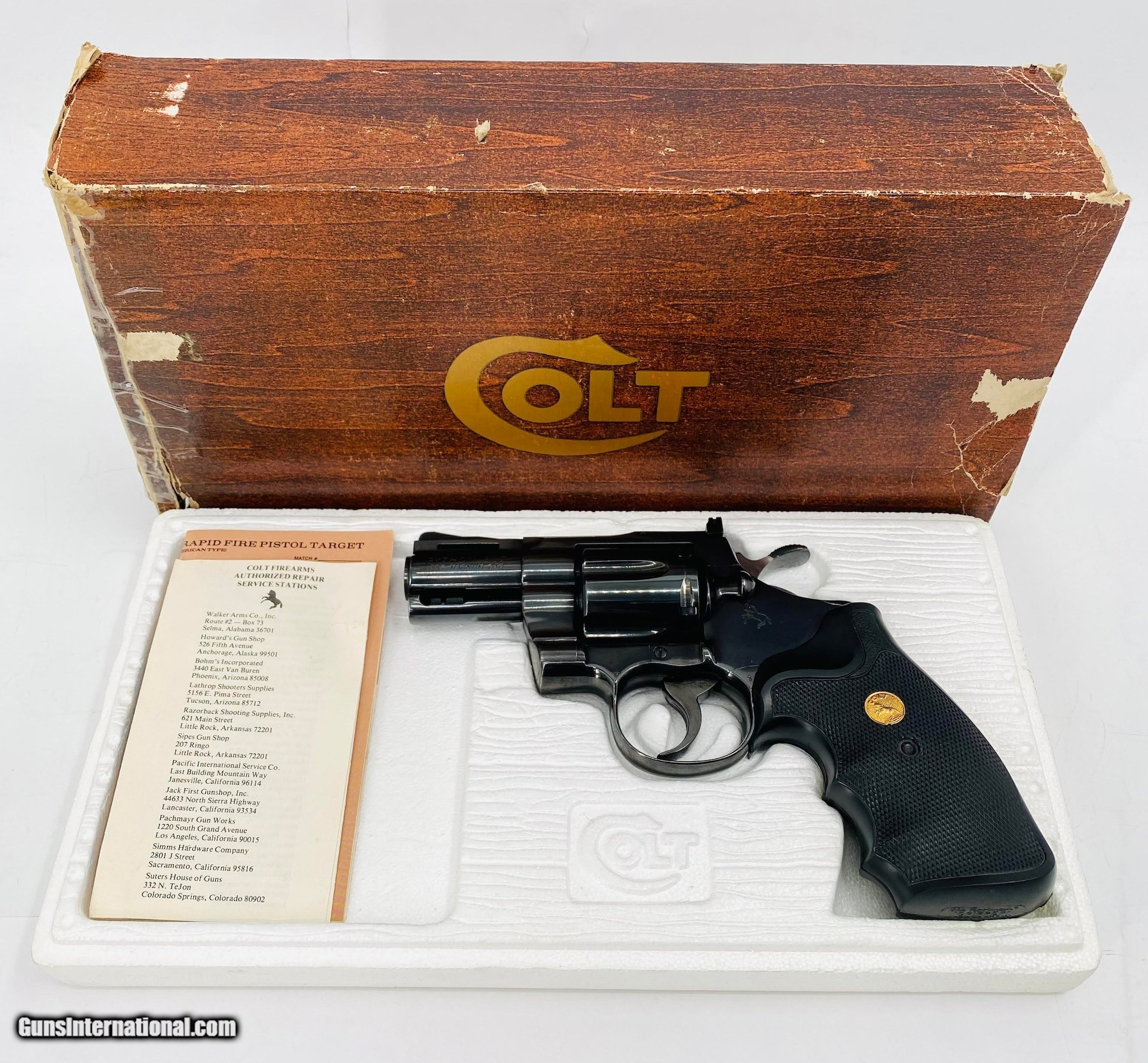 Description: Guns Listing ID: 867439 Colt Python 2.5 inch barrel, .357 mag, made in 1976, blued, with Colt Cardboard Box SOLD Manufacturer: COLT Model: 1976 PYTHON Caliber Info: .357 MAG Condition: Used - Non-Certified Barrels: 2.5 BARREL Finish: BLUED |