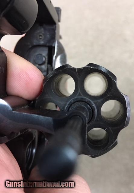 Description: From 1979 comes the second Python we have gotten in this week, and this one in 97-78% overall with excellent original Python wood grips, etc. Bore and chambers are perfect in all respects. Sorry but no box or papers, but still a wonderful old Python with only the most minor of any condition issue. I wonder which one will leave first? Probably this one as collectors seem to love the factory checkered walnut grips (saw a pair sell online yesterday for $300). SOLD |