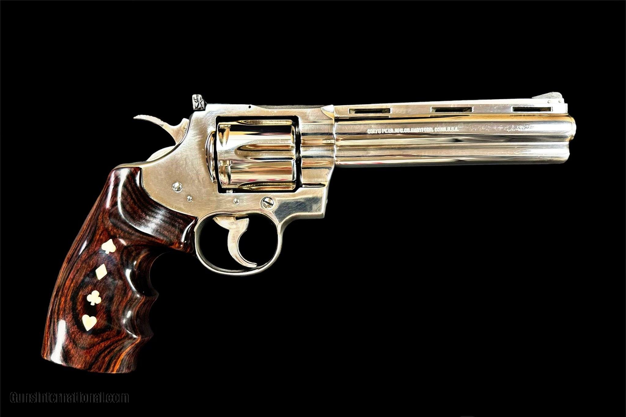 Description: Guns Listing ID: 1160236 Beautiful 6\" 1984 COLT PYTHON with nickel finish. Tight lock up with what looks like a very little round count. We acquired this gun through a large estate sale, all of which were well maintained snake guns. These pictures don‚‚t do it justice! The gun overall is in excellent condition as the photos show, however like most 40-year-old nickel revolvers there‚‚s small, almost unnoticeable surface scratches. A tiny bit of the finish is removed (4th photo) on the top of the cylinder (unnoticeable when cylinder is closed) and of course aftermarket grip SOLD Manufacturer: COLT Model: 80‚‚s PYTHO Caliber Info: .357 MAG Condition: Used - Non-Certified Barrels: 6 BARREL Finish: NICKEL |