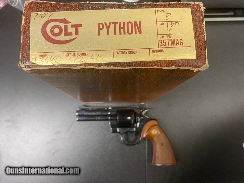Description: Guns Listing ID: 264027 The Colt Python is described by many as the finest production revolver ever made. Although popular, the Python was discontinued in 1999 after more than four decades of production. It was recently re-introduced in 2020 but to purists it is by no means the same. This Colt Python features a 4\" barrel with a blued steel finish. Caliber .357 MAG Action REVOLVER Capacity 6 ROUNDS Barrel Length 4\" BARREL Weight 2 LBS. Finish BLUED SOLD Manufacturer: COLT Model: COLT PYTHON 357 MAG/ 38 SP Caliber Info: .38 SPECIAL/.357 MAGNUM Condition: Used - Non-Certified Barrels: 4" barrel Finish: BLUE |