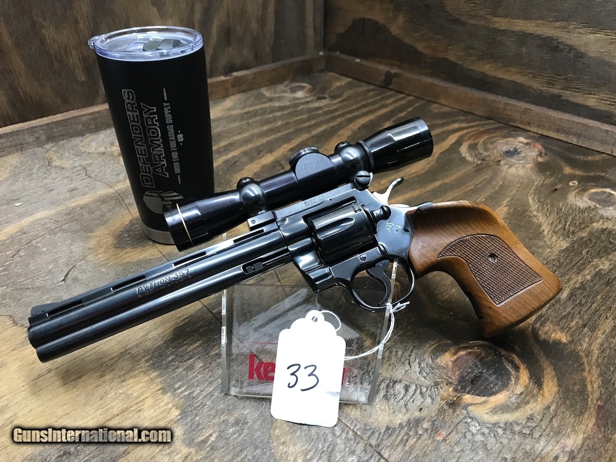 Description: Guns Listing ID: 356238 Colt, Python, .357, 8” barrel, blue finish, with Leupold M8-4x optic on Buhler mount, wood target grips, NO BOX, absolutely amazing condition, SOLD Manufacturer: COLT Model: COLT PYTHON 357 MAG/ 38 SP Caliber Info: .357 MAG Condition: Used - Non-Certified Barrels: 8 BARREL Finish: BLUE |