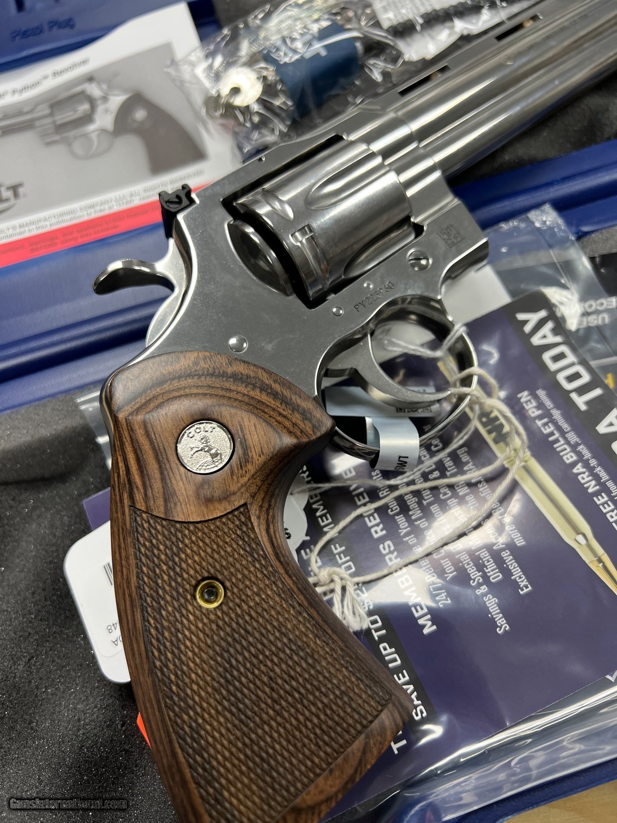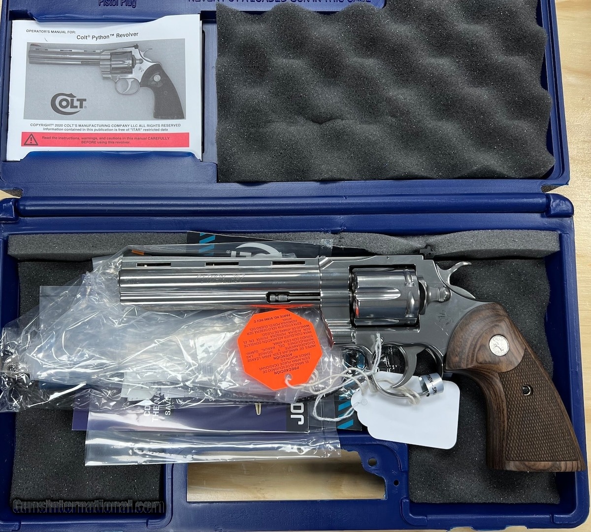 Description: Guns Listing ID: 459733 *********IN ORIGINAL BOX AND LOCK WITH MANUALS************** Building on Colt’s Snake Gun legacy, the legendary double-action revolver returns in stainless steel in 4.25” and 6” barrel lengths. The 2020 Colt Python features modern stainless steel alloys and a re-designed rear sight. Thirty percent more steel beneath the rear adjustable target sight gives you a stronger revolver and more robust shooting experience. A recessed target crown, user-interchangeable front sight, and Walnut grip with the iconic Colt medallion make this a gun you’ll want to shoot AND show off. The Python is chambered in .357 Magnum and also accommodates .38 Special cartridges. SOLD Manufacturer: COLT Model: COLT PYTHON 357 MAG/ 38 SPCL 6 Caliber Info: .38 SPECIAL/.357 MAGNUM Condition: Used - Non-Certified Barrels: 6 BARREL |