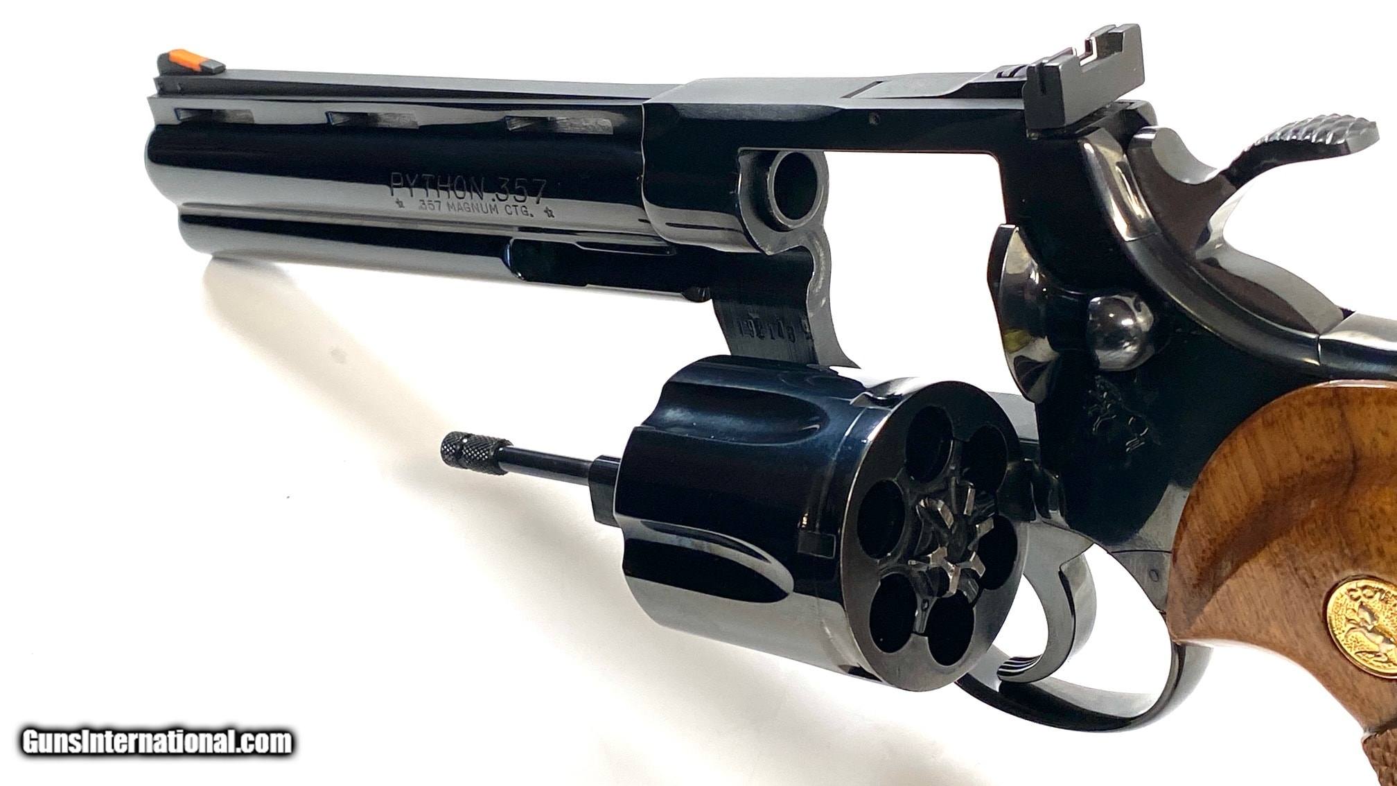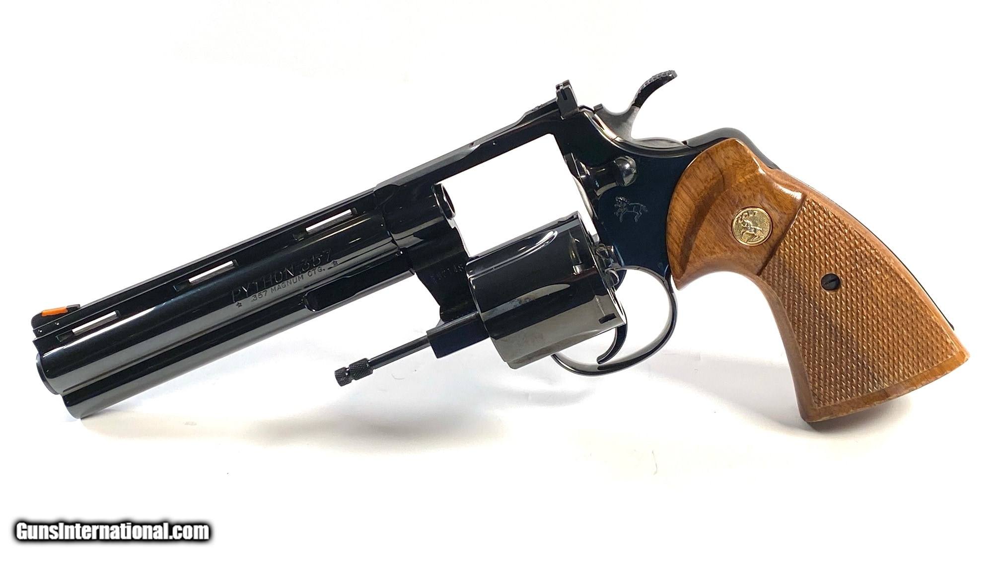 Description: Guns Listing ID: 515135 Mint Condition 6\" bbl with optional 8\" bbl \"Fact Box & Papers Made in 1990 Stock # 02260022 Serial # T92148 SOLD Manufacturer: COLT Model: COLT PYTHON 357 MAG/ 38 SPCL 6 Caliber Info: 357 MAG Condition: Used - Non-Certified Barrels: 6 BARREL Finish: BLUE |