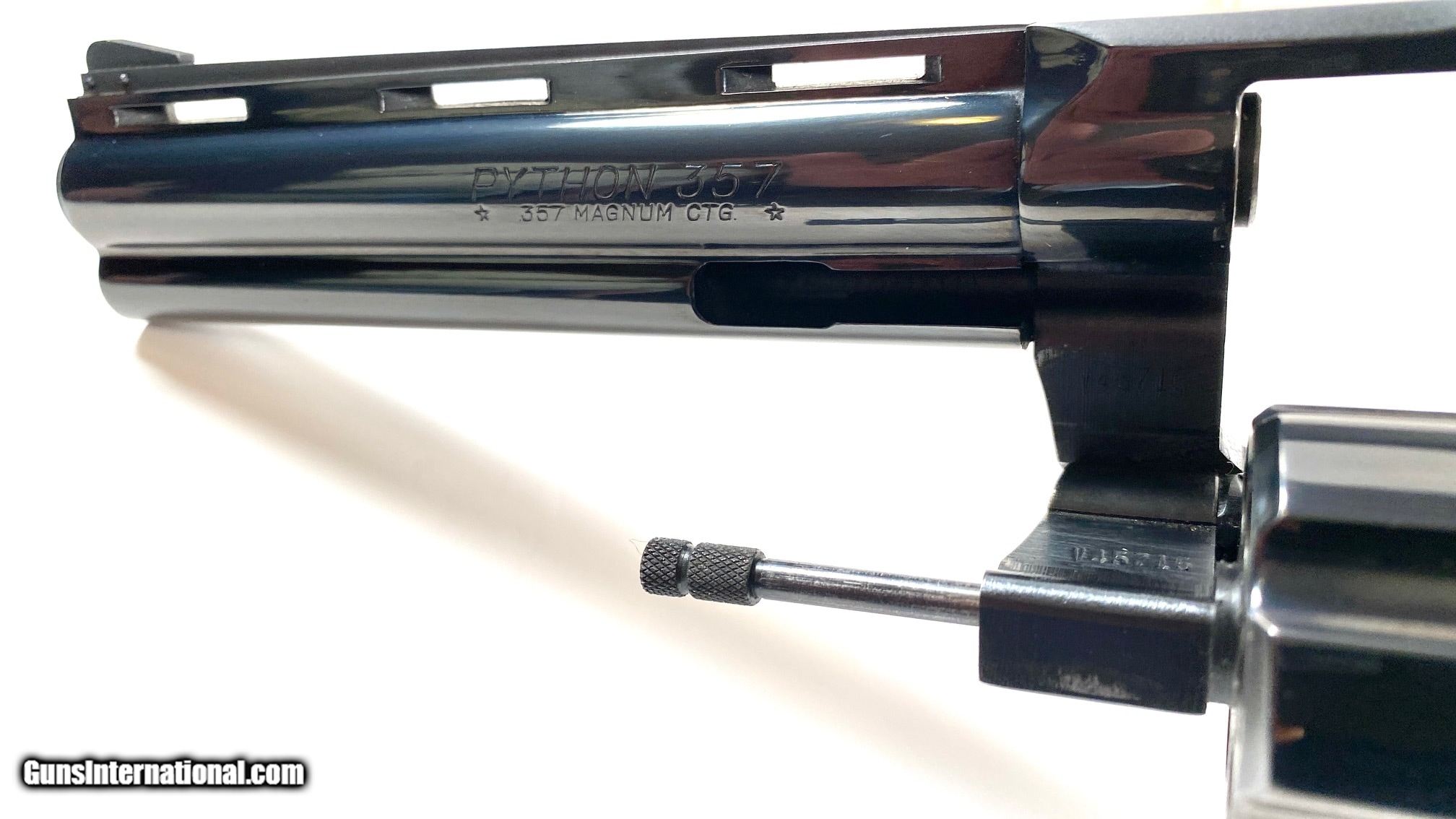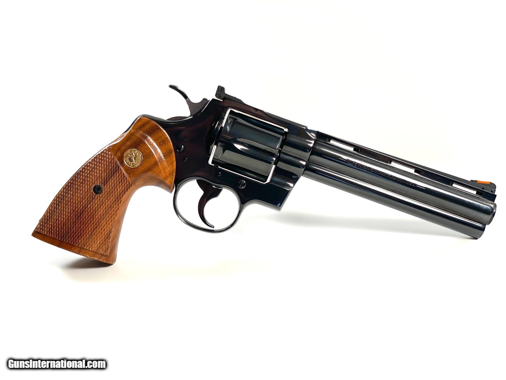Description: Guns Listing ID: 514450 \"Old Python\" Made in 1979 .357 magnum, 6\" barrel 6 Shot Double action. Incredible smooth blue finish. Mint Condition. No Box Stock # 04300022 Serial # V45715 SOLD Manufacturer: COLT Model: COLT PYTHON 357 MAG/ 38 SPCL 6 Caliber Info: 357 MAG Condition: Used - Non-Certified Barrels: 6 BARREL Finish: BLUE |