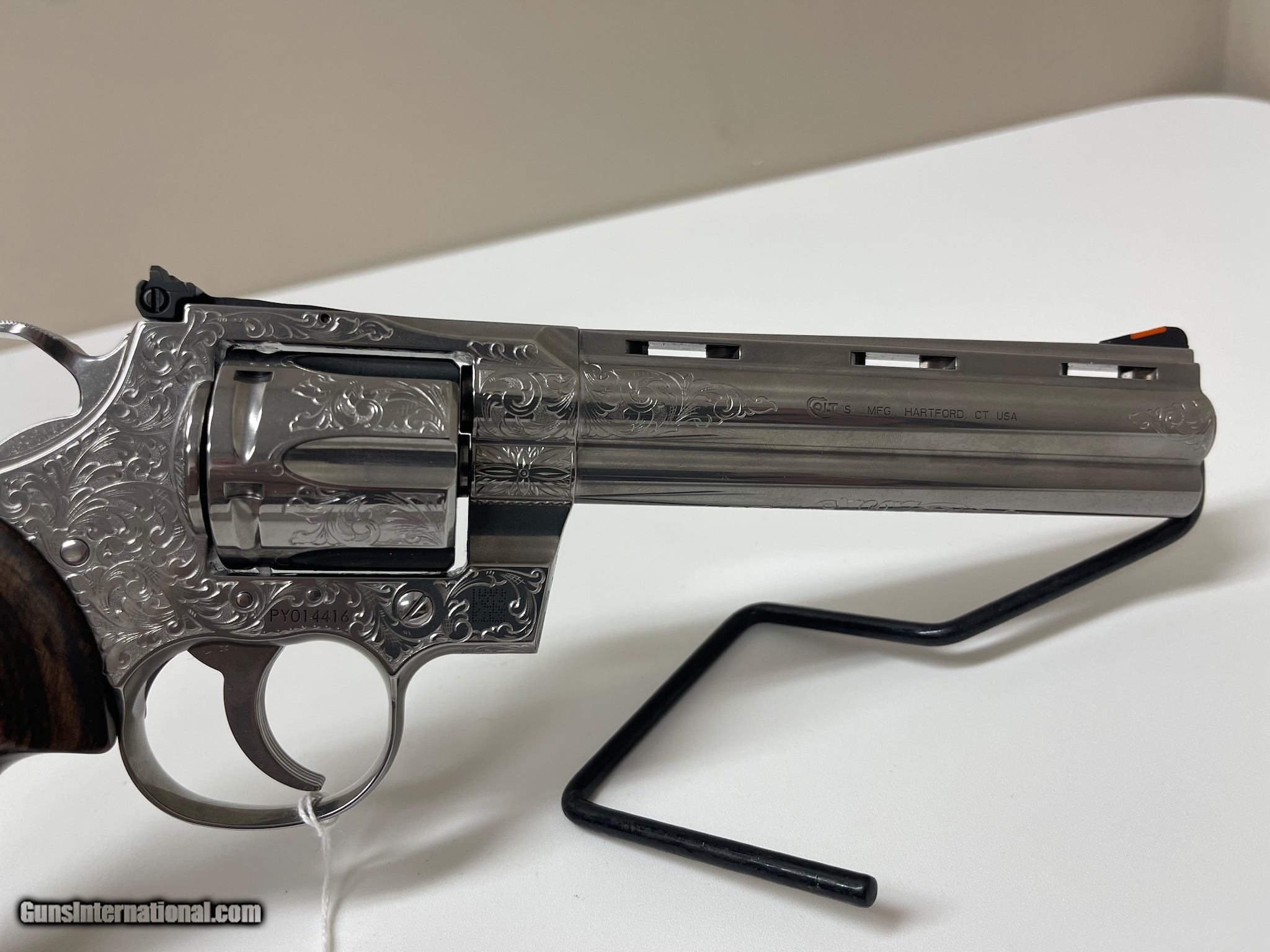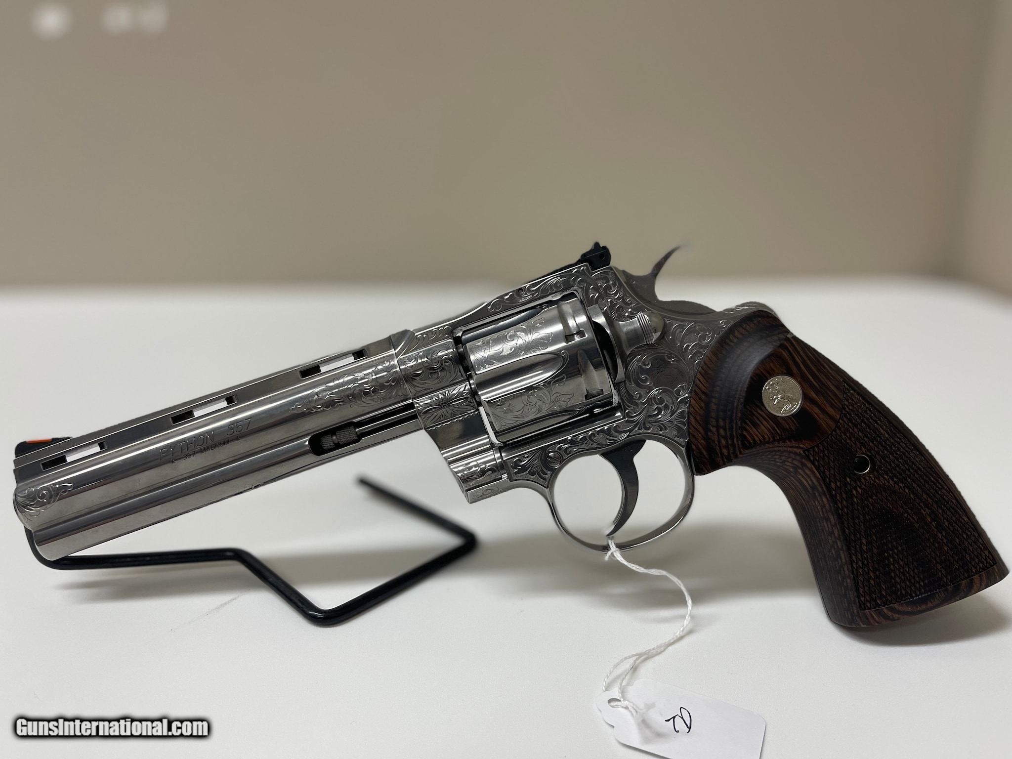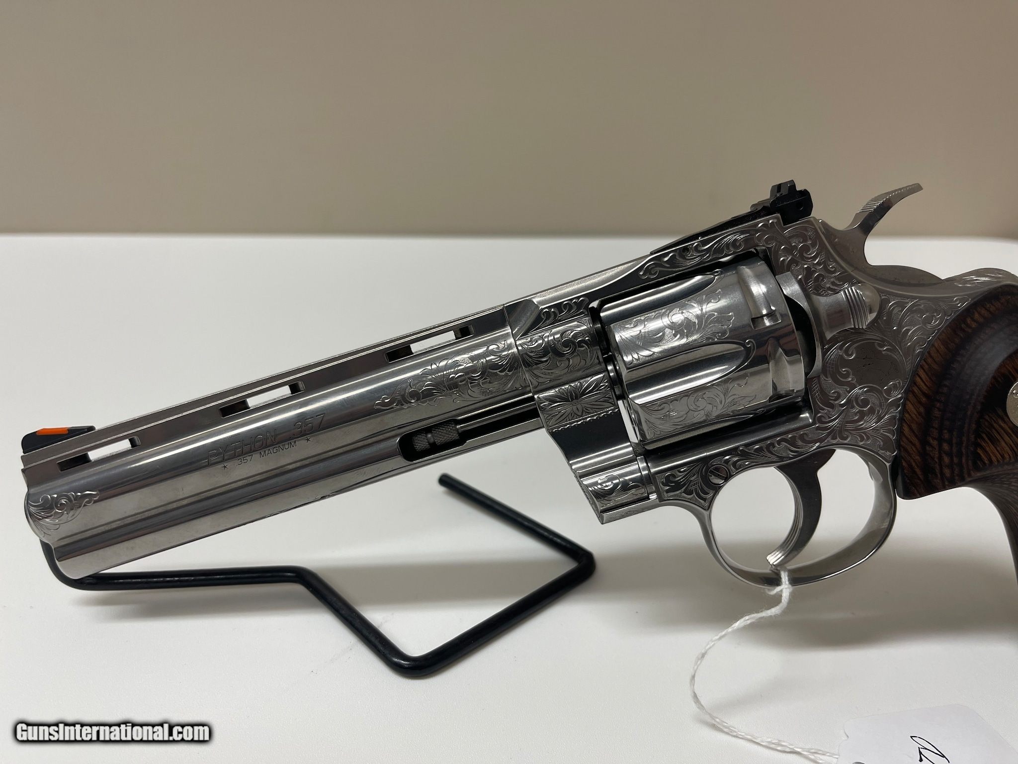 Description: Guns Listing ID: 315410 THIS IS A BRAND NEW GUN NEVER FIRED Comes with original packaging and paperwork , This is a very unique Colt Python 357 magnum with some very fine engraving work done to it. Custom work done by colt custom shop. SOLD Manufacturer: COLT Model: COLT PYTHON 357 MAG/ 38 SPCL STAINLESS 2020 Caliber Info: 357 MAG Condition: Used - Non-Certified Barrels: 6 BARREL |