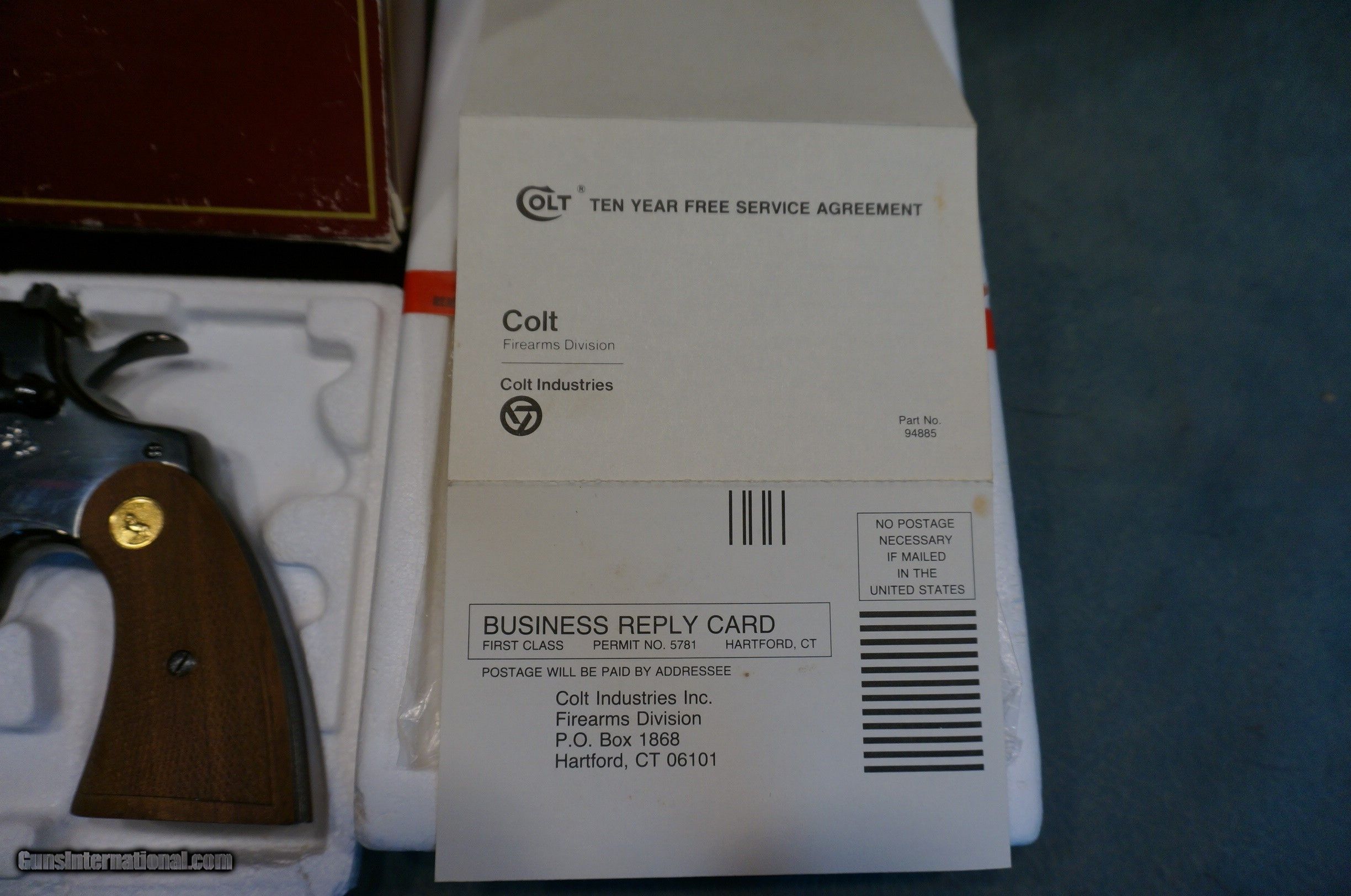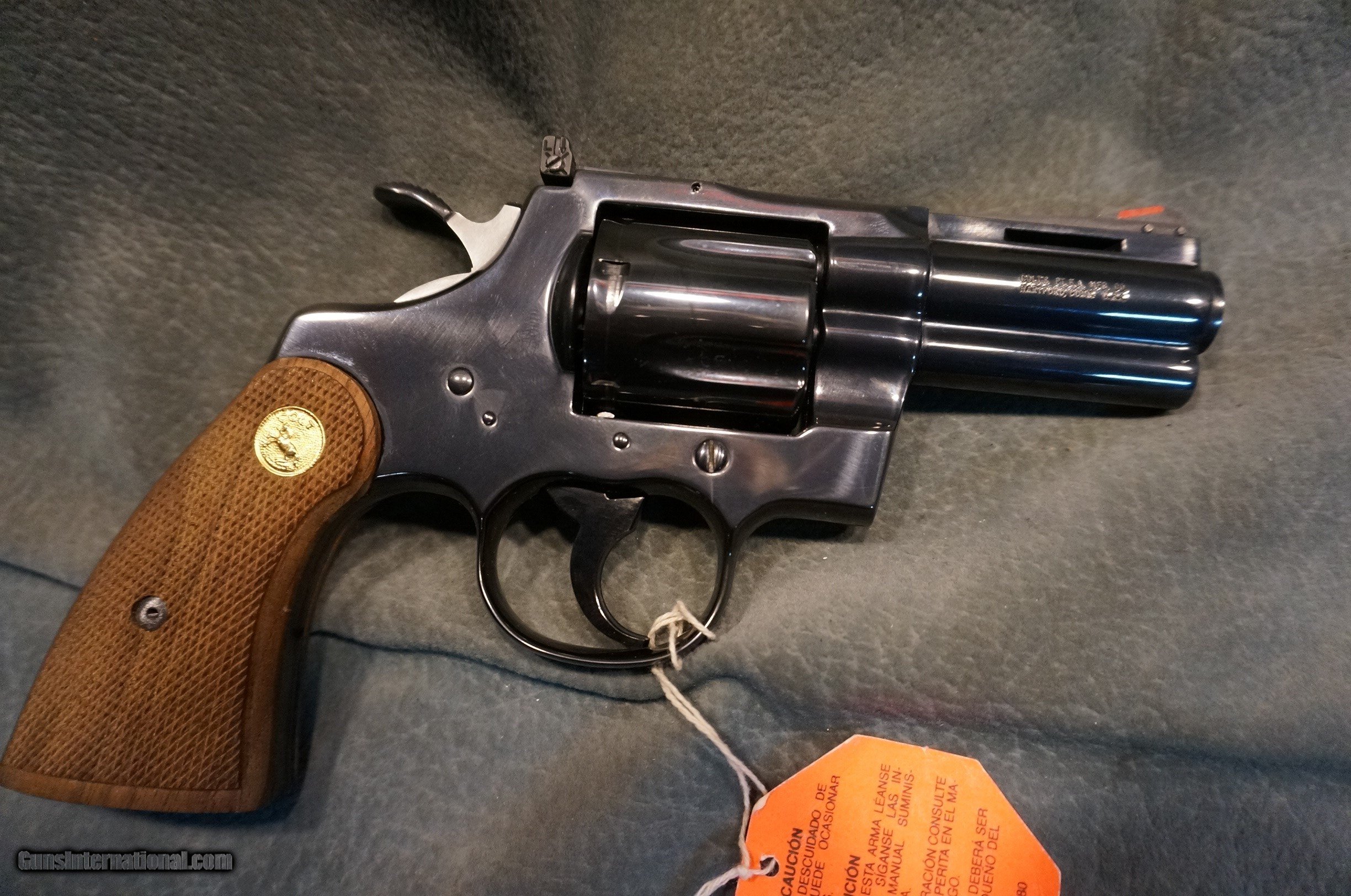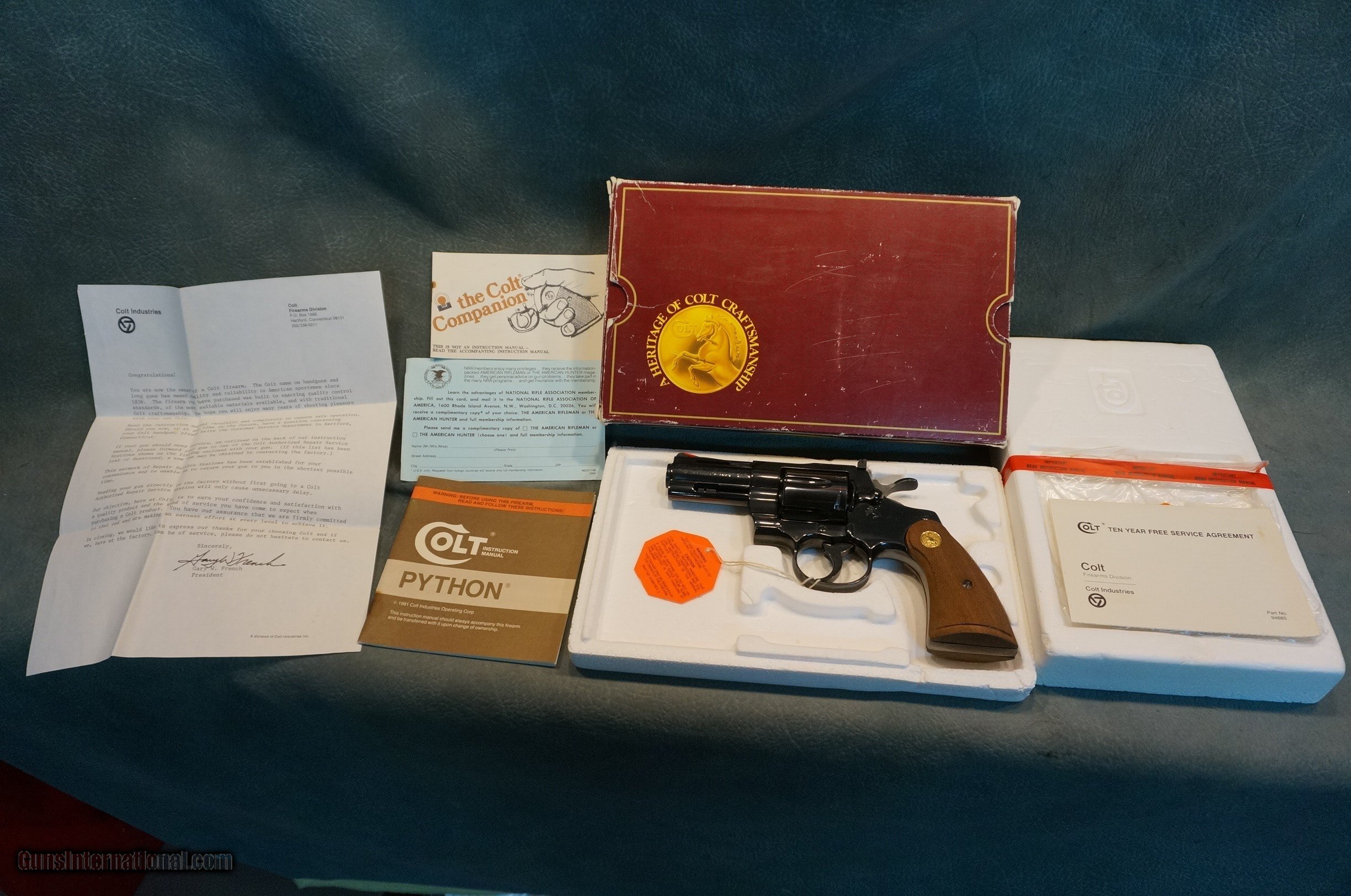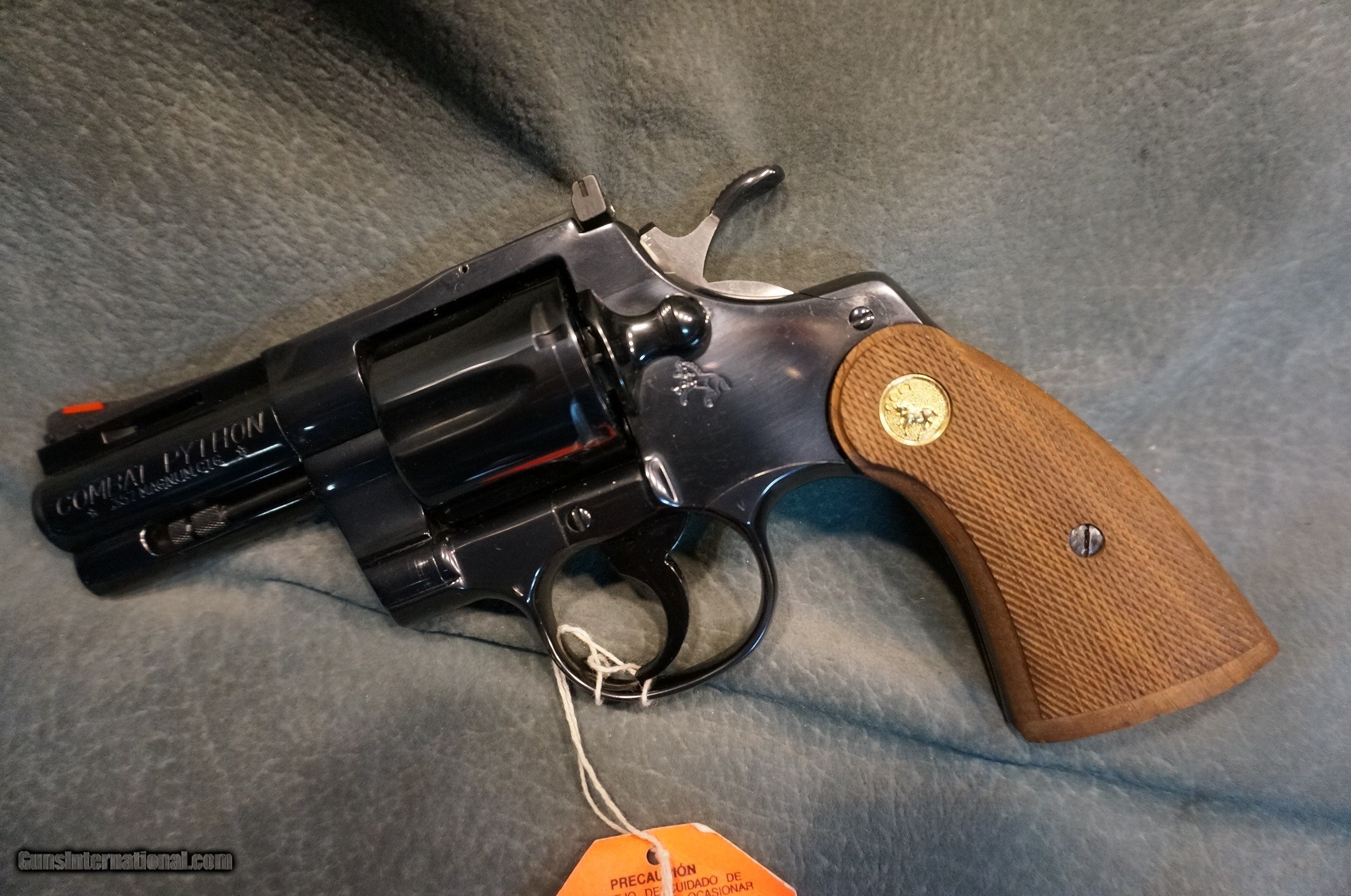 Description: Colt Combat Python 357Mag 3" barrel,Lew Horton Special Edition,serial #T73831,SKU I3630CP,one of 498 made and delivered in February 1988,98-99% original bluing with a mark on the left side of the frame,we sold this new in our shop in 1988,it has the original box,papers and letter from Lew Horton,a one owner gun that has been shot very little. We buy, sell, consign and trade new and used firearms. This is our 43rd year in business. We offer 90 day layaways with 20% down. No return on layaways. Firearms will need to be transferred through a FFL dealer. Prices reflect a cash discount. There will be 3% added to credit card sales. We trade for gold and silver. Gun collections wanted for cash. THANK YOU! SOLD |
