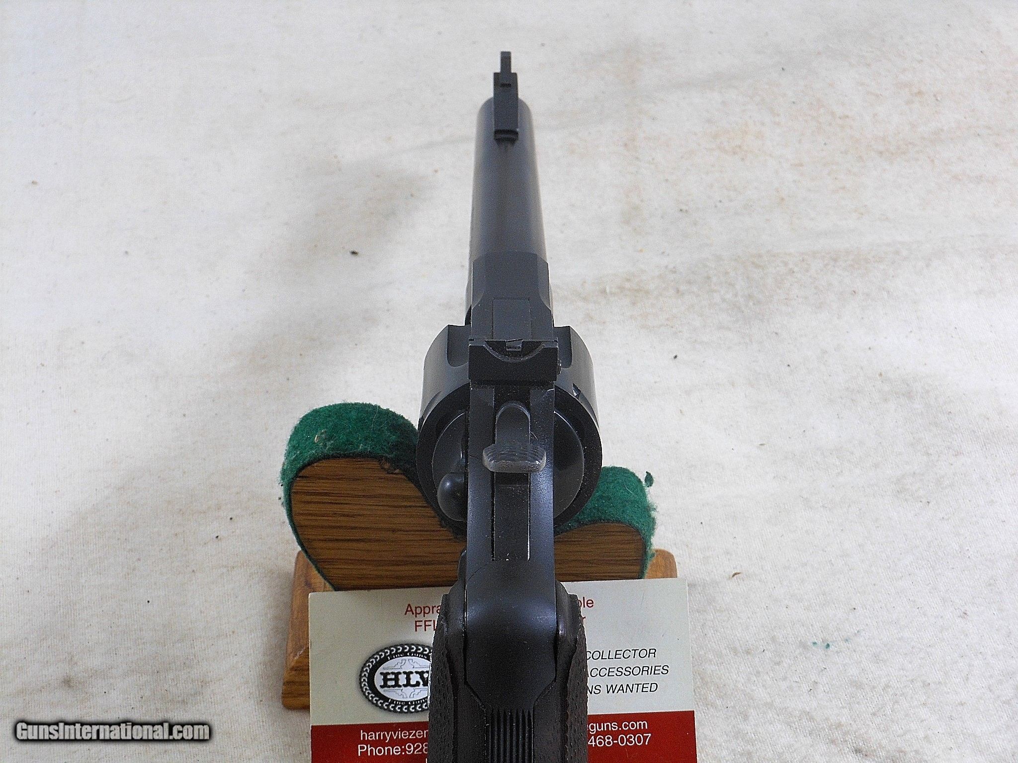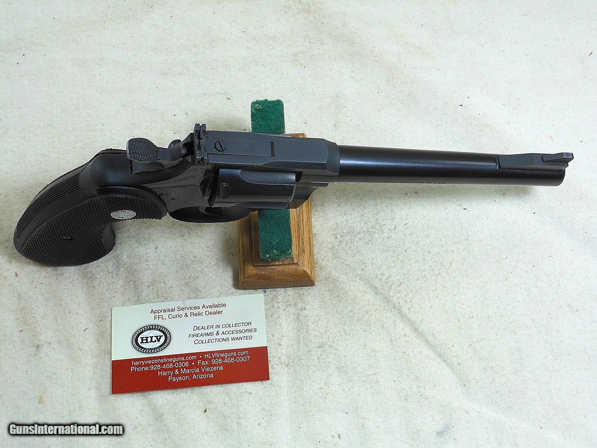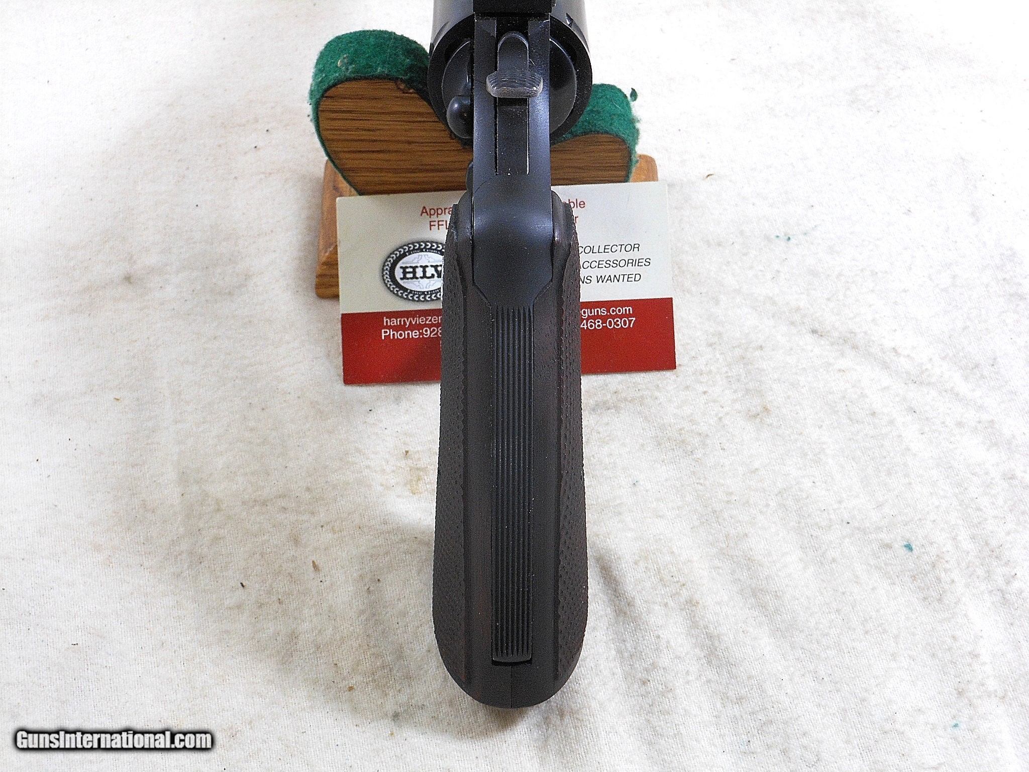 Description: SOLD This Colt is a First Year Production of 1954. The pistol's serial number is 4449. It has the standard 6 Inch barrel chambered for the 357 Magnum cartridge. This Colt is in as new condition only being test fired at the factory. The original test target is included in the box! The sights are original to this pistol. There is a instruction sheet in the box to show how to use and adjust the rear sight. The original bluing would rate a 99% to 100% overall condition. The original Colt wrap around grips are in new condition. This is a stunning as new Colt! This model Colt Is the forerunner of the famous Python Model. The "357" Model was hand fitted and assembled to give the smoothest action and trigger pull. This was the top of the line revolver at that time. I still think that this is one of the best revolvers ever built by Colt! The original box is intact. The gold tone end label is intact. The box has the cleaning brush, The test target, Colt three position key, Shooting suggestions And the instruction sheet for the rear target included. To be able to find this model in new condition with the original box and accessories is an amazing find! Being A first year production adds to the collector status of this fine Colt! The Early Box Of 357 Magnum Ammunition Is not Included With This Colt. Box sold separatly. Search for hlvfineguns on google for more details. Curio&Relic LREE (12) F. No. 581 -21 SOLD Curio/Relic: Yes Handgun Caliber: .357 Magnum Manufacturer: Colt Model: 357 Serial Number: 4449 Barrel Length: 6 Inch Chambers: Minty Condition: 99% To 100% Overall Metal Condition: As New Wood Condition: As New Bore Condition: Minty Barrels: 6 Inch Barrel Type: Target Action: Double Action Finish: Blued Sights: Target Manufacture Date: 1954 Extras: Original Box And Accessories |