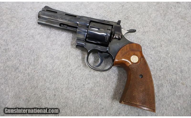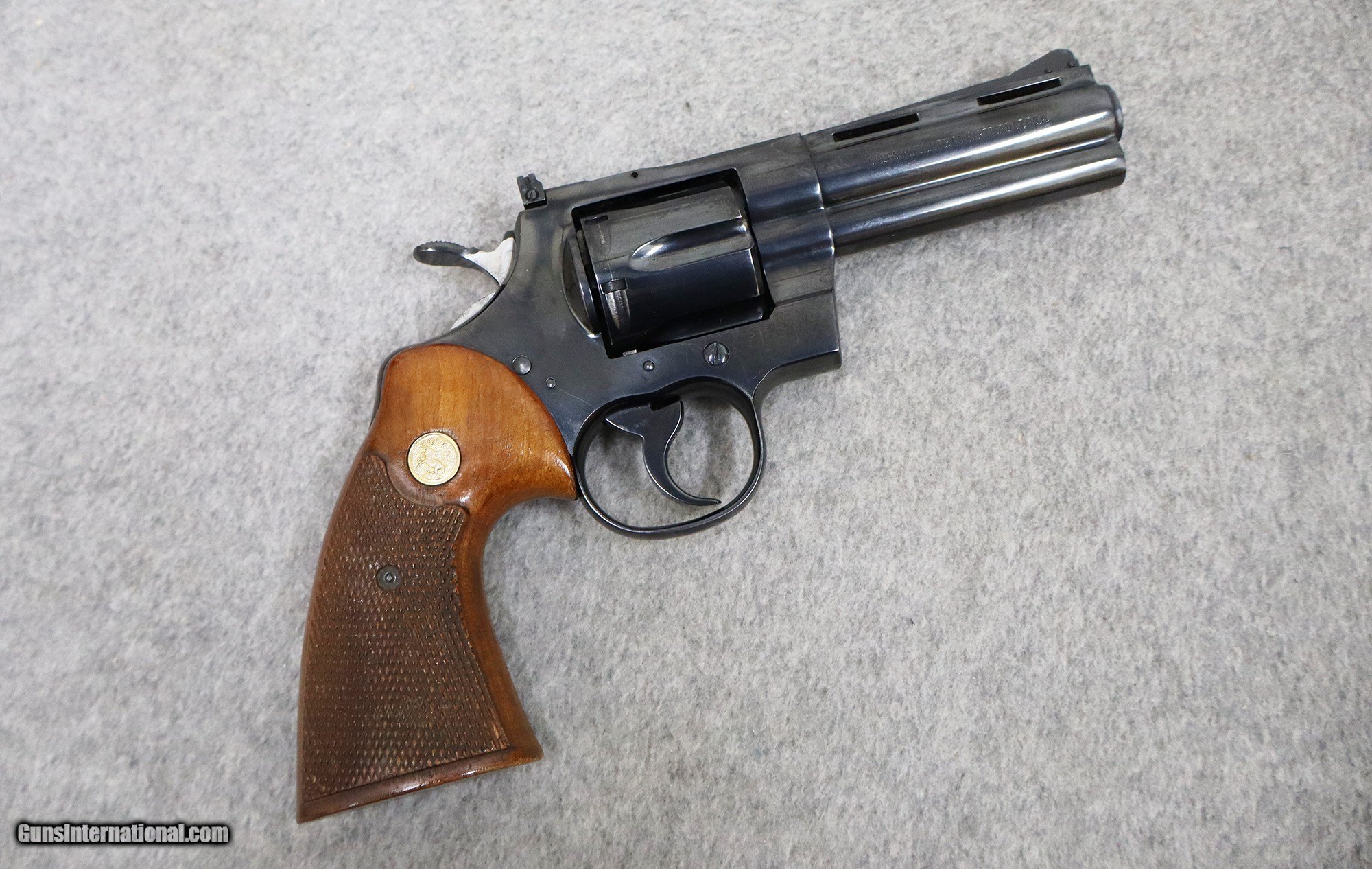Description: Colt model Python in Excellent Condition. This gun is chambered 357 Magnum. This double action revolver is as smooth as butter. Free shipping to any Bass Pro Shops or Cabelas store. .357 Mag Metal Condition: Excellent Wood Condition: Excellent Bore Condition: Excellent Barrels: 4 Inches Triggers: Factory Weight: 2 lb 6 oz Sights: Factory Item Location: Mitchell, SD Price: $2,599.99 Contact Seller |