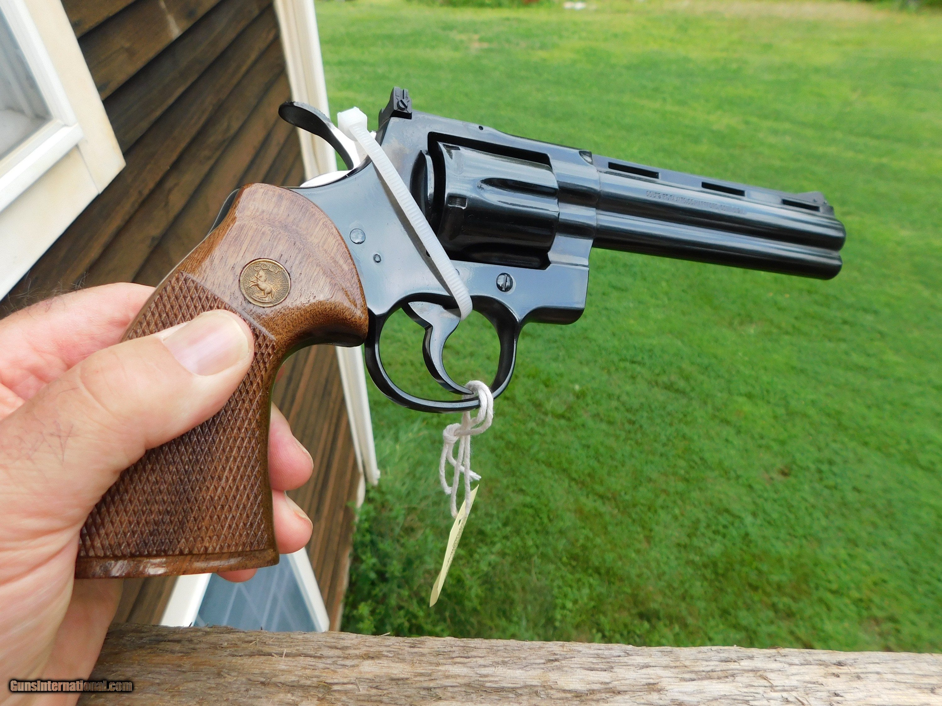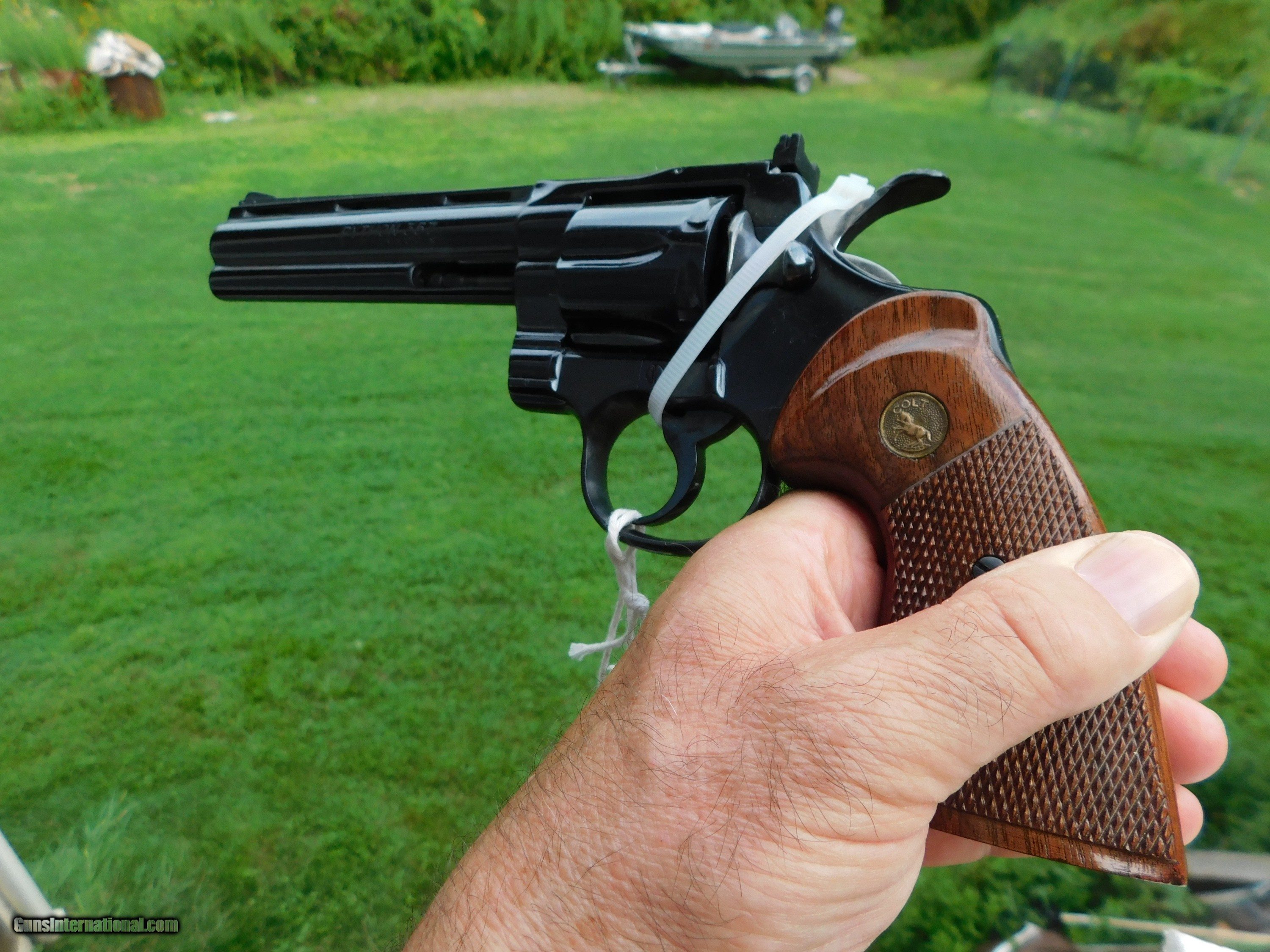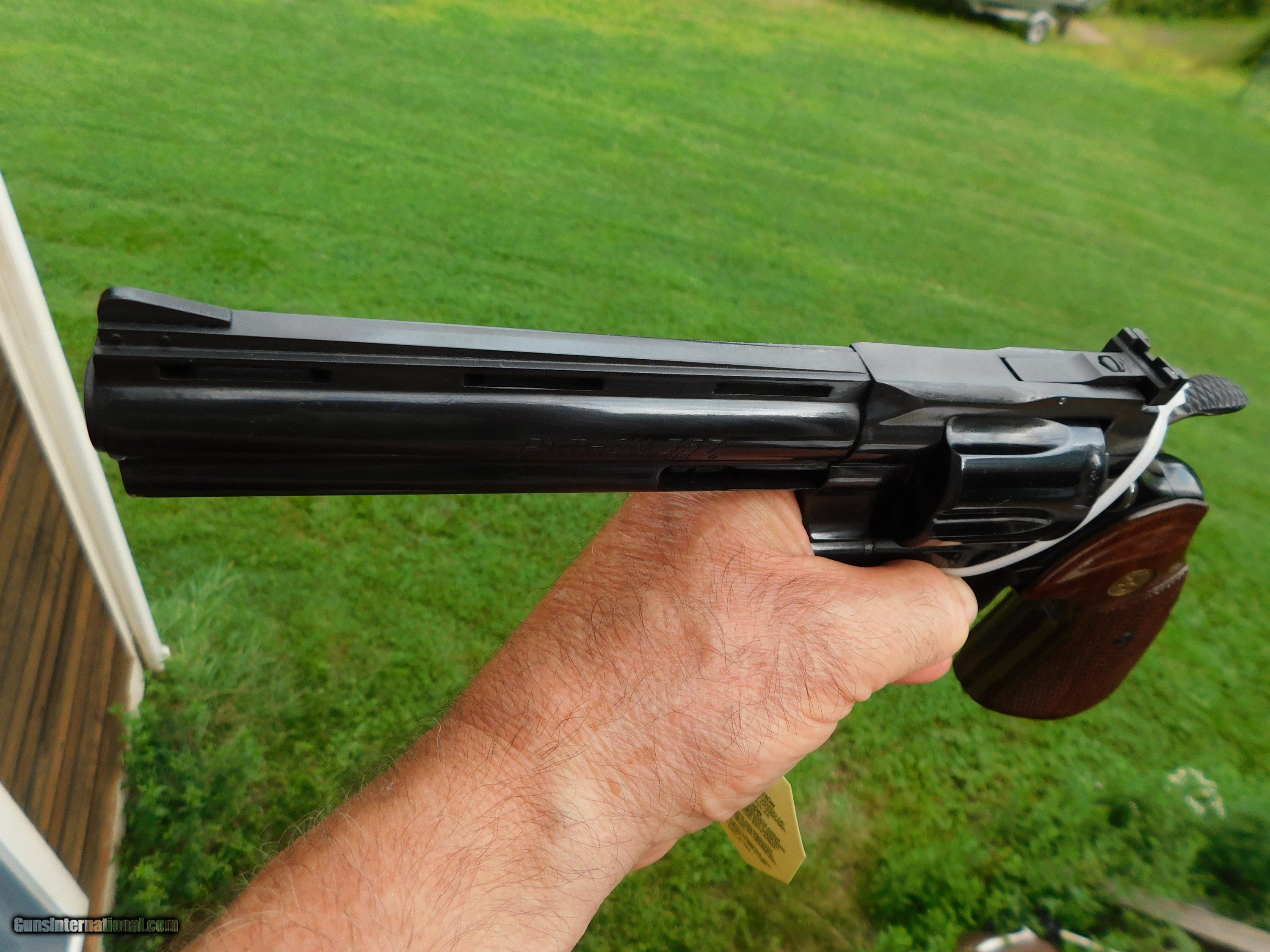 Description: SALE PENDING ARCHIE LEE. J NC 8/29/23 It is likley it was only test fired at the factory. There is no evidence of being carried or used to speak of. This beatiful example of a 6" 1970"s era hand made Python can be yours for $ 2995.00 and could not be farther from the mass produced reproductions beiing produced today. The 70's guns from Colt had exceptional deep blue, hand fitted parts and excellent triggers. Please note the following. We have this gun here but it is a consignment gun. There is a box serialized to the gun but the box was purchased separately and is being sold separately. It is an aftermarket box identical to the orginal. The fellow who owns the gun purchased the box which was liscensced by Colt. He paid $ 325.00 for the box and has provided the recipet for the box. He will sell the box for $ 199.00 it is also here and shown in some of the pics. Shipping with insurance is $ 65.00 (insurance represents most of that cost) IF IT DOES NOT SAY ."SALE PENDING, UNDER DEPOSIT or ON HOLD"...IT IS AVAILABLE. WE DO NOT REPLY TO INQUIRIES THAT SAY "INTERESTED IN THIS GUN" OR "IS IT AVAILABLE" IF YOU WOULD LIKE TO BUY THIS OR ANY OF OUR GUNS WE SUGGEST YOU PHONE US; WE ARE OFTEN AVAIALABLE LONG HOURS. IF YOU ARE INTERSTED IN A GUN THAT IS UNDER DEPOSIT AND WOULD LIKE TO BE NOTIFIED IF A SIMILAR GUN COMES IN DROP US A LINE AND WE WILL MAKE EFFORTS TO CONTACT YOU WHEN ONE DOES COME IN. WE HAVE OVER 2000 SALES ON ALL SITES WITH AN A+ RATING ON ALL WE ALSO KEEP AN INVENTORY OF OLDER PERIOD CORRECT SCOPES; CALL WITH NEEDS WE MOSTLY PICK VERY CLEAN AND LIGHLTY USED GUNS. WE ARE HAPPY TO TAKE CONSIGNMENT GUNS AND COLLECTIONS OR WILL BUY YOURS OUTRIGHT. WE SOMETIMES ARE EMPLOYED FOR ESTATE PURPOSES AND VALUATIONS. AT THIS TIME WE ARE ONLY ACCEPTING US POSTAL MONEY ORDERS OR BANK CHECKS FOR PAYMENT IT IS THE BUYERS RESPONSIBILITY TO GET US A COPY OF YOUR RECEIVING FFL'S LIC AND A COPY OF YOUR PHOTO ID BEFORE THE GUN SHIPS YOU MUST CALL OR CONTACT YOUR FFL.WE DO NOT CALL FOR YOU UNLESS THEY RQUIRE IT. LAYAWAY PURCHASES NOT COMPLETED ON ANY RETURNED ITEM UNLESS NOT AS DESCRIBED OR DAMAGED ARE SUBJECT TO A 10% RELISTING/RESTOCKING FEE AND MUST BE RETURNED WITH NO NEW MARKS OR SCRATCHES, SENT BACK INSURED, PRIORITY SIGNATURE REQUIRED. ALL INFORMATION CONTAINED HEREIN IS BELIEVED TO BE ACCURATE BUT IS NOT GUARANTEED. WITH ANY OLDER OR USED GUN IT SHOULD BE INSPECTED BY A GUNSMITH PRIOR TO SHOOTING. SOLD |