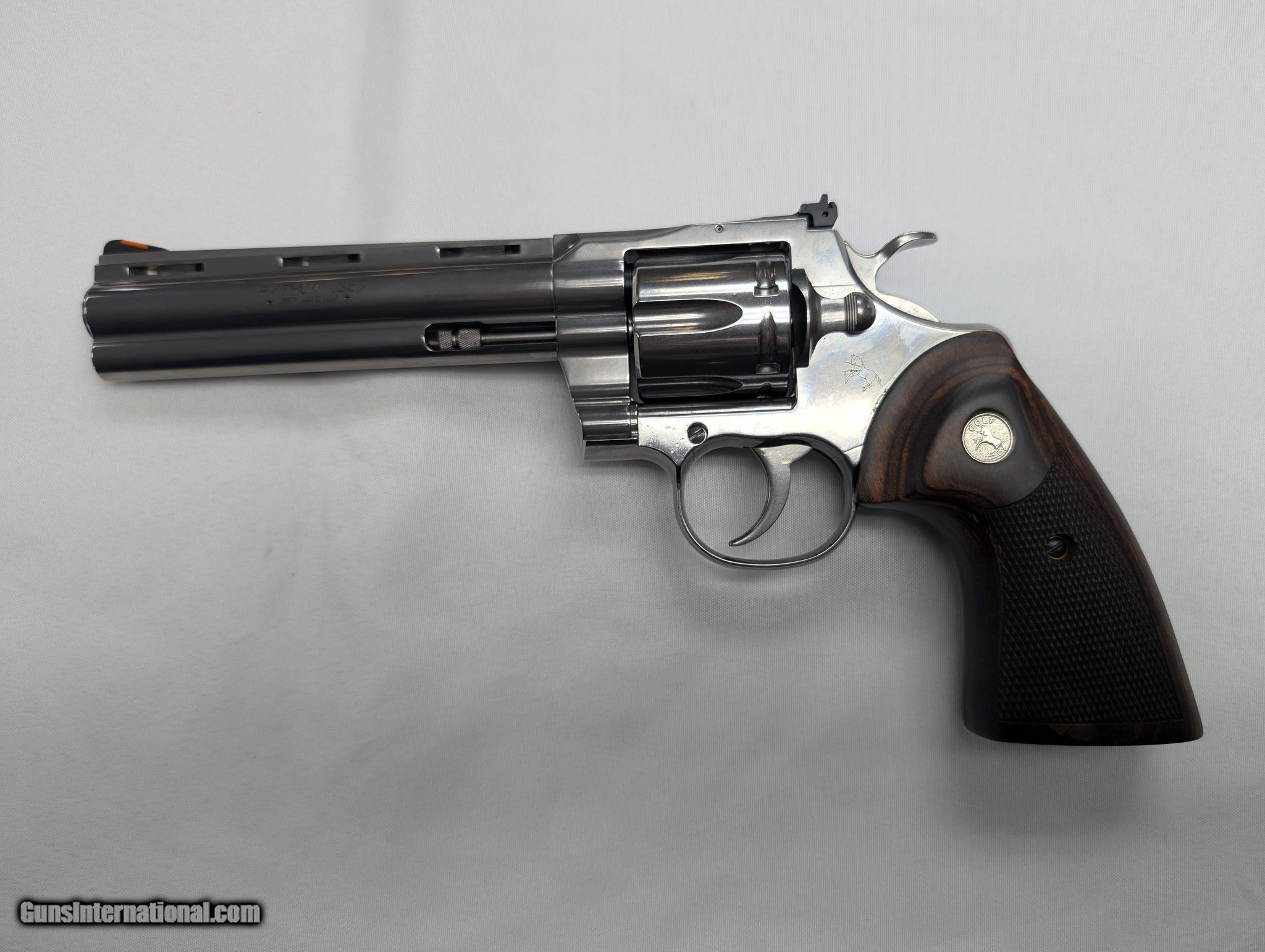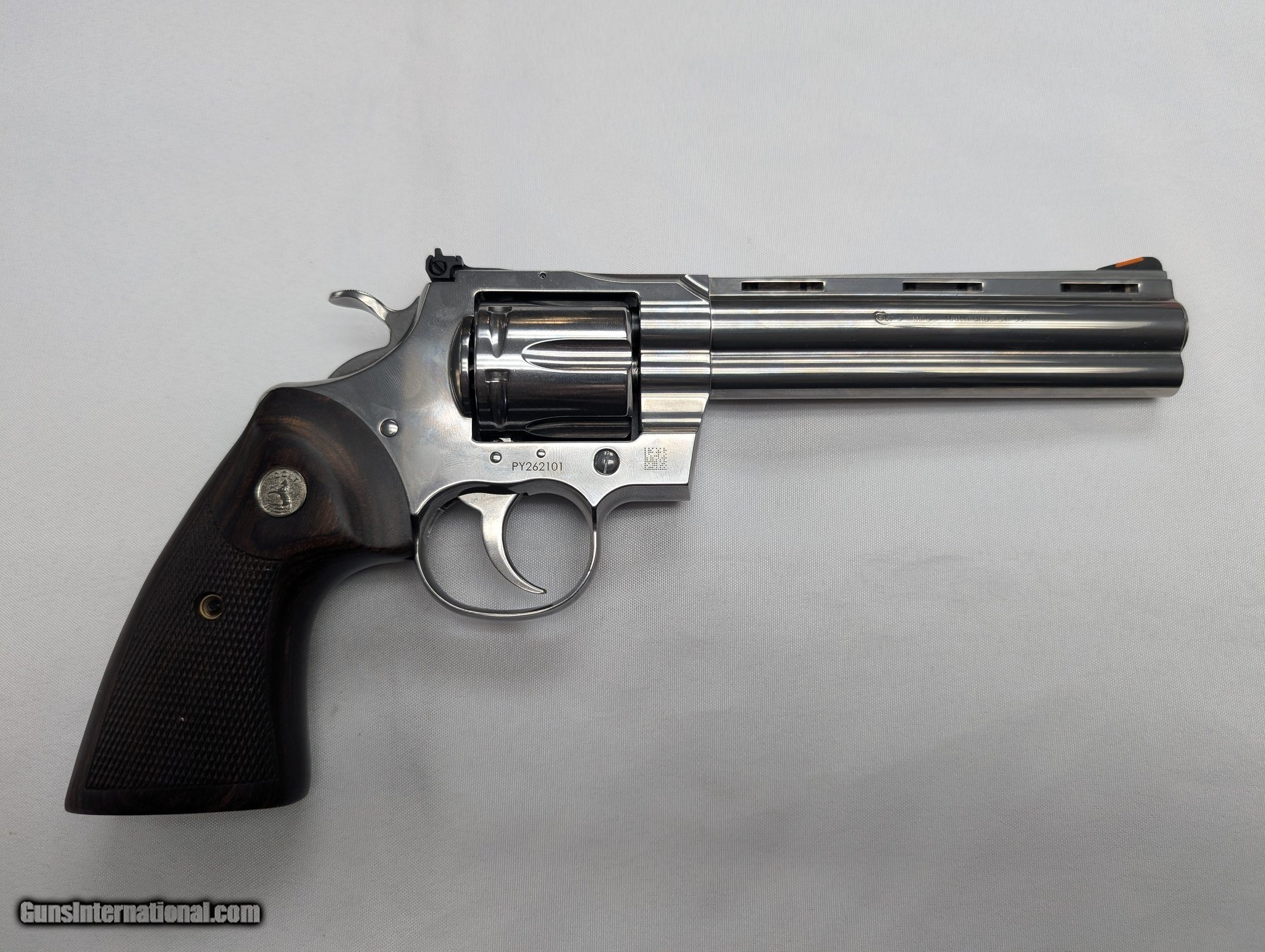 Description: Guns Listing ID: 474809 THIS REVOLVER IS EXCELLENT CONDITION AND COMES AS PICTURED WITH ORIGINAL CASE. SOLD Manufacturer: COLT Model: PYTHON STAINLESS 2020 Caliber Info: .38 SPECIAL/.357 MAGNUM Condition: Used - Non-Certified Barrels: 6 BARREL Action: DOUBLE ACTION Finish: STAINLESS Weight: 2.88 lbs. |