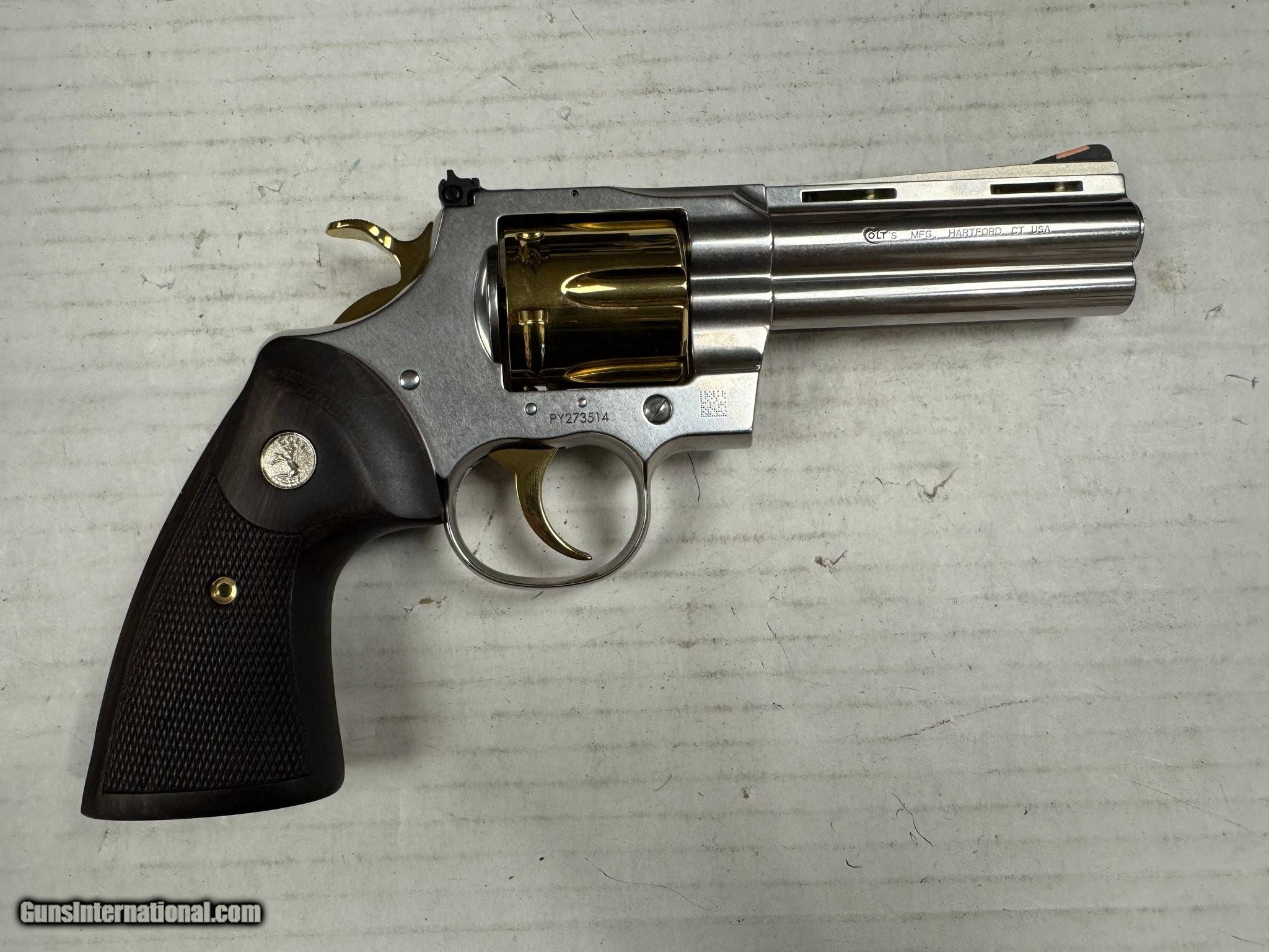 Description: Guns Listing ID: 577923 Colt Python 4.25\" Gold PVD Limited Edition, 357 Mag DA Revolver -Firearm is in like new condition -From estate sale, believed to be unfired -357 Mag -4.25 inch Barrel Manufacturer: COLT Model: Python 24K Gold Caliber Info: .357 MAG Condition: Used - Non-Certified Barrels: 4.25" BARREL Action: REVOLVER Finish: SILVER AND GOLD Price: $2,139.99 Contact Seller |
