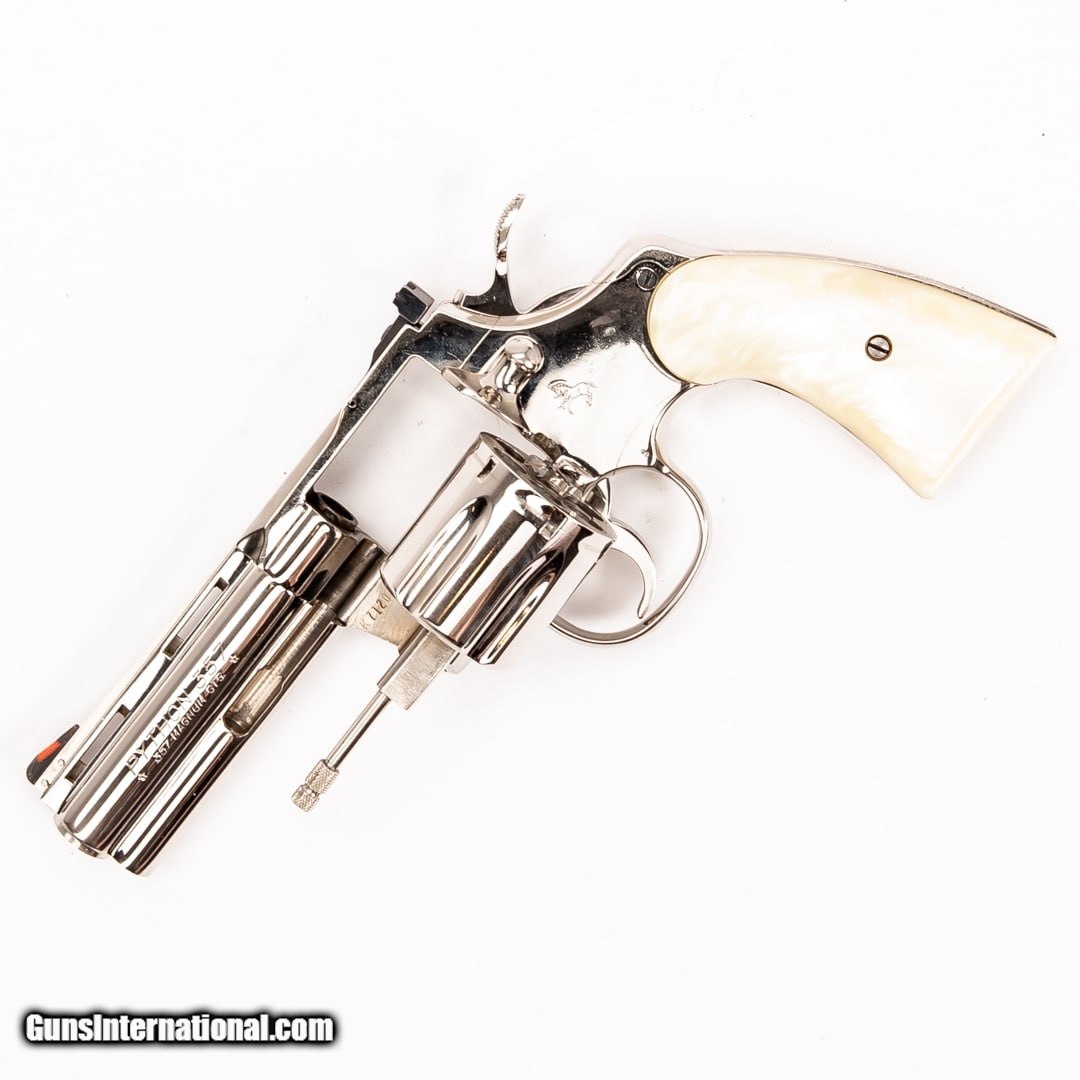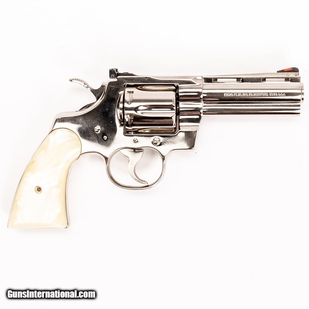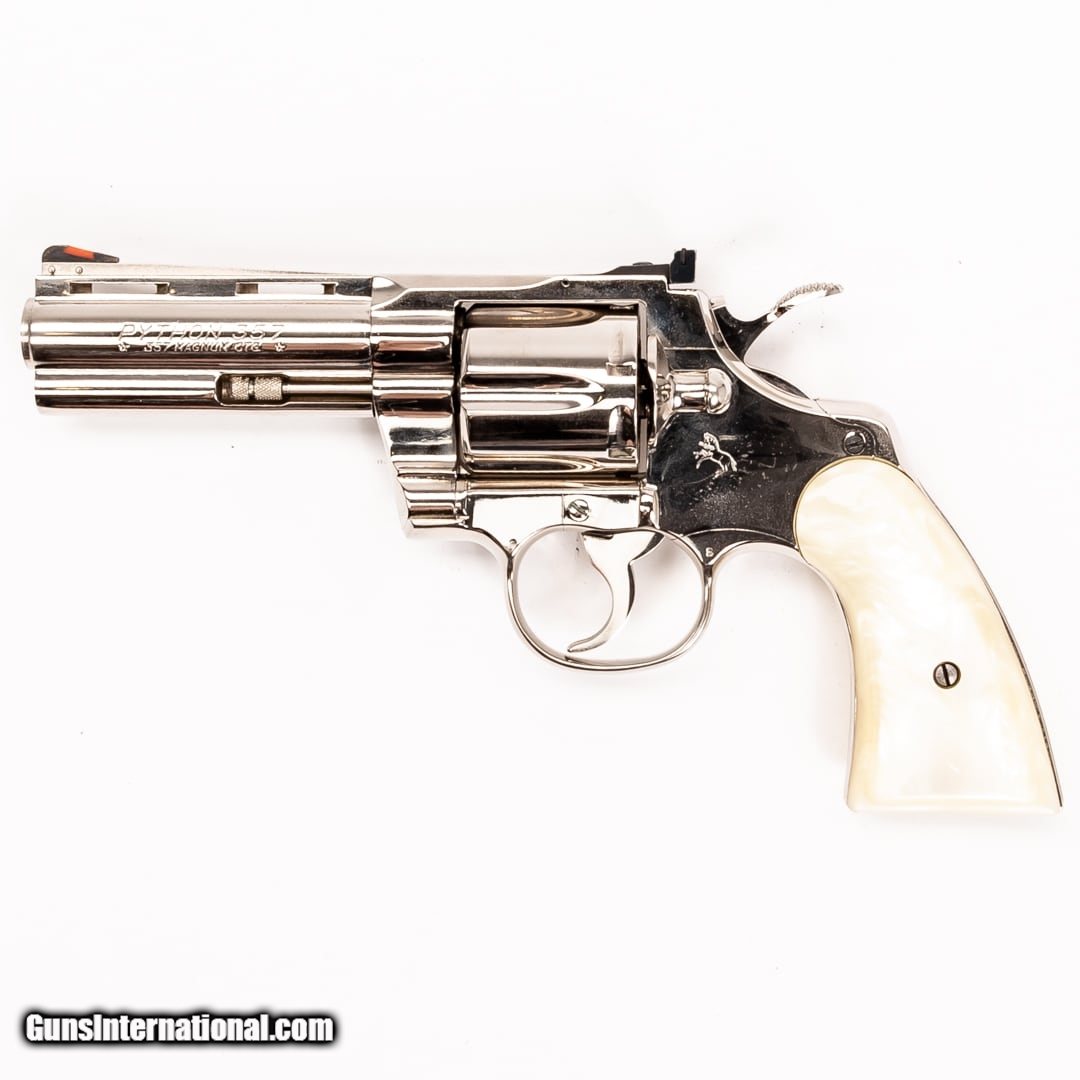 Description: Guns Listing ID: 343364 A classically designed revolver with a unique look and ultimate reliability, this Colt Python offers six rounds of 357 Mag. The Python is described by some as the finest production revolver ever made. Although popular, the Python was discontinued in 1999 after more than four decades of production. It is the weapon of choice for The Walking Dead‚‚s cop turned zombie killer, Rick Grimes, and has made an appearance in countless movies and television shows over the last five decades. This Python is in very good condition, with a chip on the bottom right of the grip. A canvas case is included with this purchase. Serial number: K7120 SOLD Manufacturer: COLT Model: Python .357 Caliber Info: .357 MAG Condition: Used - Non-Certified Barrels: 4 BARREL Finish: NICKEL |