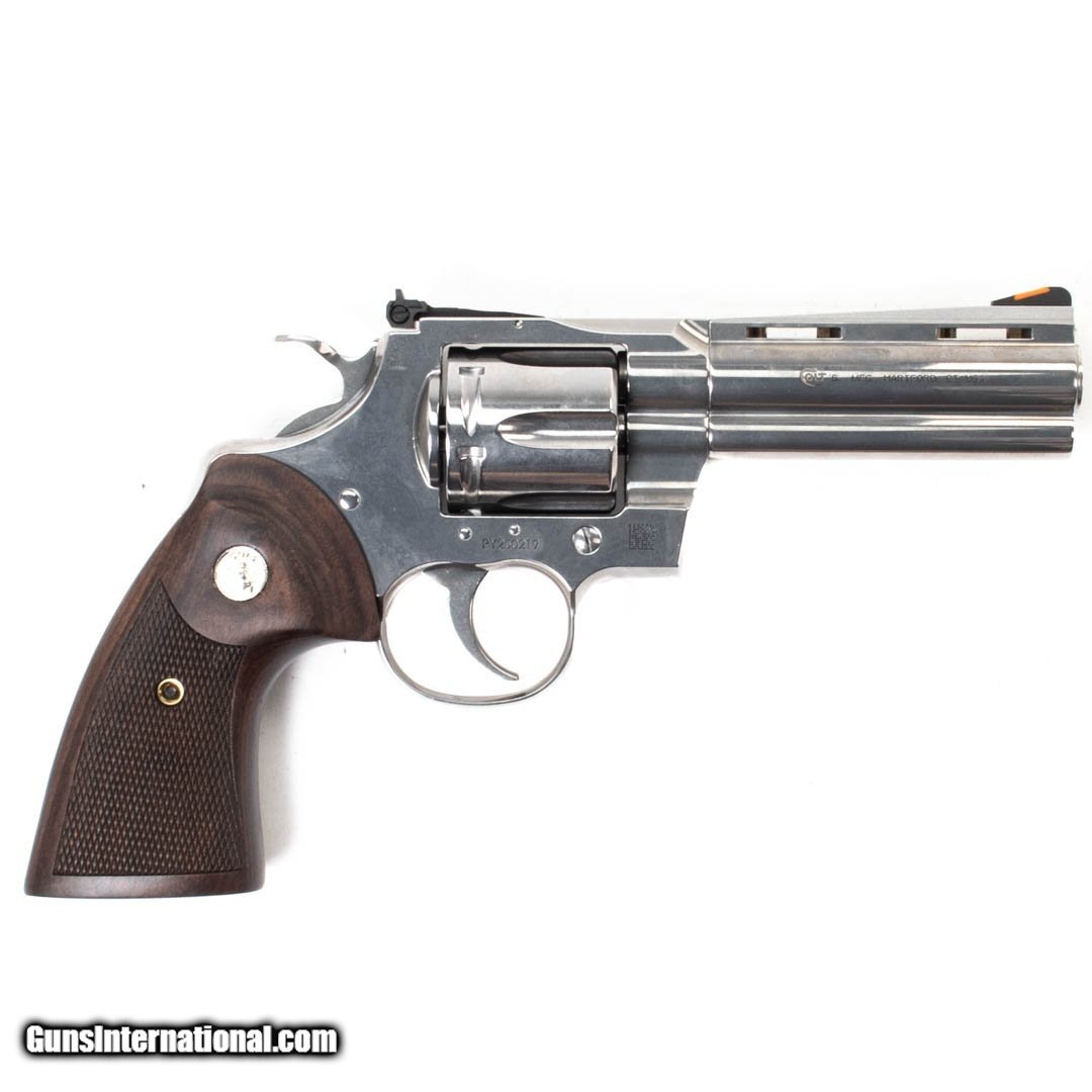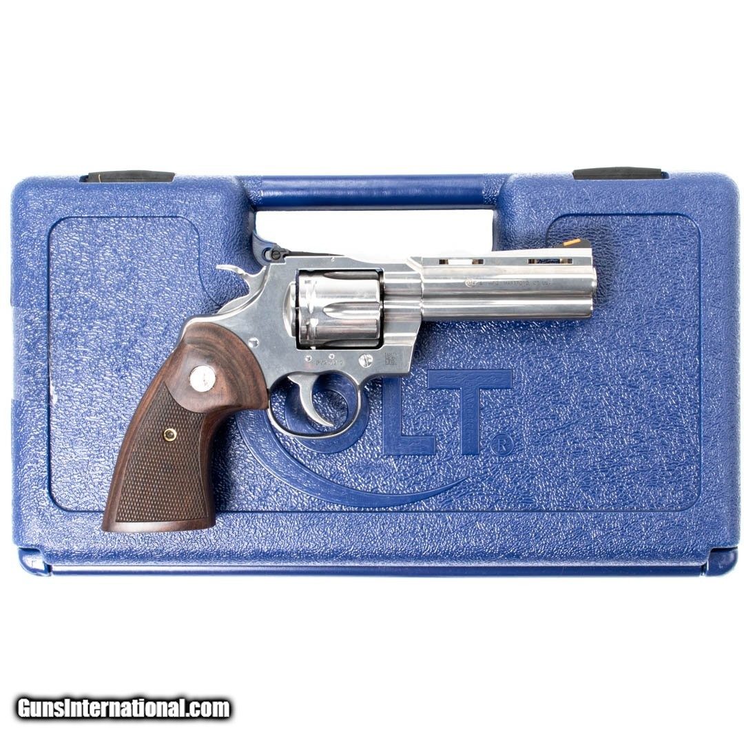 Description: Guns Listing ID: 586145 This Colt comes with the original case, owner‚s manual, wooden grips, and a vent rib. Get the best bang for your buck when you get a Certified Used Firearm . When you see the Certified Used stamp on any of our firearms, you can be confident that you‚re getting exactly what you want – a gun only in very good to excellent condition and held to the highest quality standard. All Certified Used Guns come with a ‚no questions asked‚ return policy . Manufacturer: COLT Model: PYTHON 357 Caliber Info: .357 MAG Condition: Used - Certified Barrels: 4.25" BARREL Action: REVOLVER Finish: polished stainless Weight: 2.6 Price: $1,299.99 Contact Seller |