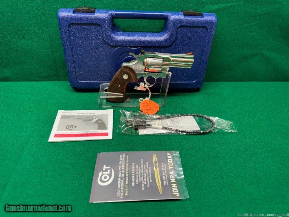 Description: Guns Listing ID: 505835 This listing is for a Colt Python 357 Mag Stainless Steel Finish Walnut Grips 3\" BBL 6 Round. This Colt Python is chambered in 357 Mag, and it will hold 6 rounds in the cylinder. This revolver comes with a 3 inch barrel. It comes equipped with a fixed front sight, and an adjustable rear sight. This revolver appears to be in great condition! The action appears to be in good condition, the finish appears to be in good condition, and the bore appears to be in good condition. This revolver comes with an owner’s manual, a cable lock, and the hard case. This would be a great addition to your collection. ** DISCLAIMER** THIS FIREARM HAS NOT BEEN TEST FIRED*** SOLD Manufacturer: COLT Model: PYTHON 357 Caliber Info: .38 SPECIAL/.357 MAGNUM Condition: Used - Non-Certified Barrels: 3 BARREL Action: DOUBLE ACTION Finish: STAINLESS STEEL Weight: 2.5 lbs. |