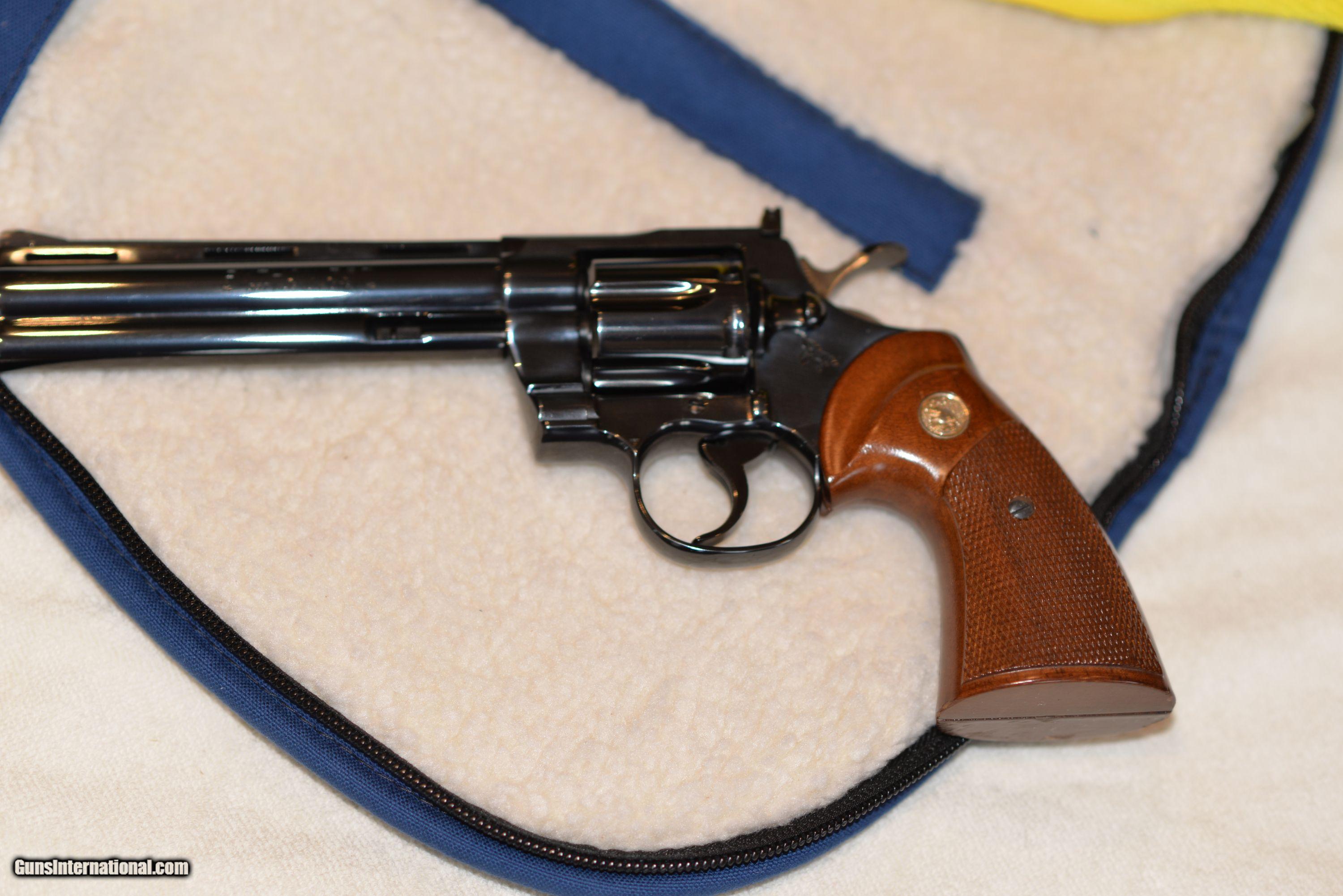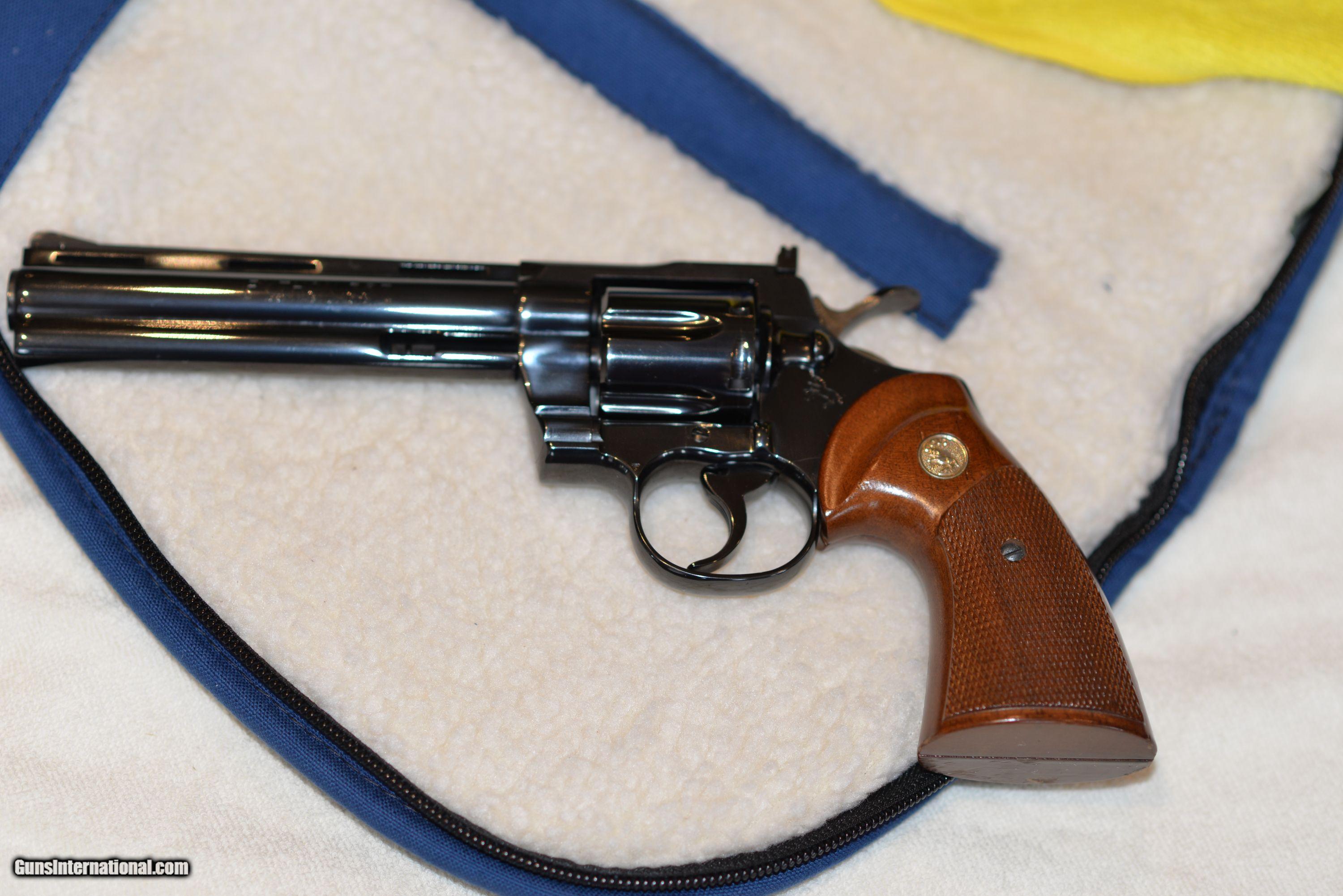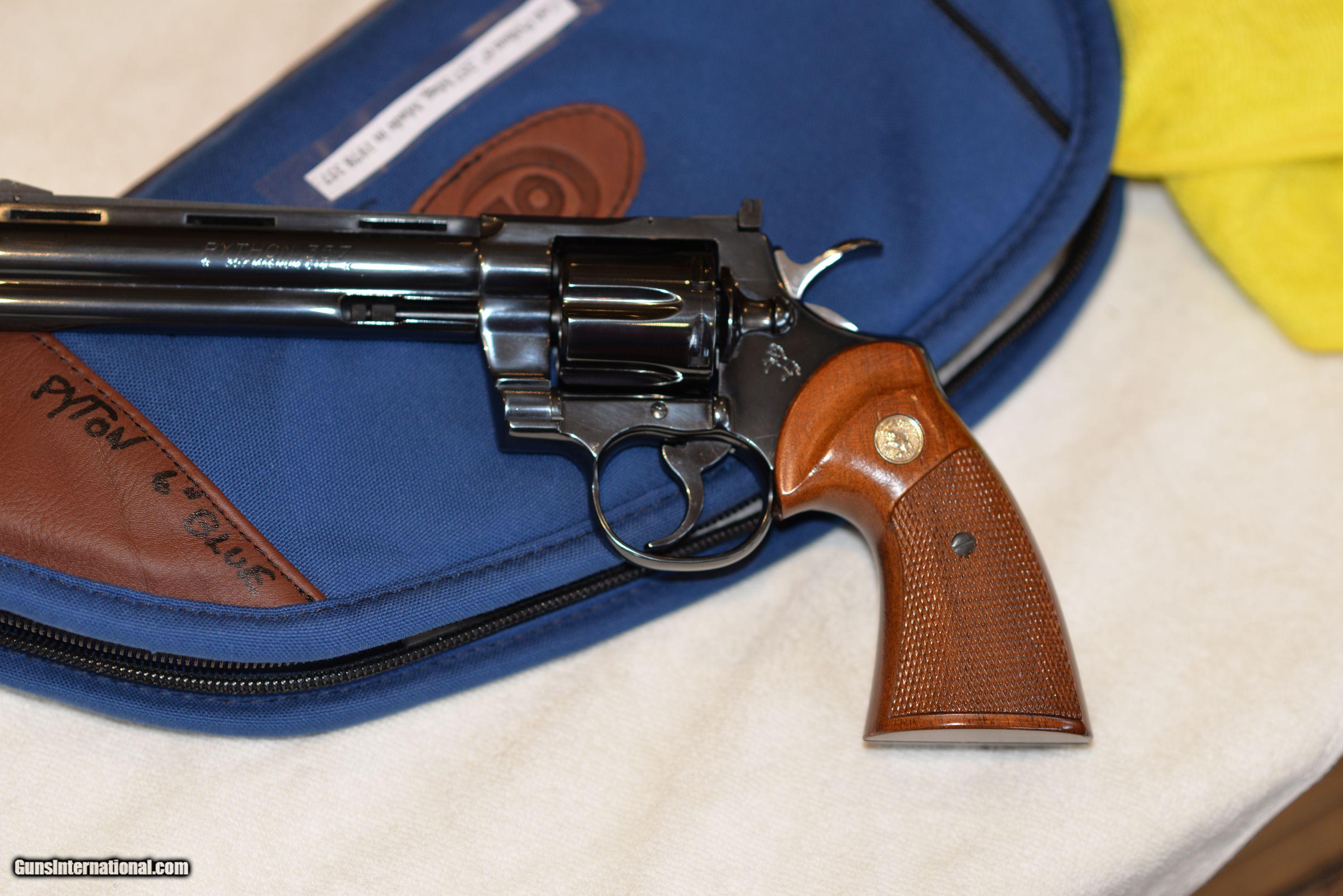 Description: Colt Python .357 Magnum Revolver with 6" barrel. Pythons are well known for having rock solid cylinder lockup and the nicest action of any revolver. No longer made, they are very collectible. This one was made in 1978 (serial # 98189E) and is in excellent condition. There are some scratches on the bottom of the grips. Overall a nice Python with perfect timing and tight lockup. I do not have the original box, but it will come with this Colt bag shown in picture. Money Orders, Wire Transfer, Bank Checks...will ship through local gun shop $75 shipping/insurance when money has cleared. Please don't hesitate to contact me with any further questions. Thank you! SOLD Manufacturer: Colt Model: Python Serial Number: 98189E Caliber Info: 357 Finish: Blue |