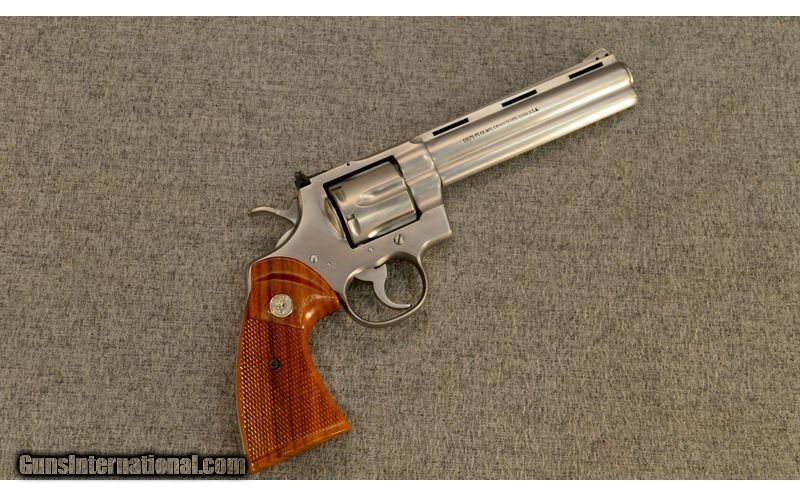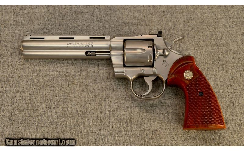 Description: This is a pre-owned Colt Python stainless steel in .357 Magnum manufactured in 1984 .357 Magnum SOLD Metal Condition: Very good with a few small scratches and light cylinder drag marks Wood Condition: Very good with a few small scratches Bore Condition: Clean with bright lands Barrels: 6 Triggers: DA/SA Butt Pad: Checkered walnut Weight: 2 Lbs. 12 Oz. Sights: "Ramp front, adjustable rear Item Location: Glendale, AZ |