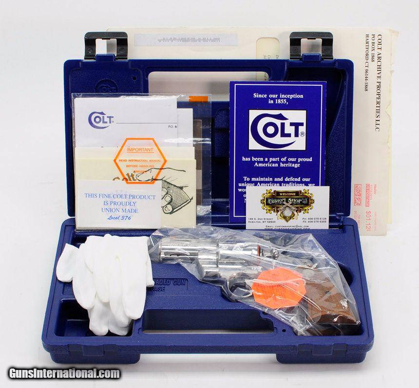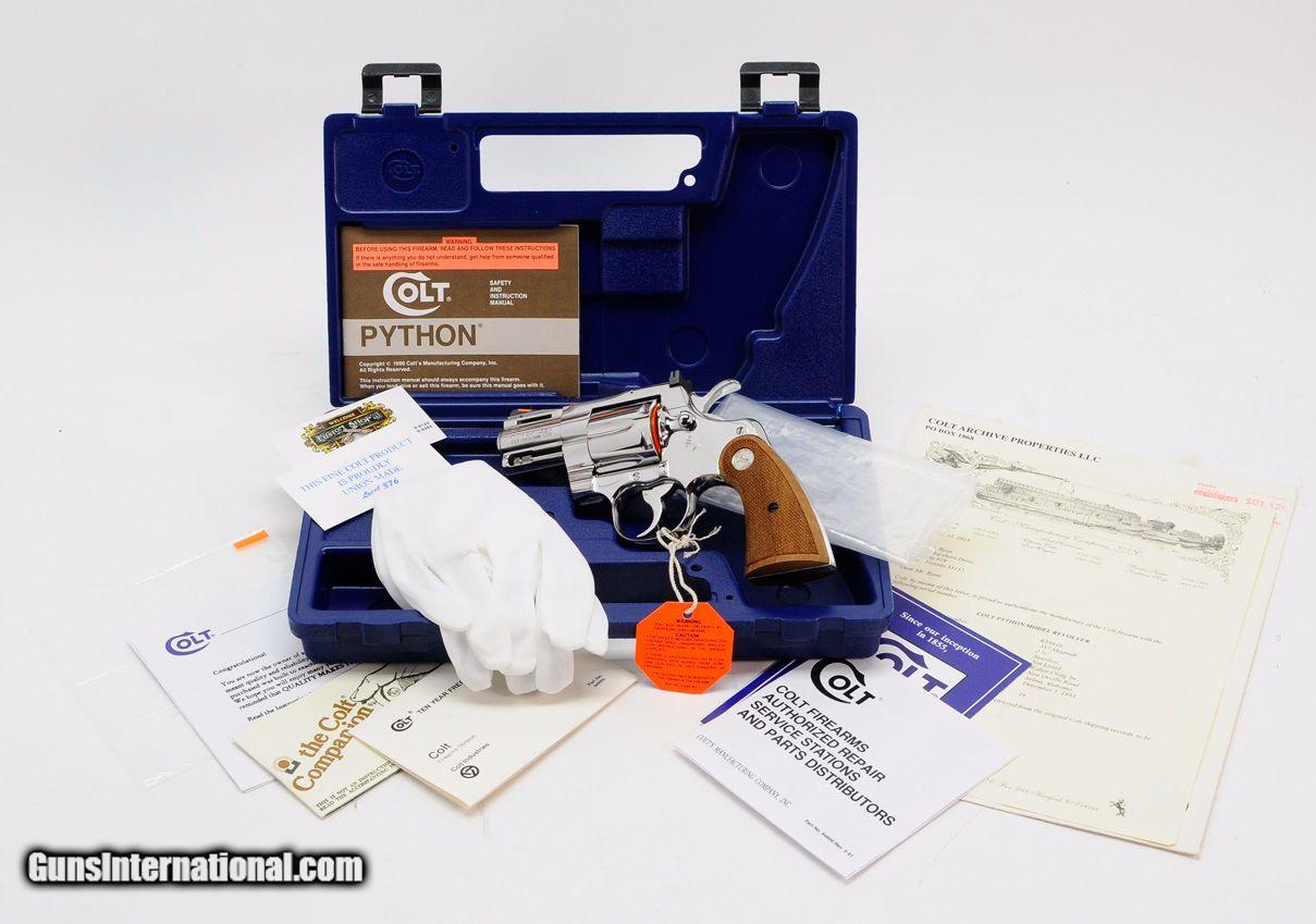 Description: Colt Python 357 Mag. 2.5 Inch Bright Stainless Steel. Like New In Hard Case/Factory Letter **PRICED TO SELL!!** Availabe For Purchase At Our On-line Store Like New Condition In Blue Hard Case. Features Ventilated Rib, Fast-Cocking Wide Spur Hammer & Full Shrouded Ejector Rod. The Colt Python is a .357 Magnum caliber revolver formerly manufactured by Colt's Manufacturing Company of Hartford, Connecticut. It is sometimes referred to as a "Combat Magnum". It was first introduced in 1955, the same year as Smith & Wesson's M29 .44 Magnum. The now discontinued Colt Python targeted the premium revolver market segment. Some firearm collectors and writers such as Jeff Cooper, Ian V. Hogg, Chuck Hawks, Leroy Thompson, Scott Wolber, Renee Smeets and Martin Dougherty have described the Python as the finest production revolver ever made DOM 1991 SPECIFICATIONS