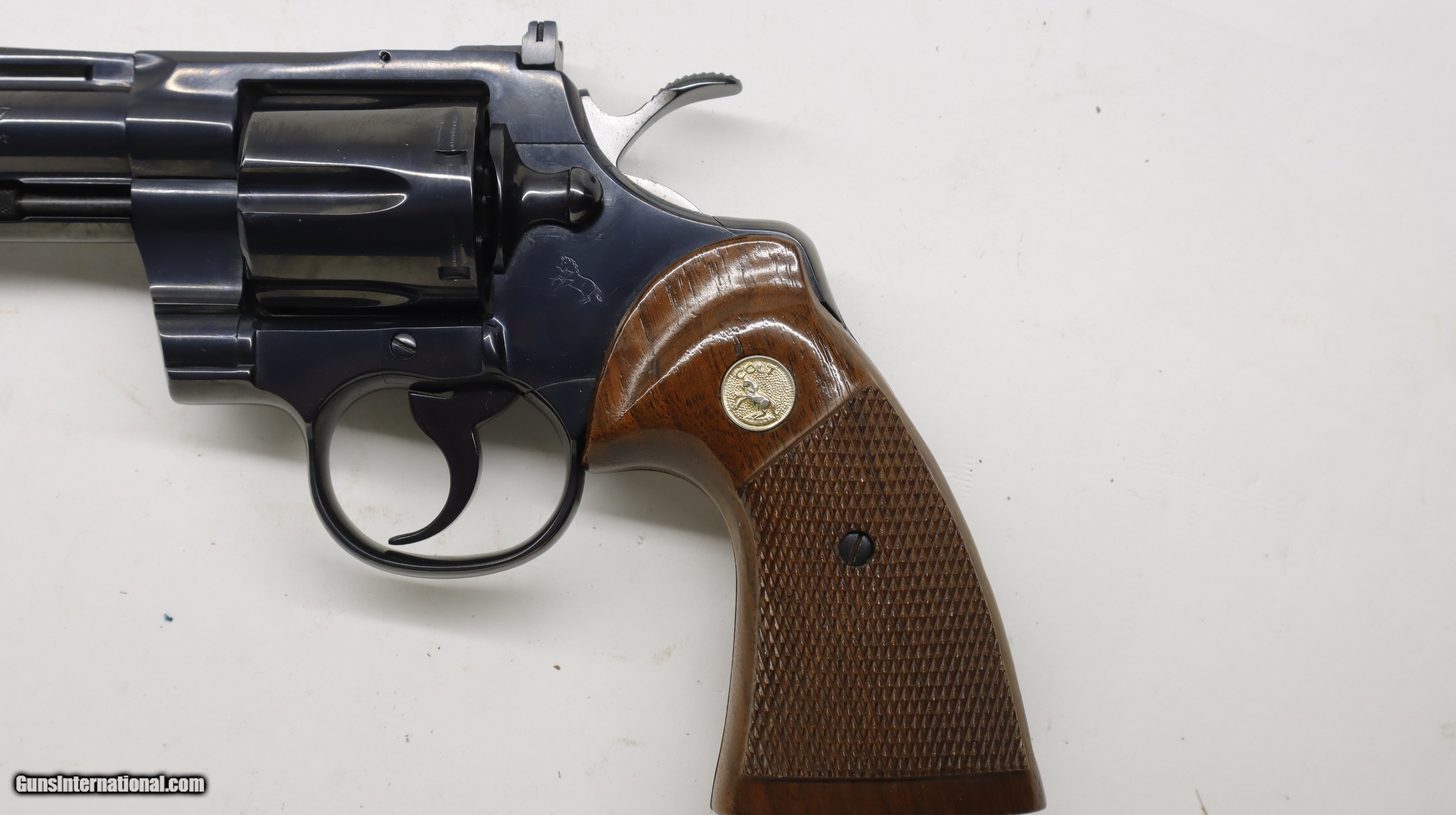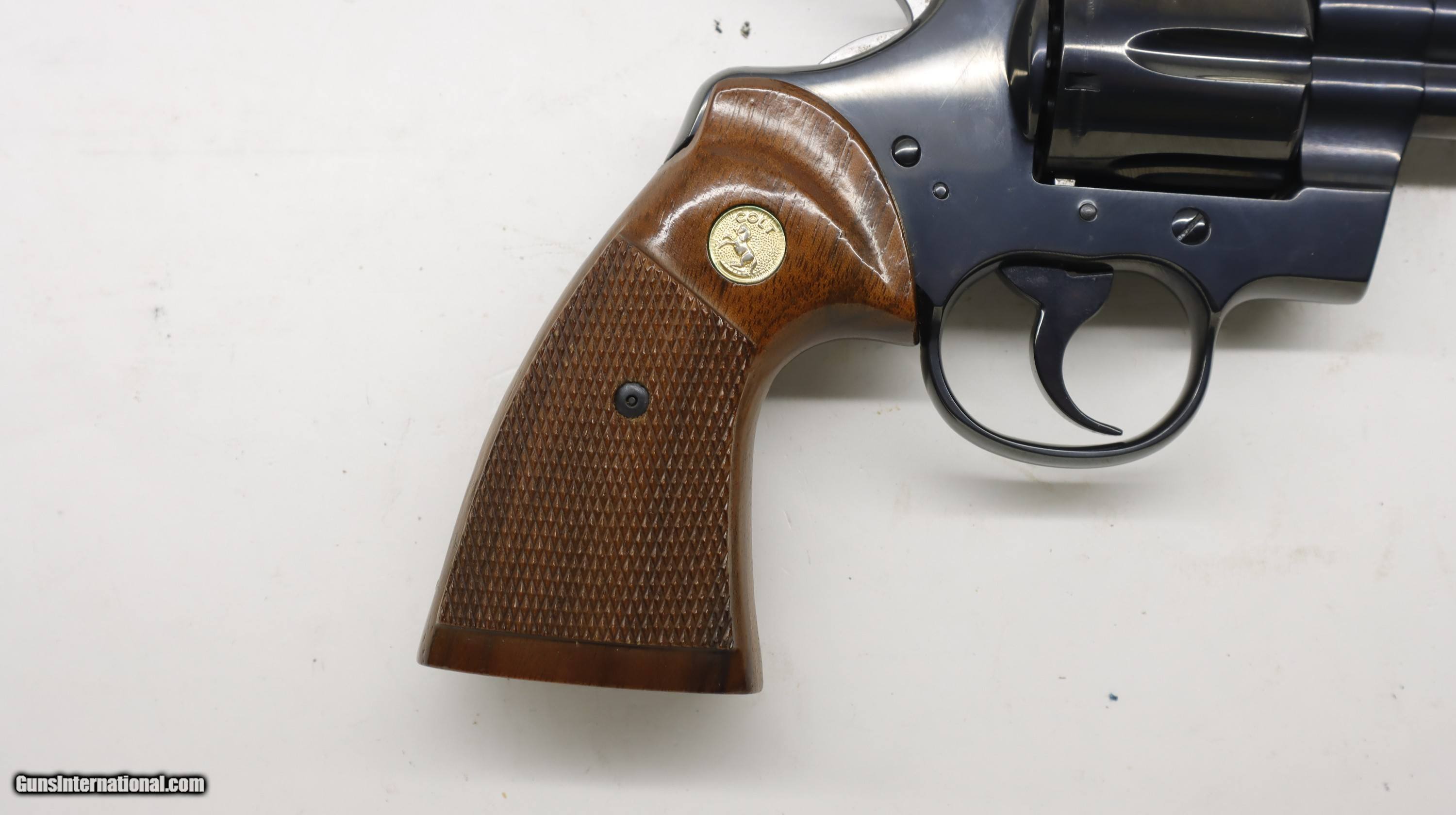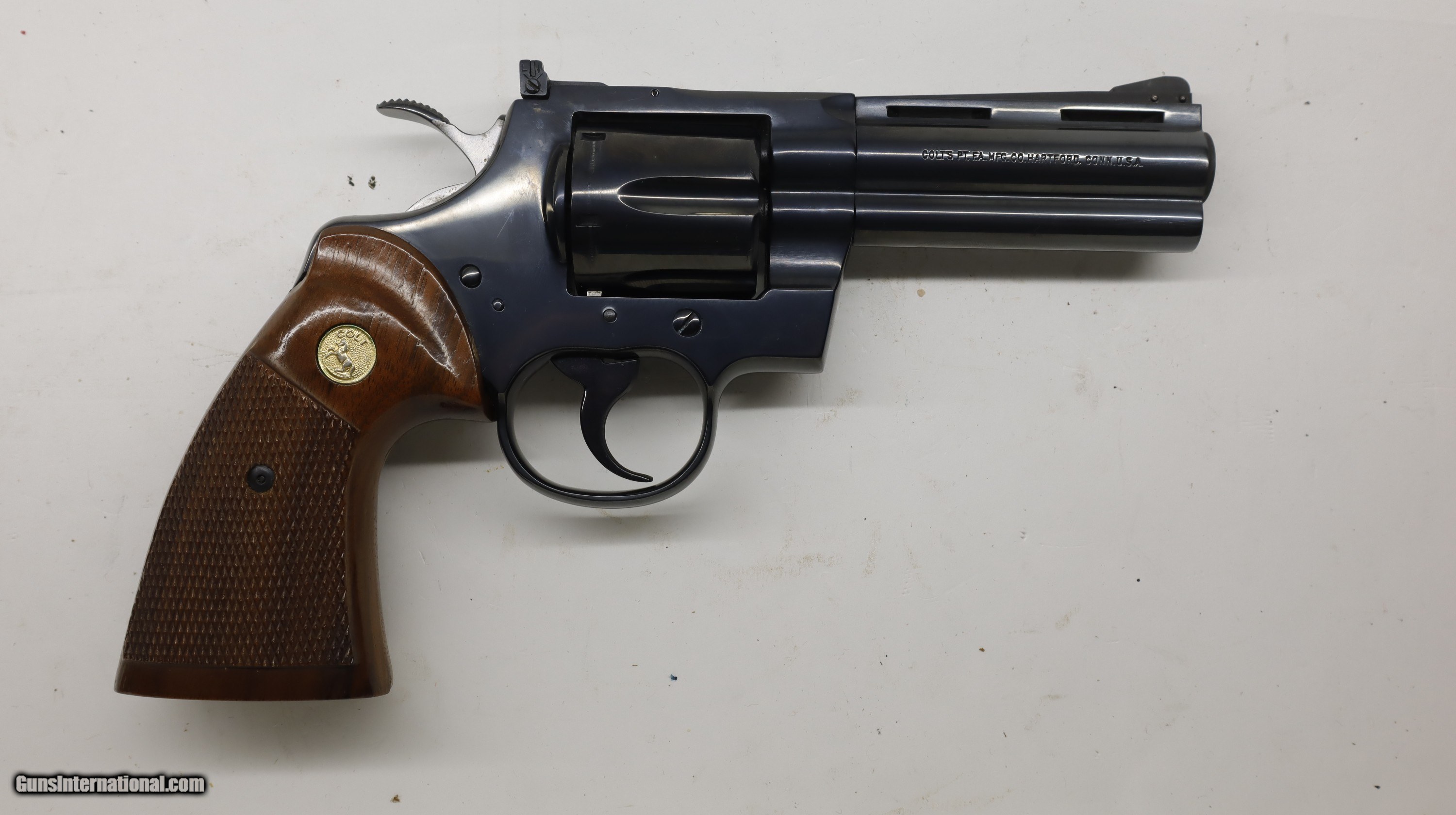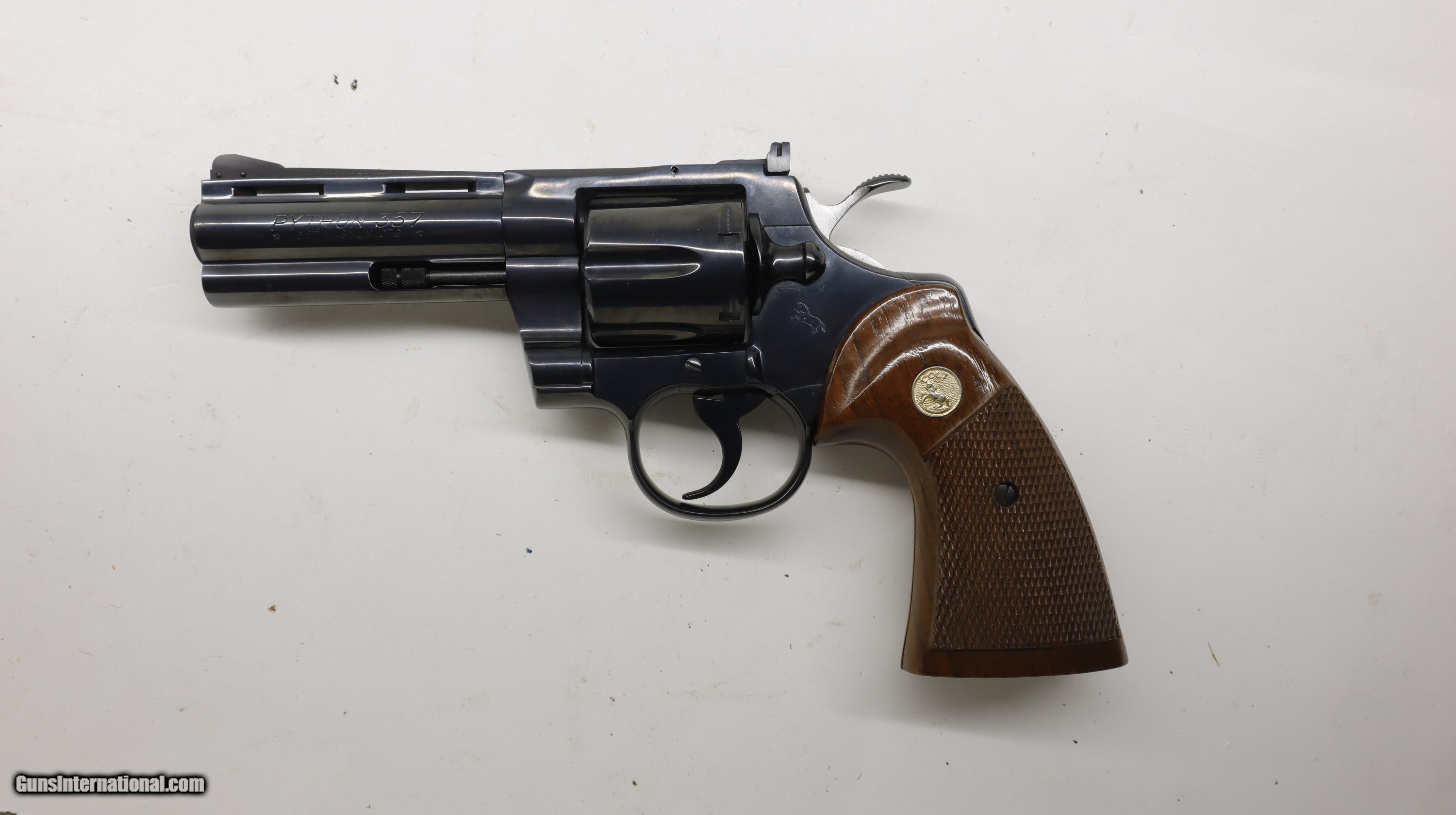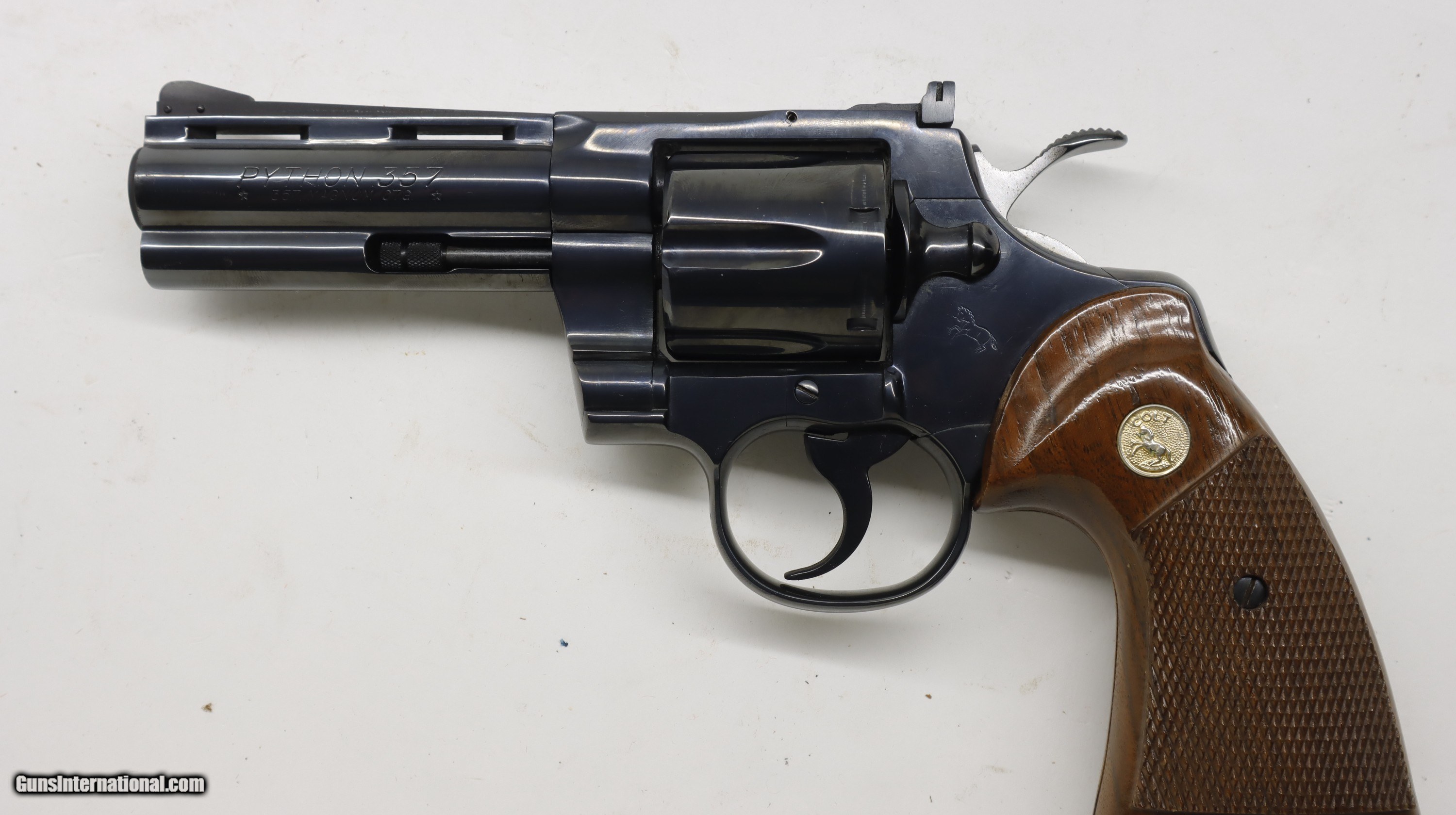 Description: Colt Python 357 Mag, 4" Vent rib barrel, blue finish. Facotry Wood grips. SN is 388xxE, made in 1976. Factory finish on both metal and grips. Perfect bore. We will trade for silver and gold. All my guns (except layaway) come with a non-firing, 3 day unconditional return privilege, from the day UPS delivers to your dealer. Buyer pays shipping both ways if the gun comes back. Please make sure to make it to your FFL to inspect within the 3 days. We accept personal check, any certified funds, Vennmo or Zellle. We can also take your credit card, +3%. Email me if you would like these pictures sent to you, they will come through bigger and better than on the listing page here. We do offer Layaway. Our standard terms are 25% down, 90 days. Initial deposit is not refundable. Layaway guns do not have a return/inspection period. Email me with any questions. Please check your local laws to confirm it is legal to own in your state! Buyer pays $30 shipping and insurance to your FFL in the lower 48. AK, HI or PR is extra. I will ship to California, as long as it is legal, NO PROBLEM! I am a licensed FFL, and will include a copy of my FFL with the gun for your dealer’s records. I will ship to a C&R if the gun is eligible. I will ship to California, but you need to confirm the gun is legal where you are, California or other. WE BUY AND CONSIGN GUNS AND GUN COLLECTIONS! Will travel! I am always looking for good clean, old original Winchesters to buy, consign, or trade, especially Pre '64's model 70's and model 54's. WE ALSO TRADE FOR CLASSIC CARS AND TRUCKS! We also trade for gold and silver. SOLD Handgun Caliber: .357 Magnum Manufacturer: Colt Model: Python Barrel Length: 4 Condition: Used |