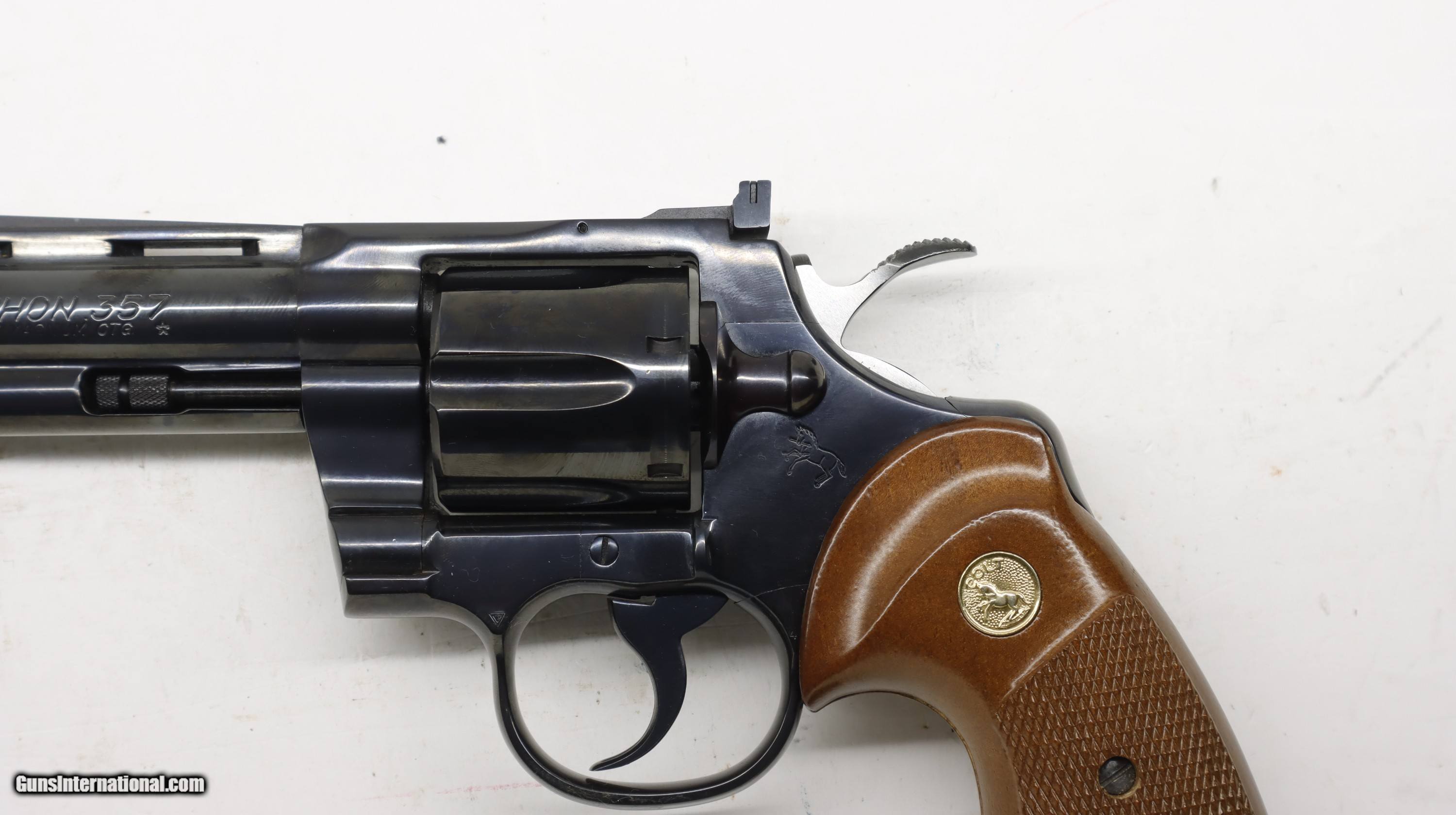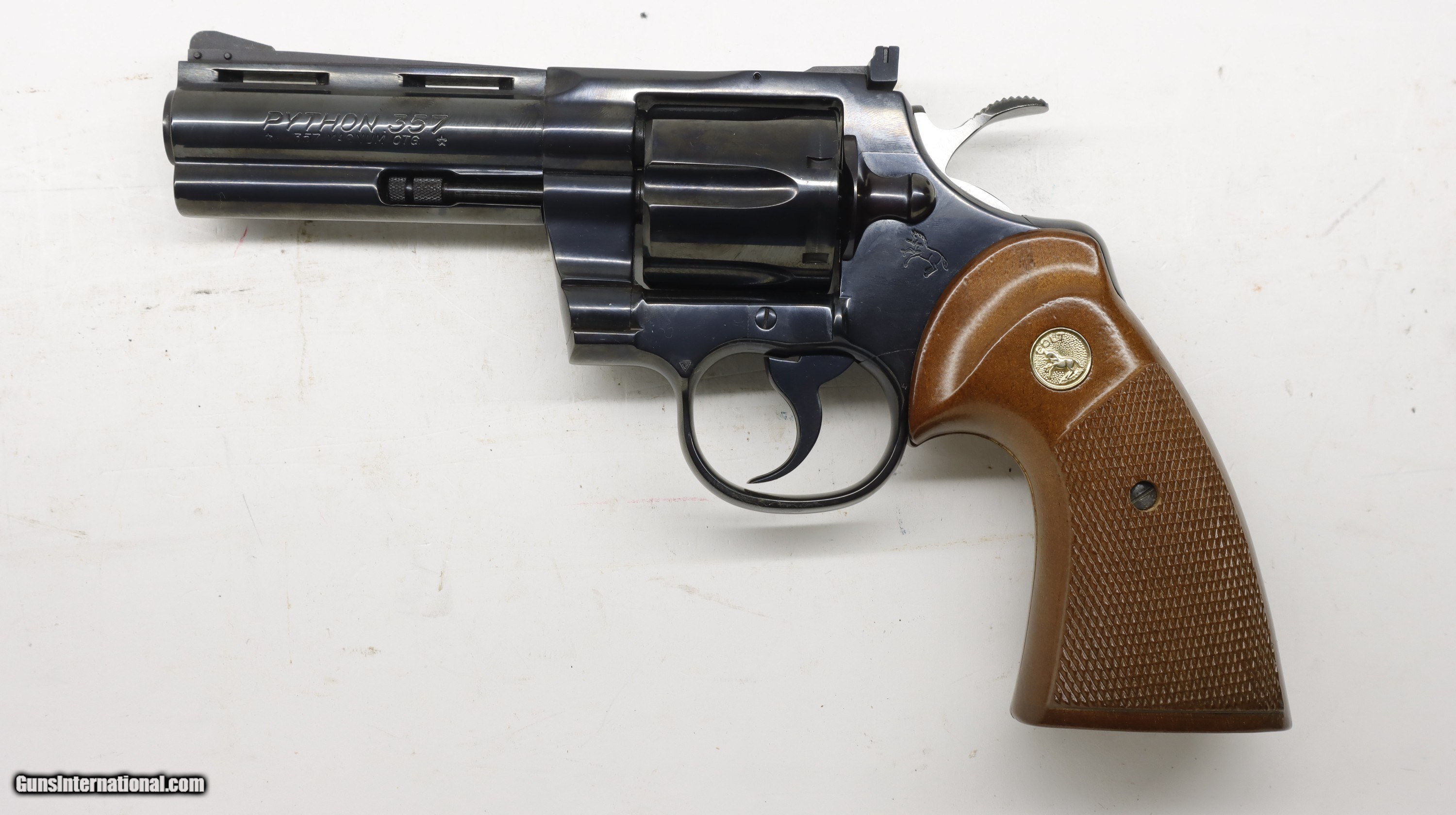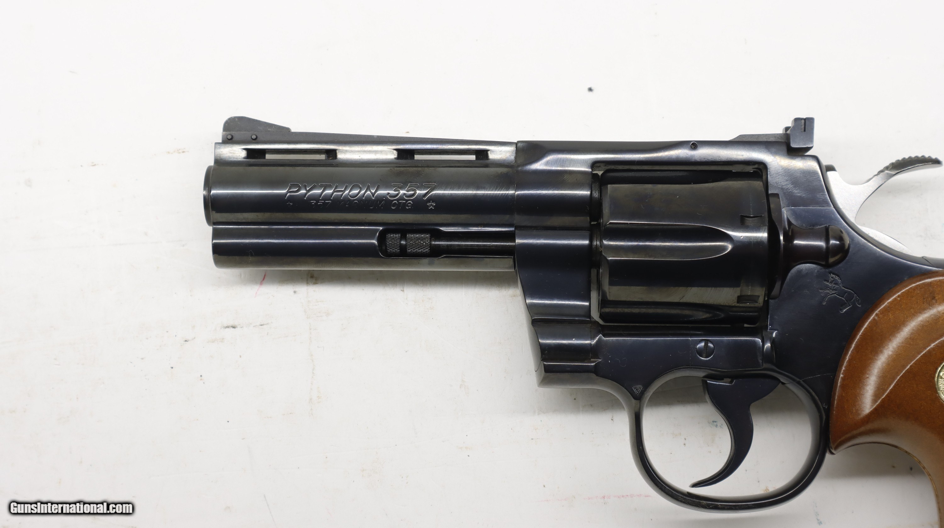 Description: Colt Python 357 Mag, 4" Vent rib barrel, blue finish. Facotry Wood grips. SN is 631xxE, made in 1977. Factory finish, gun can almost pass as new. Hardly been shot. Perfect bore. We will trade for silver and gold. All my guns (except layaway) come with a non-firing, 3 day unconditional return privilege, from the day UPS delivers to your dealer. Buyer pays shipping both ways if the gun comes back. Please make sure to make it to your FFL to inspect within the 3 days. We accept personal check, any certified funds, Vennmo or Zellle. We can also take your credit card, +3%. Email me if you would like these pictures sent to you, they will come through bigger and better than on the listing page here. We do offer Layaway. Our standard terms are 25% down, 90 days. Initial deposit is not refundable. Layaway guns do not have a return/inspection period. Email me with any questions. Please check your local laws to confirm it is legal to own in your state! Buyer pays $30 shipping and insurance to your FFL in the lower 48. AK, HI or PR is extra. I will ship to California, as long as it is legal, NO PROBLEM! I am a licensed FFL, and will include a copy of my FFL with the gun for your dealer’s records. I will ship to a C&R if the gun is eligible. I will ship to California, but you need to confirm the gun is legal where you are, California or other. WE BUY AND CONSIGN GUNS AND GUN COLLECTIONS! Will travel! I am always looking for good clean, old original Winchesters to buy, consign, or trade, especially Pre '64's model 70's and model 54's. WE ALSO TRADE FOR CLASSIC CARS AND TRUCKS! We also trade for gold and silver. SOLD Handgun Caliber: .357 Magnum Manufacturer: Colt Model: Python Barrel Length: 4 Condition: Used |