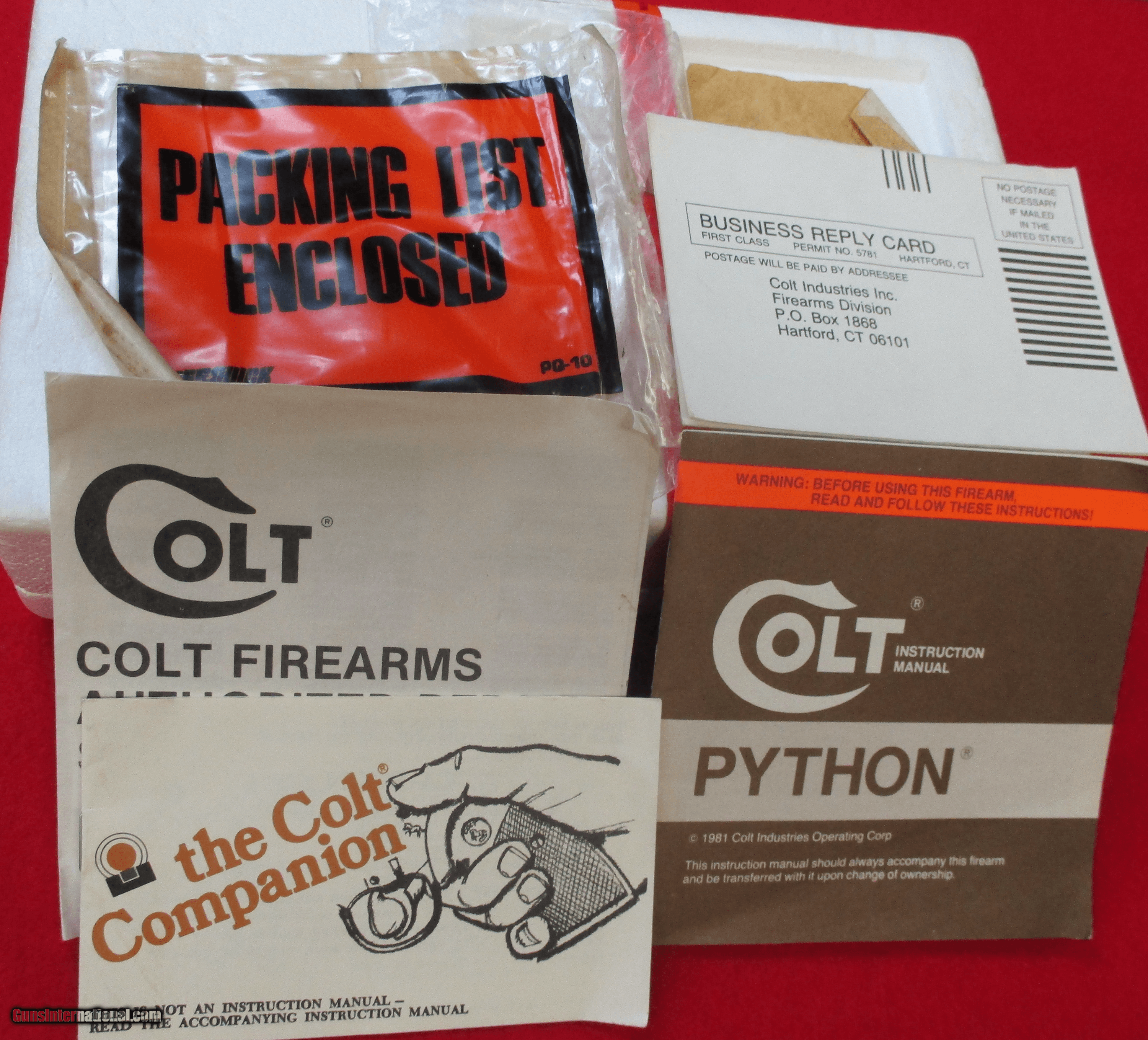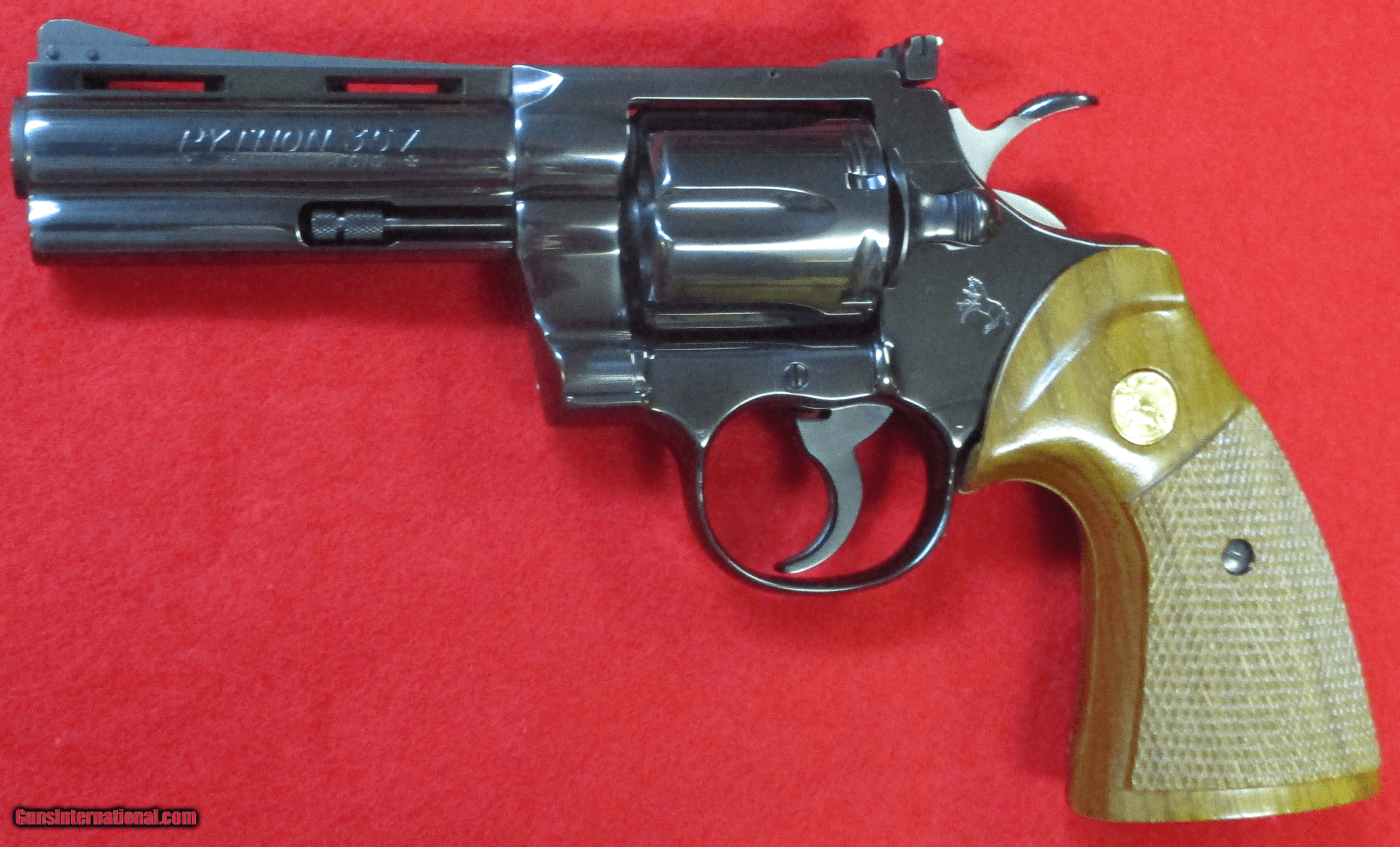 Description: SALE PENDING on this Colt Python in .357 Mag with a 4" barrel and blue finish manufactured in 1984. The gun is fitted with the original wood checkered target grips and Colt Medallions. The finish is a superb high lustre blue in about perfect condition rated at 99% with a faint turn line on the cylinder. The wood grips are about in the same condition with two small marks on each panel rated at 97%.The bore is clean and shiny.The serial number is T28969. This revolver was not fired very much and is in collecter condition. The original wood grain cardboard box is included with the correct end label. Unfortunately the end label is not attached to the box and the box is crushed at each end. The original cardboard shipping box is also included but has been written on.I will ship this revolver to a FFL within the Continental US including AK and HI. The buyer will pay the exact cost of shipping.I will offer a 3-Day No Fire inspection from the time the package is delivered to your Dealers address.I am a storefront FFL in business over 17 years with over 1400 A+ internet sale ratings.Email your questions or feel free to call me at the telephone numbers listed. Thank you, Glenn SOLD Handgun Caliber: .357 Magnum Manufacturer: Colt Model: Python Serial Number: T28969 Barrel Length: 4 Condition: MINTY Bore Condition: Excellent Barrel Type: Vent Rib Action: Double Sights: Adj. Rear Case: Factory Box etc |
