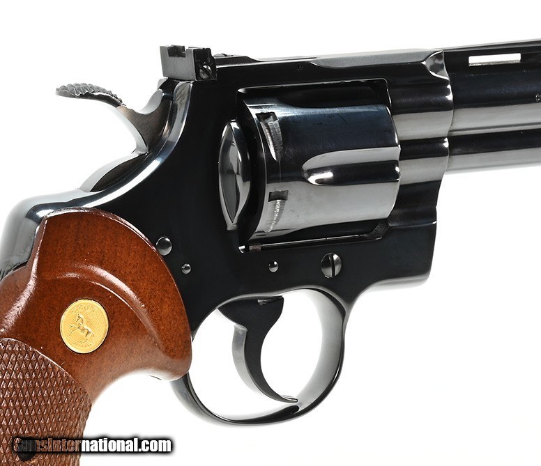 Description: Colt Python 357 Mag. 6 Inch Blue. Excellent Condition. In Box. DOM 1976 AVAILABLE FOR PURCHASE AT OUR ON-LINE STORE The Colt Python is a .357 Magnum caliber revolver formerly manufactured by Colt's Manufacturing Company of Hartford, Connecticut. It is sometimes referred to as a "Combat Magnum". It was first introduced in 1955, the same year as Smith & Wesson's M29 .44 Magnum. The vintage Colt Python targeted the premium revolver market segment. Some firearm collectors and writers such as Jeff Cooper, Ian V. Hogg, Chuck Hawks, Leroy Thompson, Scott Wolber, Renee Smeets and Martin Dougherty have described the Python as the finest production revolver ever made. Features Ventilated Rib, Fast-Cocking Wide Spur Hammer & Full Shrouded Ejector Rod.