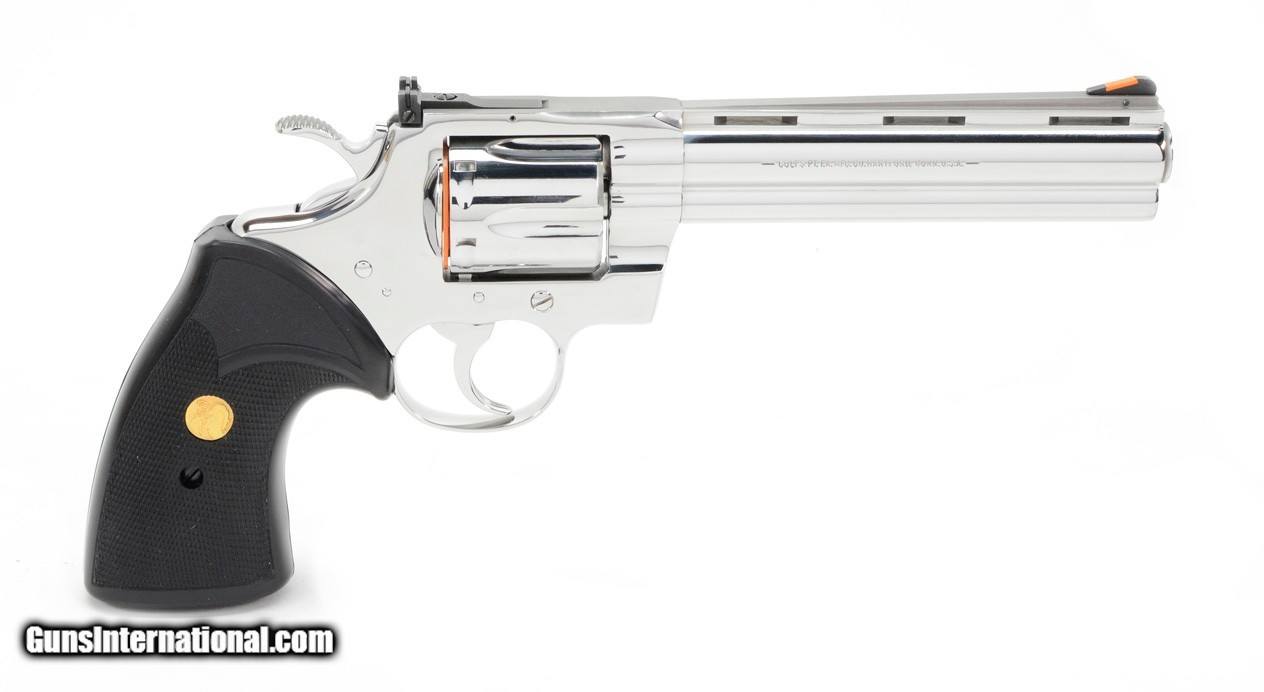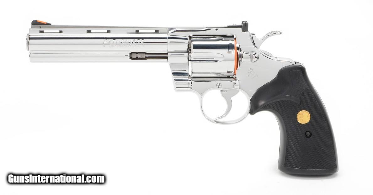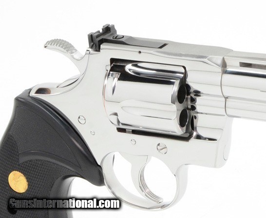 Description: Colt Python 357 Mag. 6 Inch Bright Stainless Finish. Like New In Blue Hard Case. DOM 1993 AVAILABLE FOR PURCHASE AT OUR ON-LINE STORE With Custom Shop, Inc’s knowledge and professional experience as Colt’s Authorized Restoration & Repair Center, our gunsmiths have carefully reconditioned this firearm to the appearance it had the day it left the factory. The firearms we acquire for reconditioning are in Excellent condition all on their own; we just take them back to their original shine, maximizing their potential value. Features Ventilated Rib, Fast-Cocking Wide Spur Hammer & Full Shrouded Ejector Rod. The Colt Python is a .357 Magnum caliber revolver formerly manufactured by Colt's Manufacturing Company of Hartford, Connecticut. It is sometimes referred to as a "Combat Magnum". It was first introduced in 1955, the same year as Smith & Wesson's M29 .44 Magnum. The now discontinued Colt Python targeted the premium revolver market segment. Some firearm collectors and writers such as Jeff Cooper, Ian V. Hogg, Chuck Hawks, Leroy Thompson, Scott Wolber, Renee Smeets and Martin Dougherty have described the Python as the finest production revolver ever made DOM 1993 SPECIFICATIONS