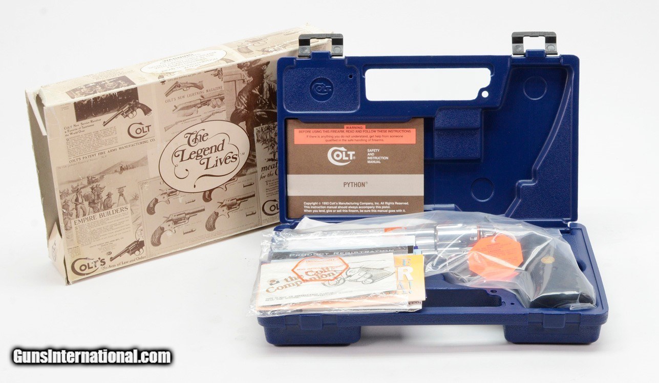 Colt Python 357 Mag. 6 Inch Bright Stainless Finish. Like New In Blue Hard Case. DOM 1993