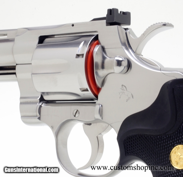 Description: Colt Python .357 Mag 6" Satin Stainless Steel Finish 'NRA Perfect (As New) Condition. In Blue Hard Case'. Features Ventilated Rib, Fast-Cocking Wide Spur Hammer & Full Shrouded Ejector Rod. CS_00374 SPECIFICATIONS