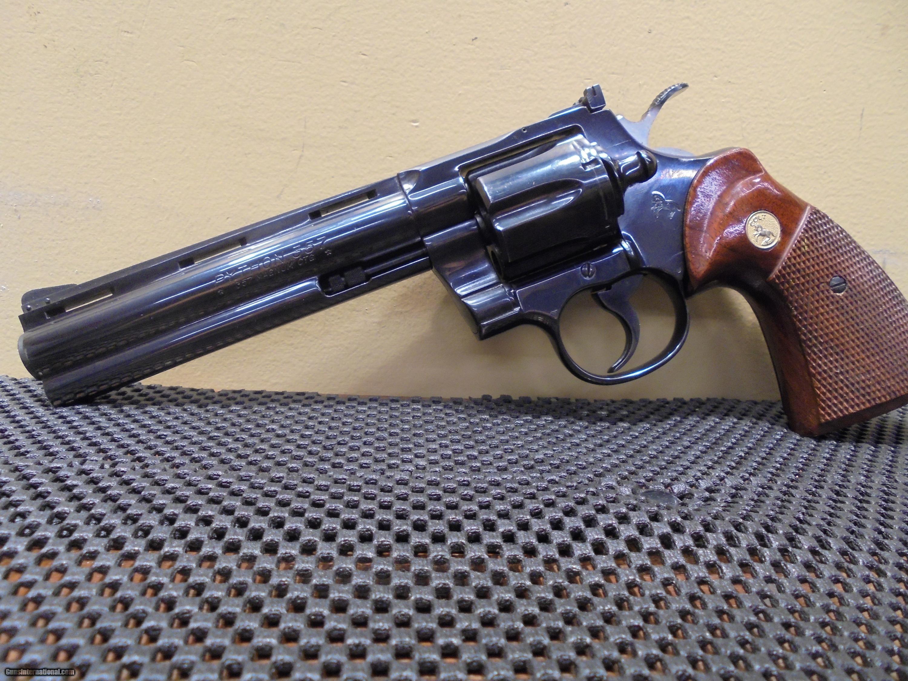 Description: USED VERY GOOD CONDITION COLT PYTHON .357 MAG 6' BLUED WOOD GRIPS HAS HARD CASE AND PAPERWORK WITH IT ALSO A SET OF HOGUE GRIPS RIGHT SIDE OF BARREL HAS SOME MARKS AT END OF BARREL AND THE UNDER LUG HAS MARK ON END HAS A LATE 1979 OR EARLY 1980 SERIAL # We also carry Bushnell, Nikon, Vortex, Leupold, Swarovski and Night Force Scopes. ****PLEASE CALL IN THE WITH THE SELLER’S INVENTORY NUMBER IF INQUIRING ABOUT A FIREARM****** WE DO NOT SHIP FIREARMS AND/OR FIREARMS’ PARTS OUT OF THE 50 UNITED STATES, SO DON’T ASK PRICE REFLECTS PAYMENT BY MONEY ORDER / CASHIERS CHECK. A 3% PREMIUM IS ADDED FOR CREDIT CARDS. WE DO ACCEPT PERSONAL OR BUSINESS CHECKS, BUT THERE IS A 10 DAY GRACE PERIOD ON THEM. Shipping is $40 for handgun and $30 for long gun. Shipping to Alaska and Hawaii will be more based on weight of firearm. WE DO OFFER A LAYAWAY PLAN. YOU CAN LAYAWAY FOR 30, 60, OR 90 DAYS. THERE IS A $5.00 CHARGE FOR EVERY 30 DAYS ITEM IS ON LAYAWAY. WE ALSO REQUIRE A 20% DOWN PAYMENT ON LAYAWAY ITEM. LAYAWAYS ARE NON REFUNDABLE. HERE IS HOW THIS PROCESS WORKS. YOU WOULD CALL US AT 540-337-9218 WITH LISTER # TO PURCHASE THE GUN. THEN ONCE I HAVE RECEIVED PAYMENT AND AN FFL (FEDERAL FIREARMS LICENSE) FROM A LICENSED DEALER IN YOUR AREA OF YOUR CHOICE. WE WILL THEN SHIP THE GUN TO THEM. YOU WOULD THEN PICK UP THE GUN AT YOUR LOCAL DEALER AND DO PAPER WORK THERE. Please have your FFL Dealers contact information when you call. DOMINION OUTDOORS 15 ANGELA COURT FISHERSVILLE ,VA 22939 540-337-9218 540-337-2422 fax M – F 9 to 6 ETZ Sat 9 – 4 ETZ ****PLEASE CALL IN THE WITH THE SELLER’S INVENTORY NUMBER**** ***PLANO HARD CASES AVAIABLE FOR PURCHASE $19.99 WITH THE PURCHASE OF A FIREARM.** SOLD |
