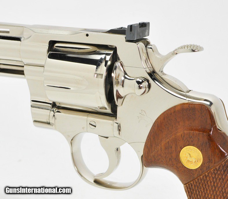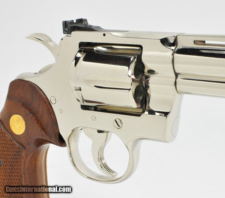 Description: Colt Python 357 Mag. 8 Inch Nickel. Excellent Condition In Blue Hard AVAILABLE FOR PURCHASE AT OUR ONLINE STORE The Colt Python is a .357 Magnum caliber revolver formerly manufactured by Colt's Manufacturing Company of Hartford, Connecticut. It is sometimes referred to as a "Combat Magnum". It was first introduced in 1955, the same year as Smith & Wesson's M29 .44 Magnum. The now discontinued Colt Python targeted the premium revolver market segment. Some firearm collectors and writers such as Jeff Cooper, Ian V. Hogg, Chuck Hawks, Leroy Thompson, Scott Wolber, Renee Smeets and Martin Dougherty have described the Python as the finest production revolver ever made.