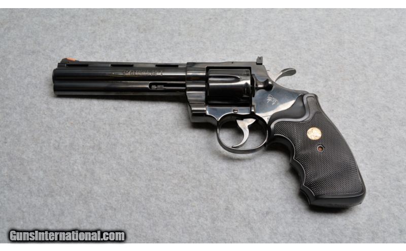 Description: This is a very good example of a late production Colt Python! This revolver is excellent throughout! SOLD Manufacturer: 1992 Caliber Info: .357 MAG Metal Condition: Excellent Bore Condition: Excellent Barrels: 5 Inch Triggers: Factory Stock: Colt Rubber Grip Weight: 43 Oz Sights: Factory Target Sights Item Location: Hazelwood, MO |