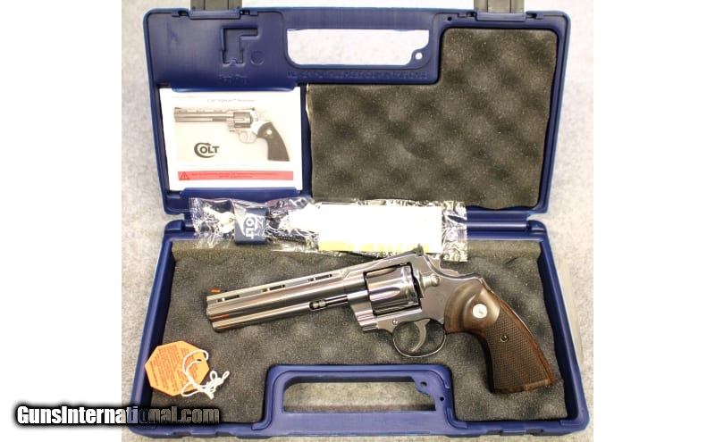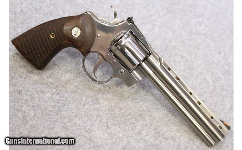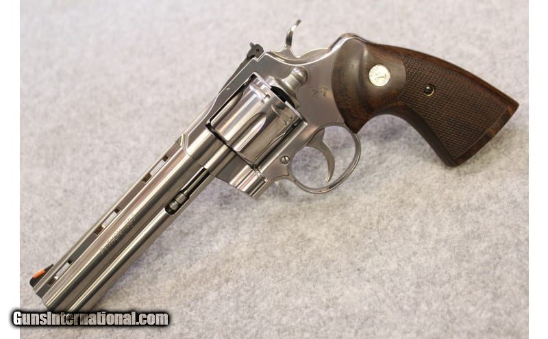 Description: This Colt Python Chambered in .357 Mag features, steel construction-with a polished stainless finish, rear adjustable sight, and Colt walnut grips. The Python is in excellent condition besides a light cylinder ring. .357 Mag SOLD Metal Condition: Excellent Wood Condition: Excellent Bore Condition: Bright Barrels: 6 Weight: 2.7 lbs. Item Location: Hoffman Estates, IL |
