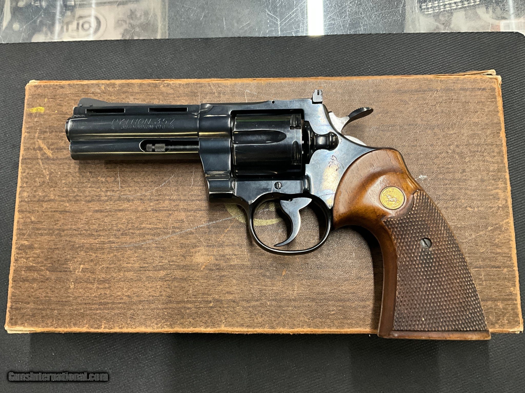 Description: Guns Listing ID: 463083 Colt Python 4’’ blue with factory box. Very good condition, wood grips, 4’’ barrel, 357 magnum. SOLD Manufacturer: COLT Model: PYTHON Caliber Info: .357 MAG Condition: Used - Non-Certified Barrels: 4 BARREL Action: REVOLVER Weight: 2.4 LBS. |