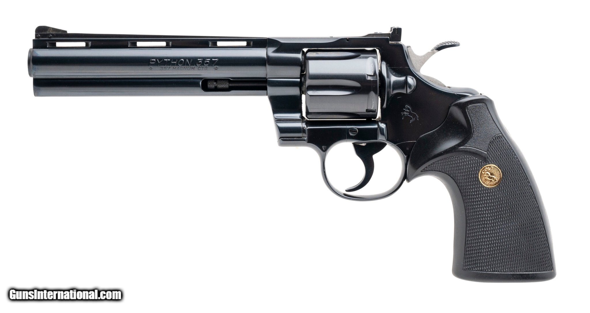 Description: Guns Listing ID: 506582 SN: K20182. Made in 1981, .357 Magnum with a 6\" vent rib barrel. Bore is bright with strong rifling. Beautiful 80s blued snake gun. Blued finish is is in very good condition. Pachmayr rubber grips are in very good condition. Comes with box. (C20754) Manufacturer: COLT Model: PYTHON Caliber Info: .357 MAG Condition: Used - Non-Certified Barrels: 6" BARREL Action: REVOLVER Finish: blued Price: $3,250.99 Contact Seller |