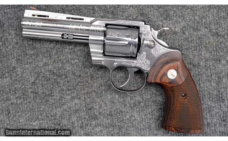 Description: For your consideration, a Colt Python chambered in .357 Magnum. The Colt Custom Shop has adorned the polished stainless finish with Armory Style C+ coverage cut engraving. Condition is new in box. .357 Magnum SOLD Chambers: 6 Metal Condition: NIB Wood Condition: NIB Barrels: 4.25 Triggers: Serrated Weight: 2.5 lbs Sights: Iron Sights Item Location: Hamburg, PA |