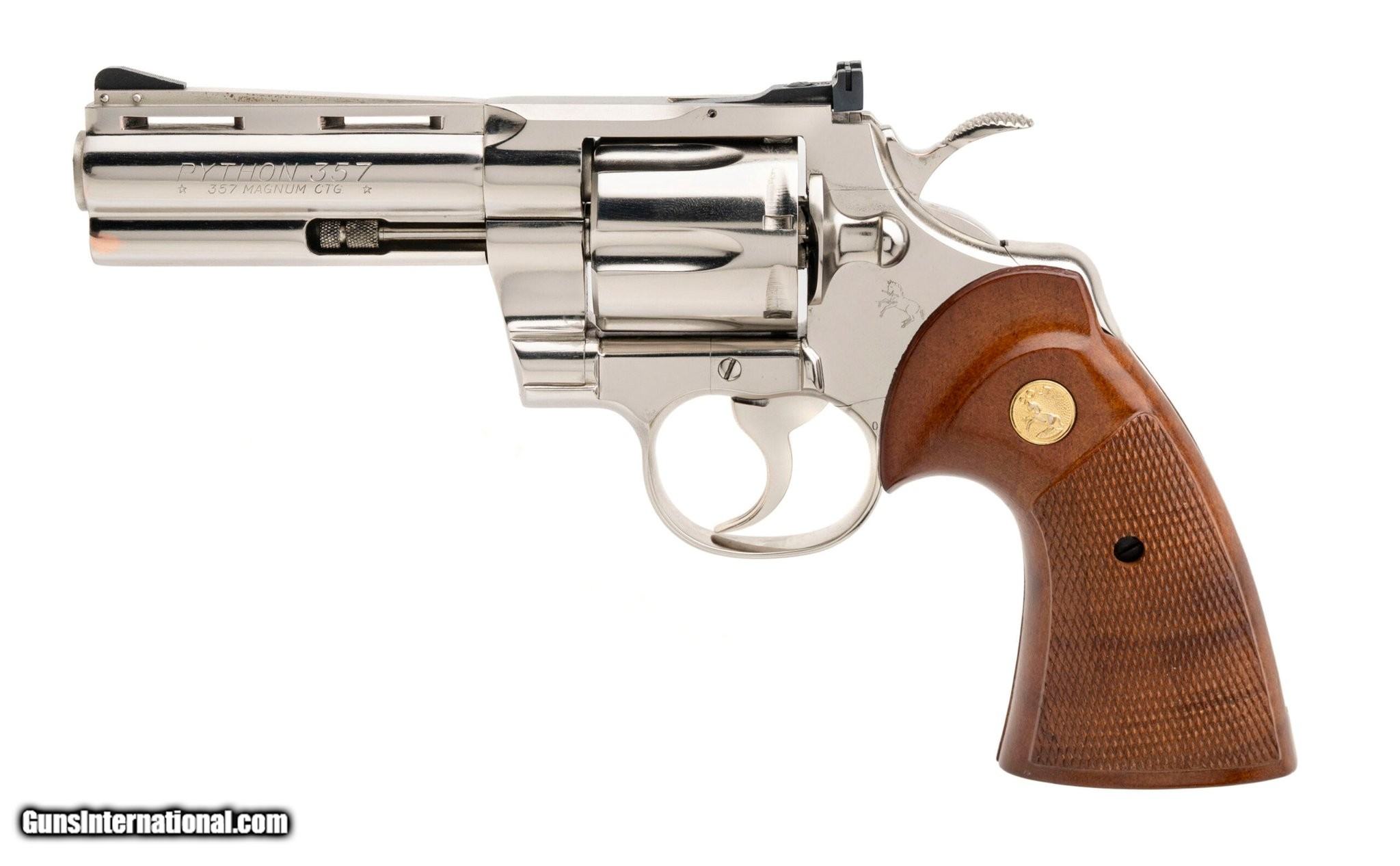 Description: Guns Listing ID: 556808 SN: 52642E. Made in 1977, .357 Mag with a 4\" barrel. Nickel plated snake gun in excellent overall condition. (C20920) Manufacturer: COLT Model: PYTHON Caliber Info: .357 MAG Condition: Used - Non-Certified Barrels: 4" BARREL Action: REVOLVER Finish: nickel Price: $3,250.99 Contact Seller |