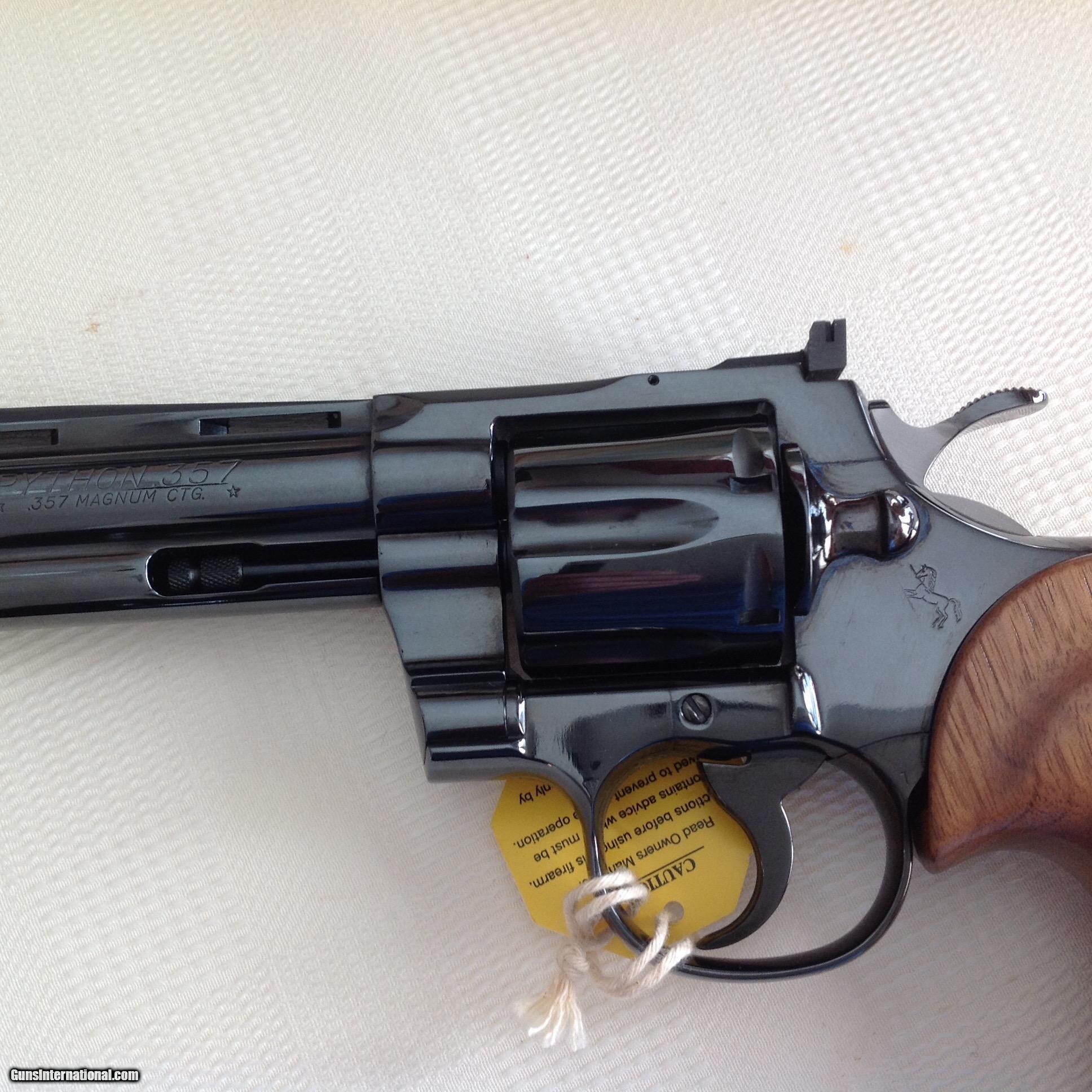 COLT PYTHON 357 MAGNUM, 4" BLUE, MFG. 1966, 100% COND., UNFIRED, UNTURNED IN BOX