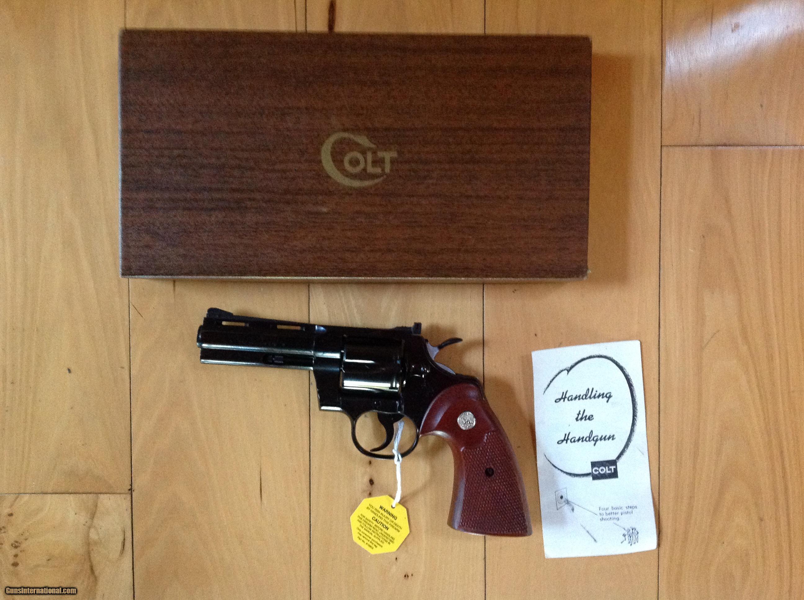 COLT PYTHON 357 MAGNUM, 4" BLUE, MFG. 1970, NEW UNFIRED, NO TURN RING, 100% COND, IN BOX [SOLD PENDING FUNDS]