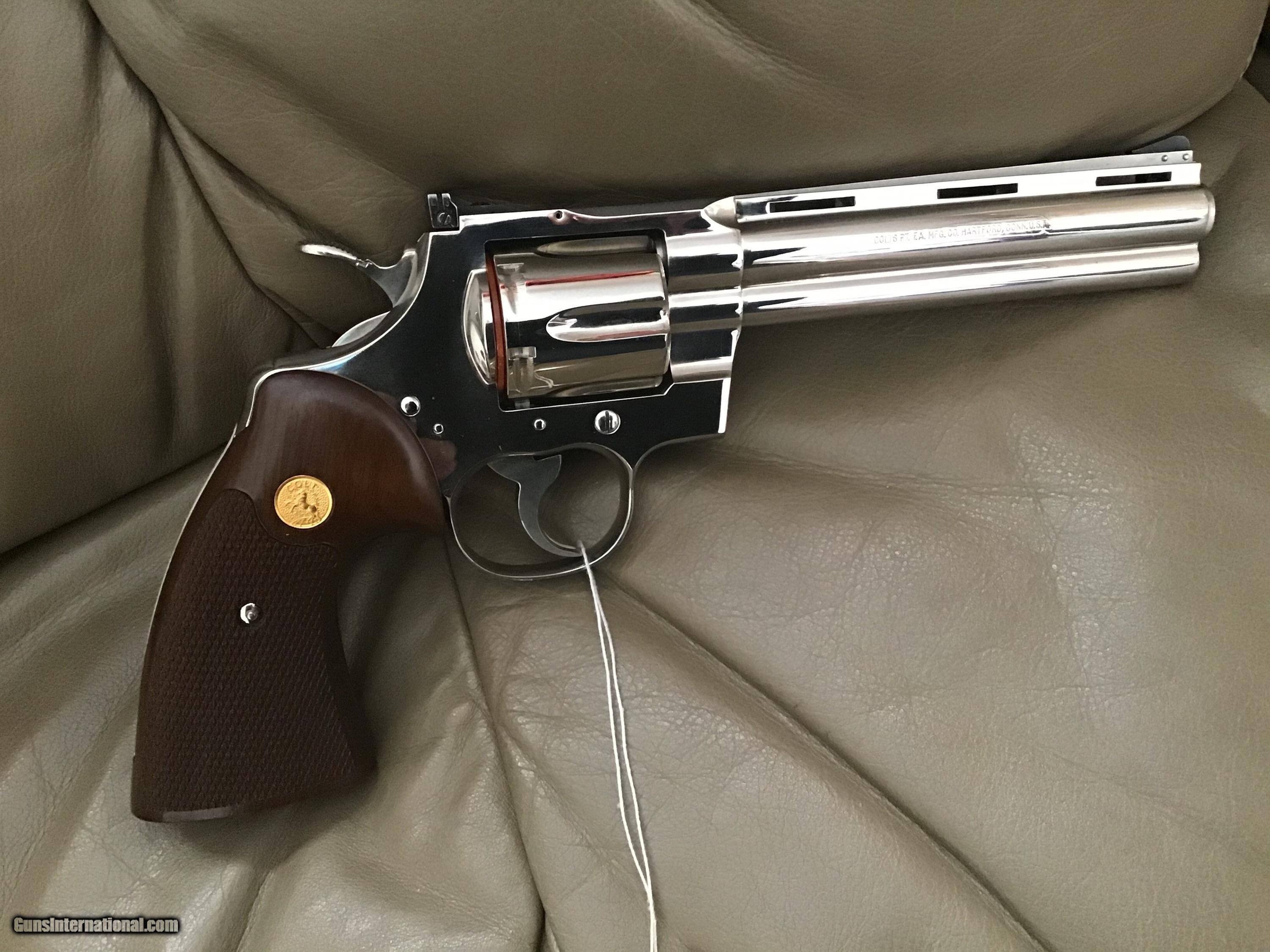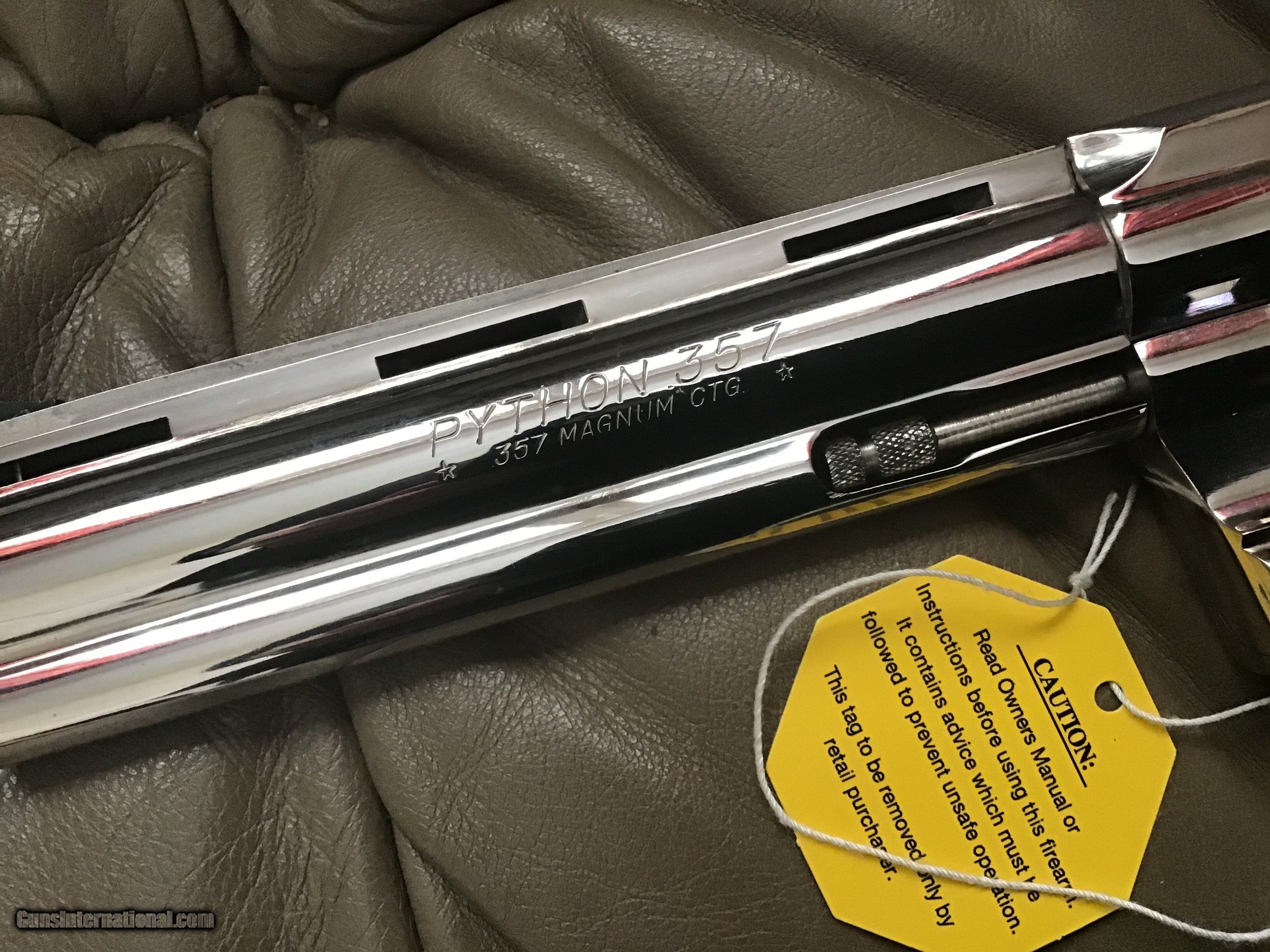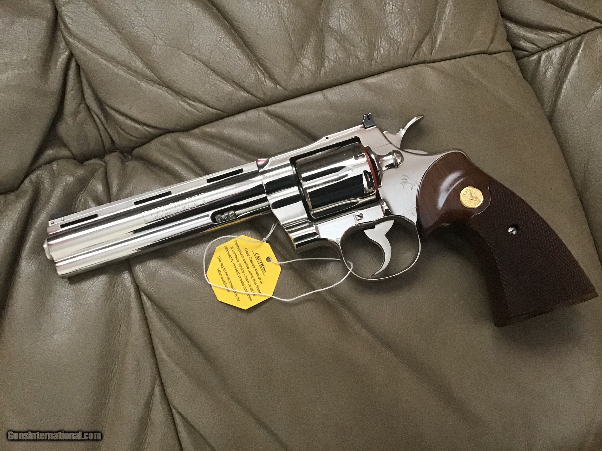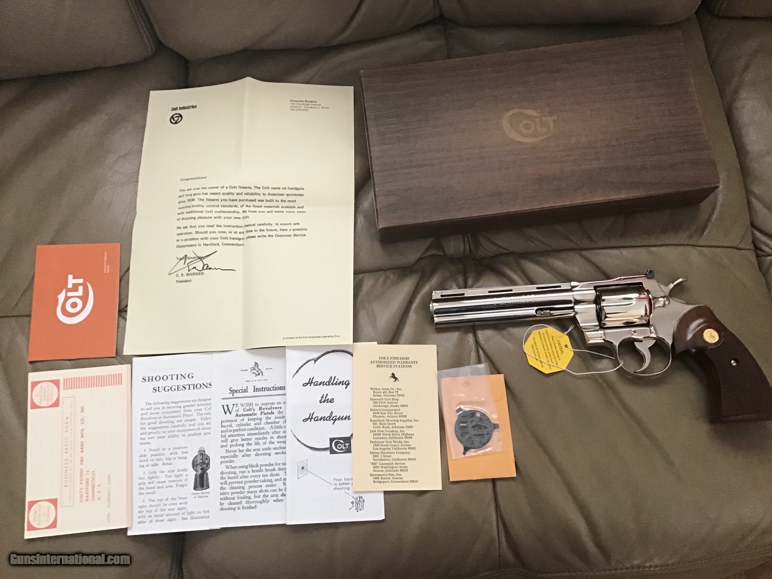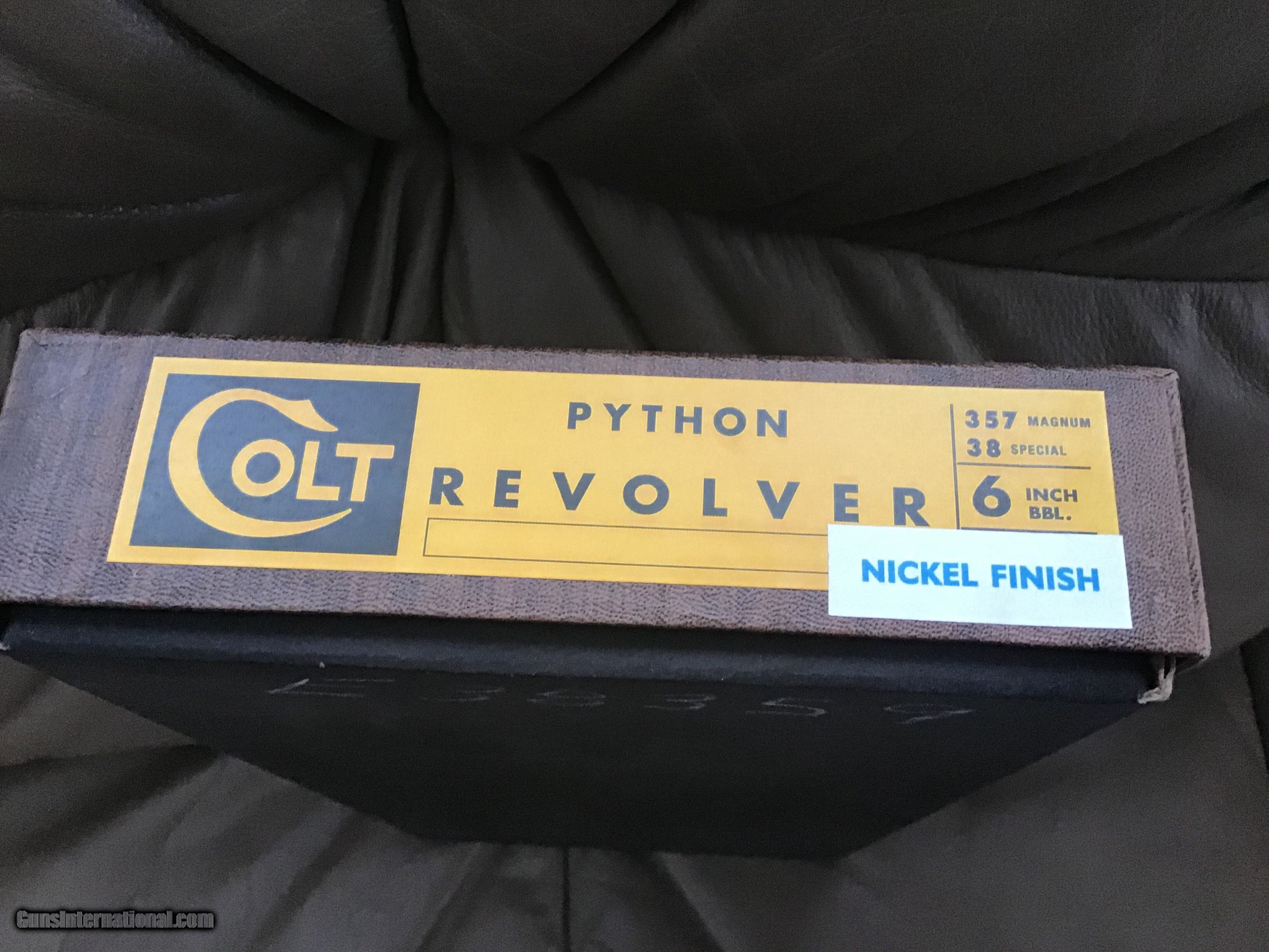 COLT PYTHON 357 MAGNUM, 6” BRIGHT NICKEL, MFG. 1972, NEW UNFIRED, UNTURNED 100% COND. IN THE BOX