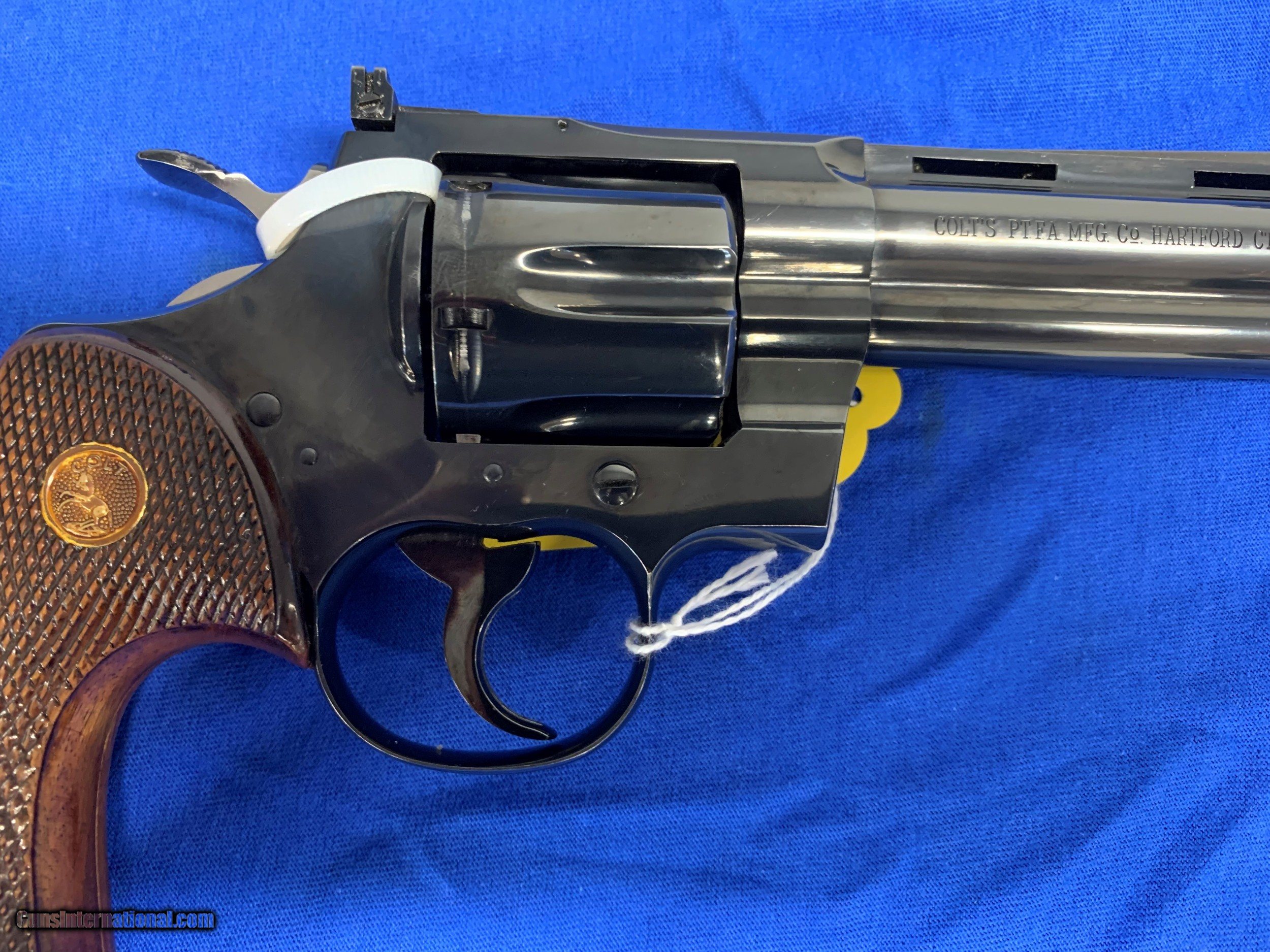 Description: 1959 Colt Python 357 magnum revolver with 6 inch barrel. Slight wear on front of barrel otherwise in excellent condition. SOLD Manufacturer: Colt Model: Python Serial Number: 8482 Barrel Length: 6 inches |