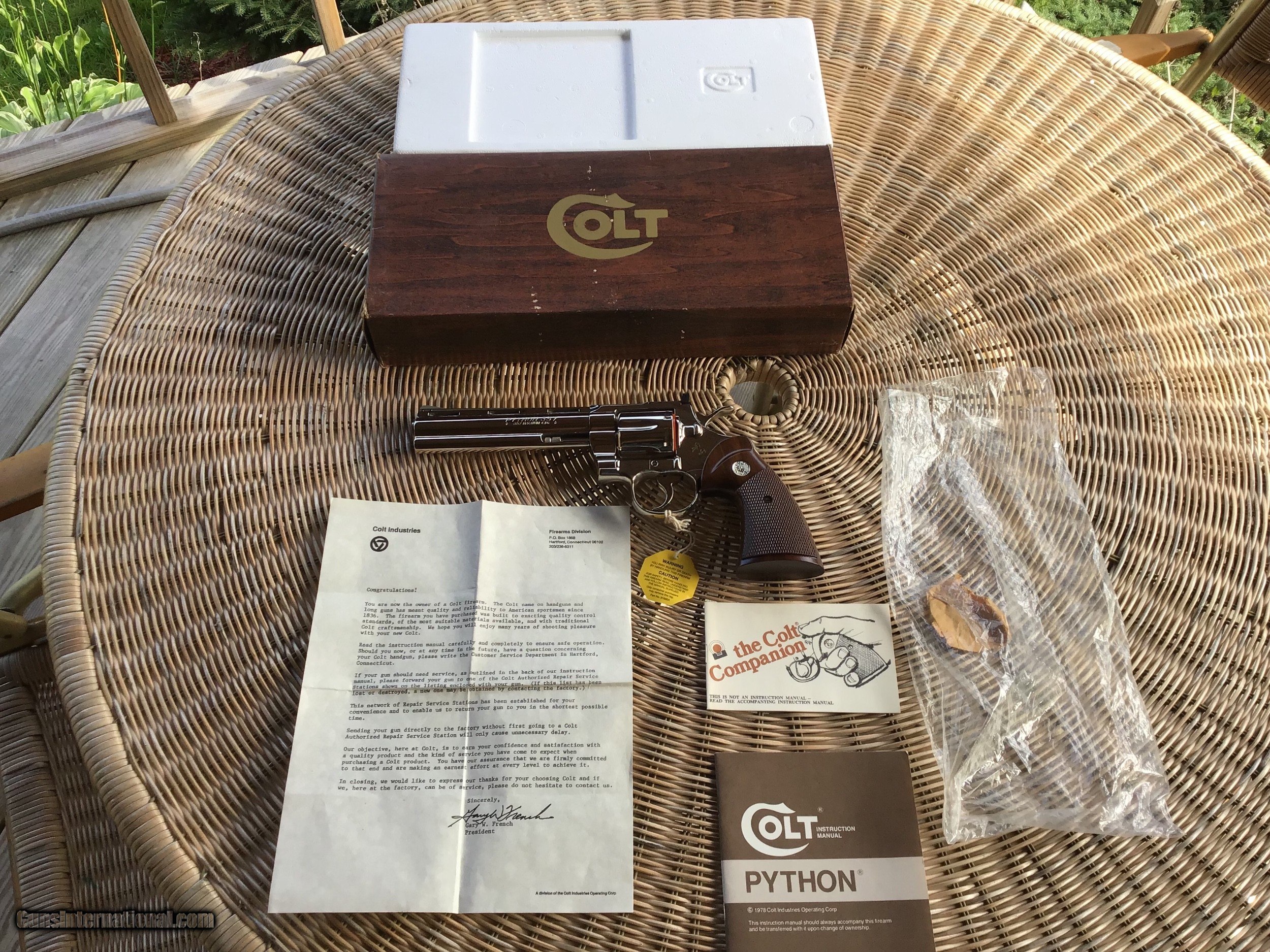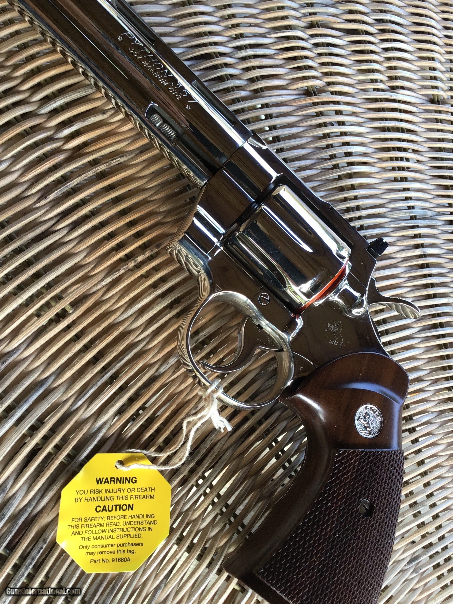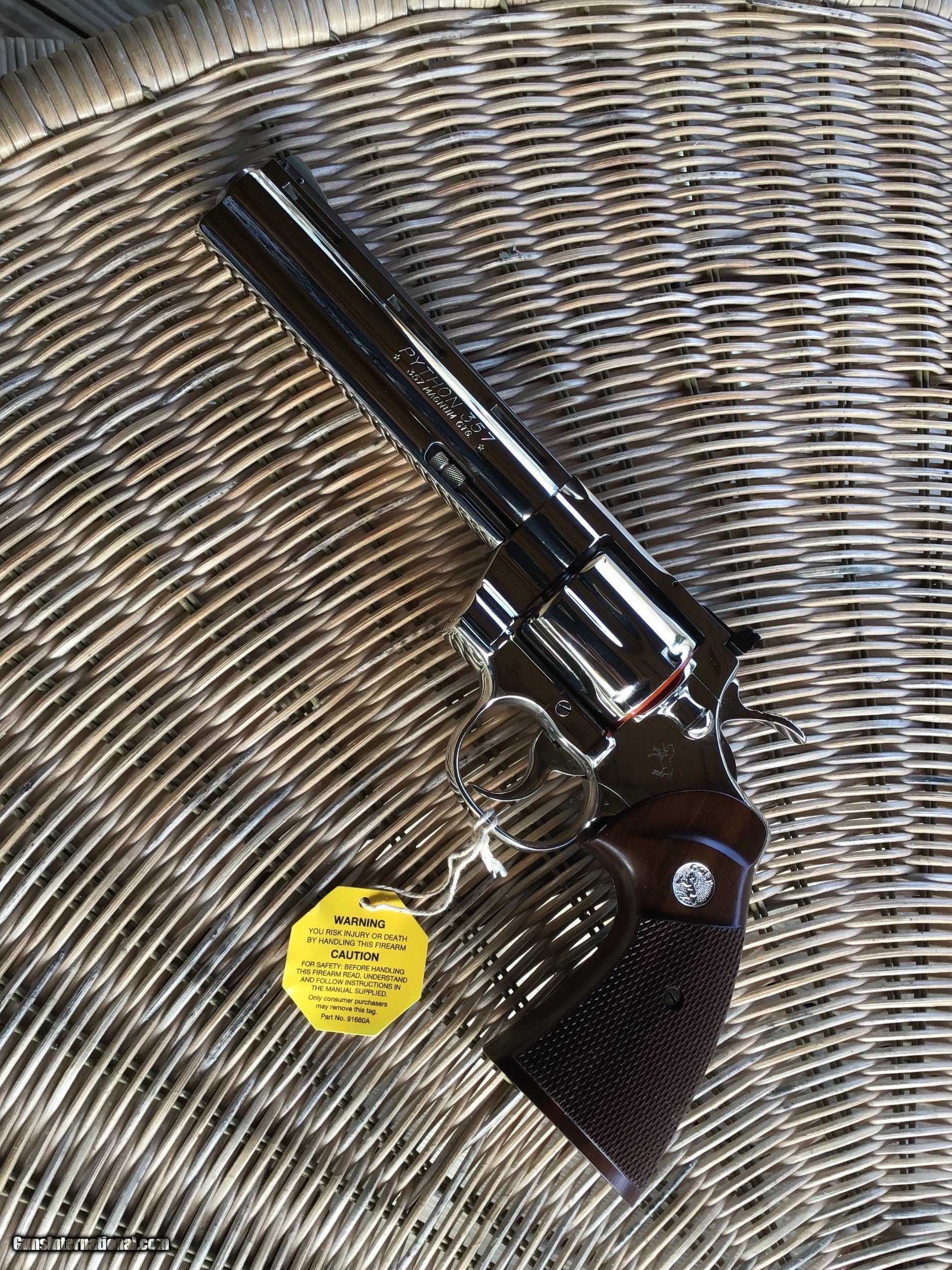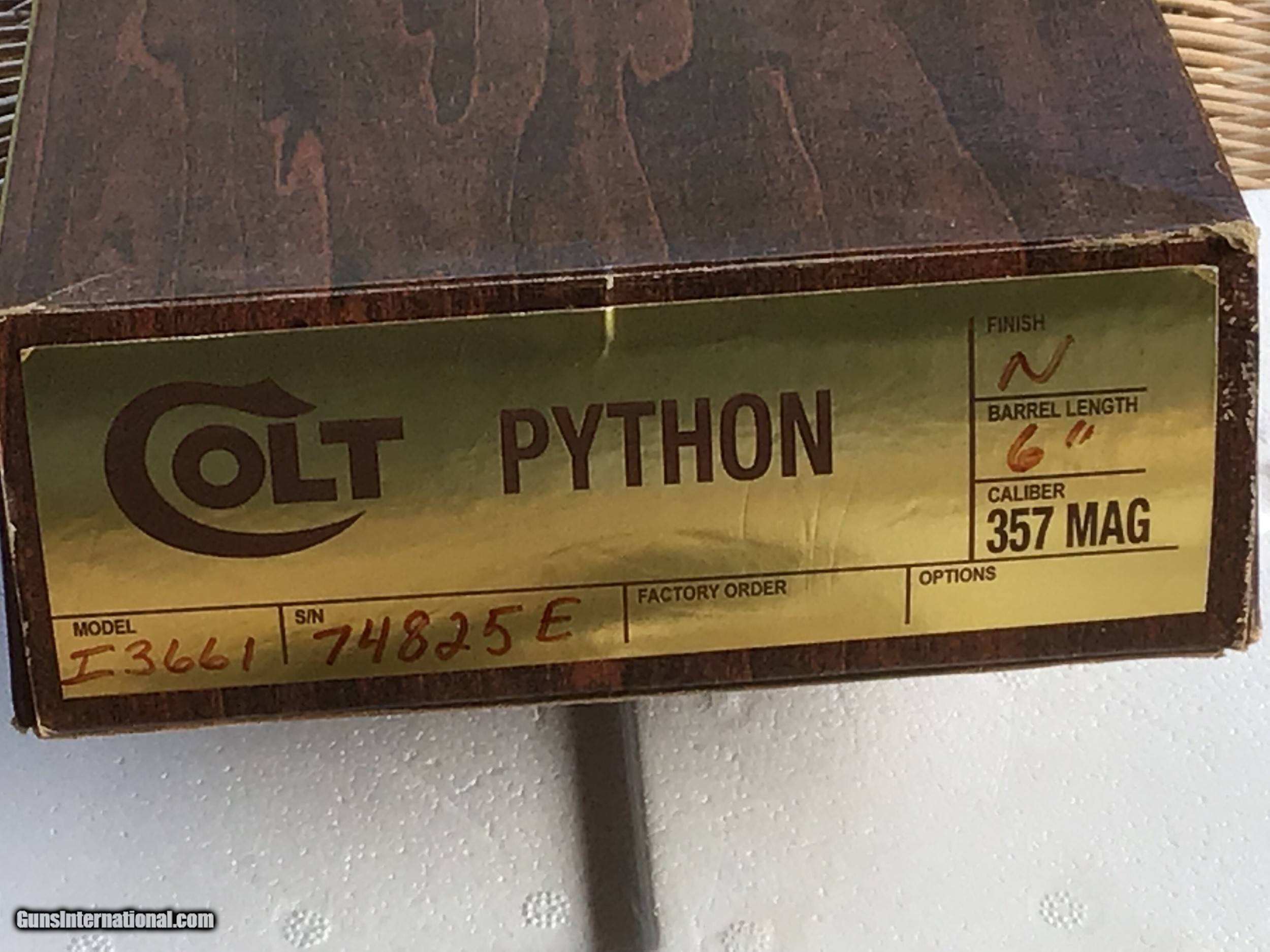 COLT PYTHON 357 MAGNUM, 6" BRIGHT NICKEL, MFG. 1977, NEW UNFIRED, UNTURNED 100% COND. IN THE BOX