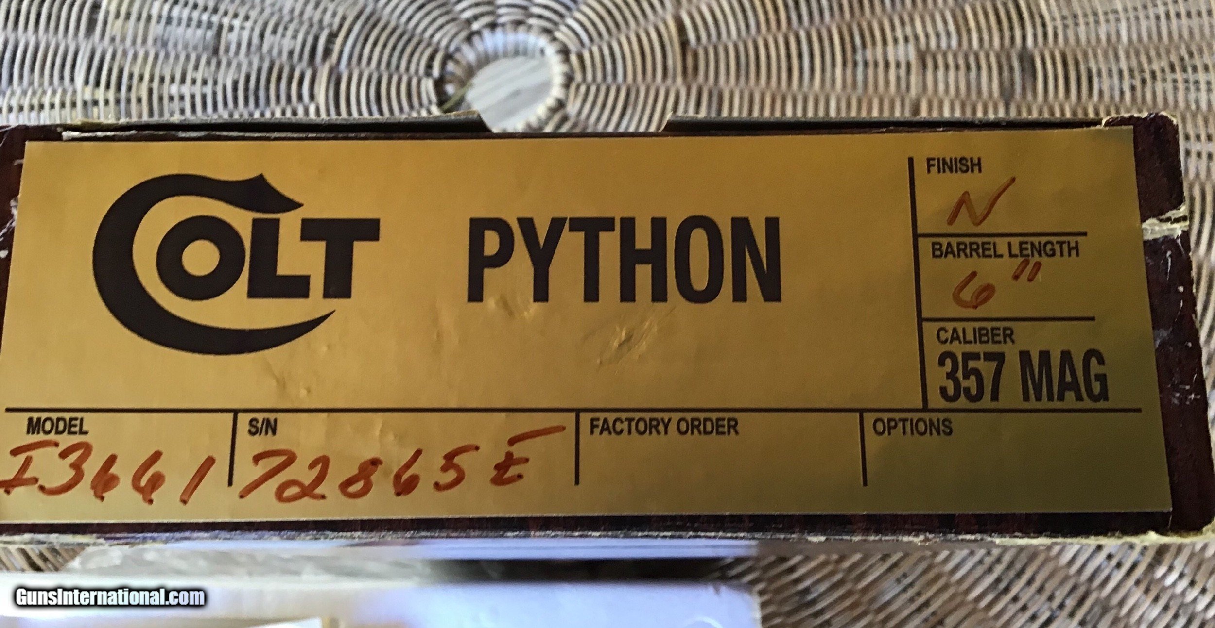 COLT PYTHON 357 MAGNUM, 6" BRIGHT NICKEL, NEW UNFIRED, UNTURNED, 100% COND. MFG. 1977, IN THE BOX