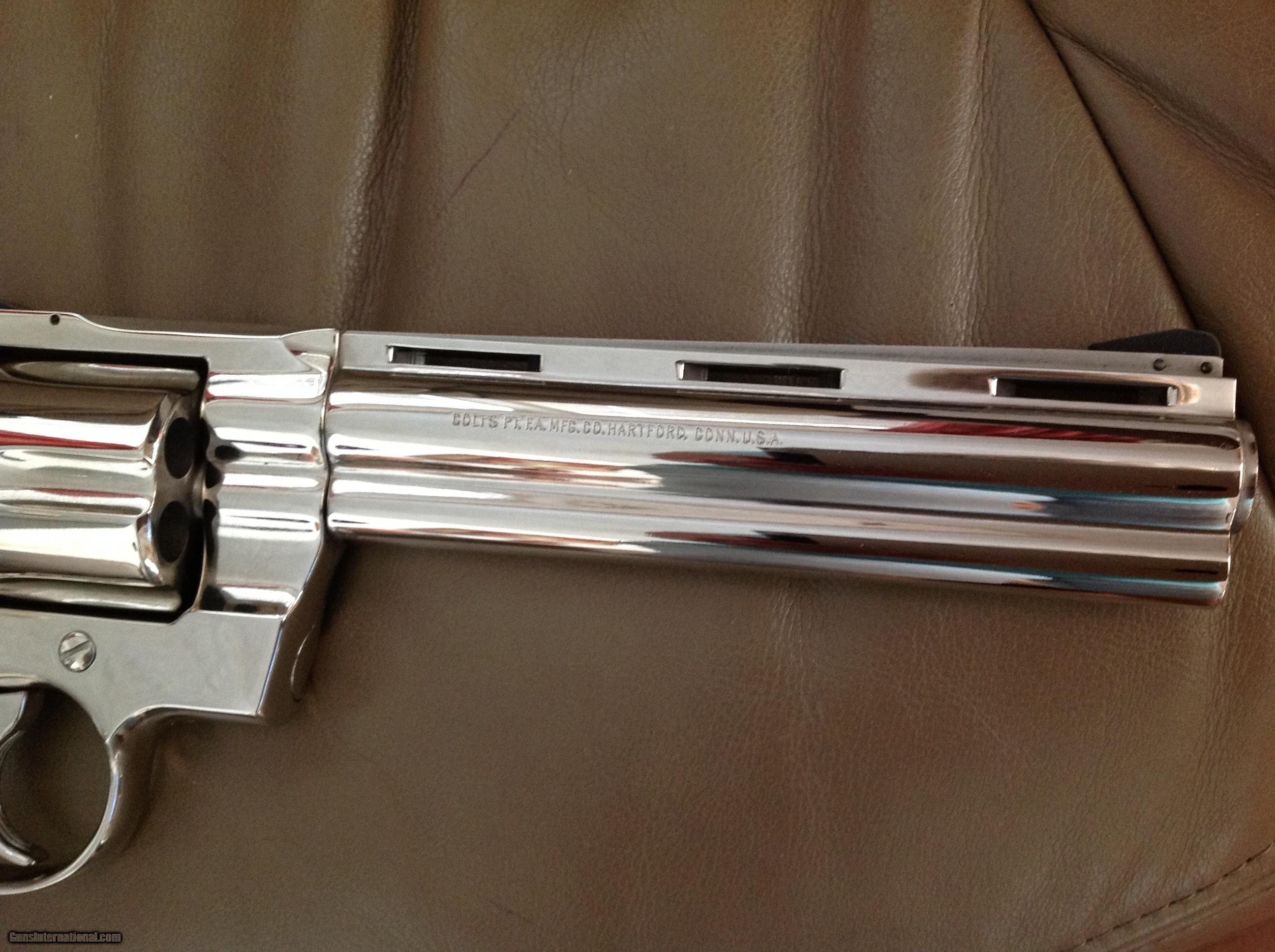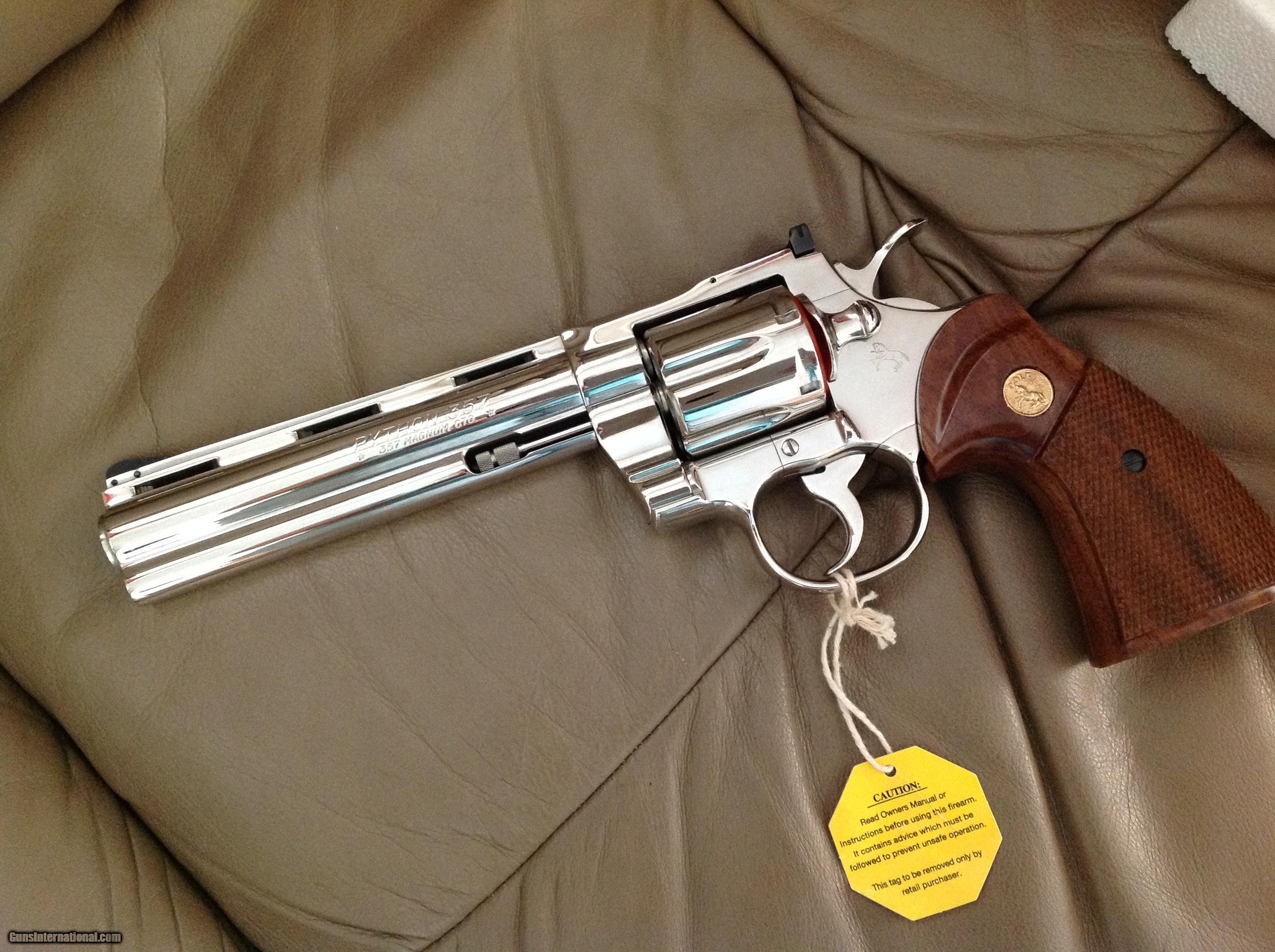 COLT PYTHON 357 MAGNUM 6" BRITE NICKEL, NEW UNFIRED, UNTURNED, NO TURN LINE, 100% COND. IN BOX, MFG. 1976