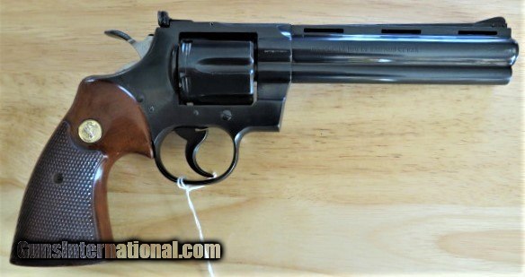 Description: SALE PENDING 20230920 - I purchased this gun from the original owner who bought it in Clearfield, Pa at a hardware store in 1965. This gun has been shot by the first owner. It shows minor handling marks and slight holster wear. It has three distinct marks on the frame: one on each side of the frame in line with the forcing cone and one on the top strap. These marks and all wear are clearly presented in the listing photos. There is a faint wear ring on the cylinder. There is no corrosion or crazing in the finish often seen in highly-polished guns that have been used. This gun shows honest wear as described here but still rates a fine to excellent condition rating. The blue finish is shiny, deep and lustrous. The original grips show minor use but rate about excellent. The action is buttery smooth and reflects the quality of pythons made in the 1960s. No box or other accessories are provided. Please review the pictures to assess condition and contact me with questions. Please note that this item can be returned if delivered damaged or if condition has not been accurately presented in this listing. Shipping/insurance to the lower 48 states is included in the purchase price; additional shipping fees apply for Alaska and Hawaii. Item will be shipped by an FFL; an FFL or C&R is required to purchase. Please do not attempt to purchase this item if the laws of your state prevent receipt or transfer to you. Will be shipped according to the laws of the ship-to destination. SOLD Handgun Caliber: .357 Magnum Manufacturer: Colt Model: Python Serial Number: 45312 Barrel Length: 6-inches Condition: Fine-excellent |