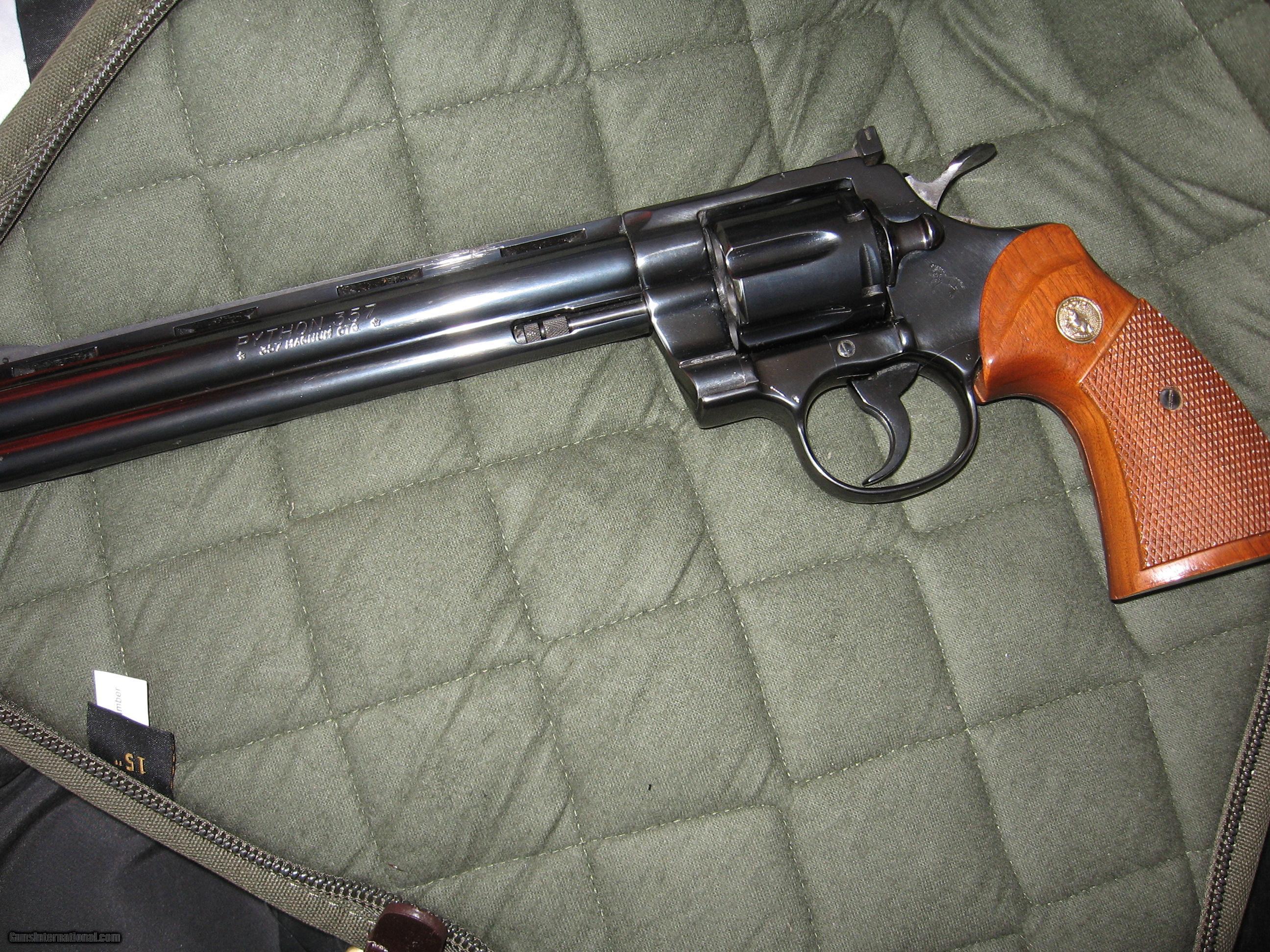 Description: 1965 COLT PYTHON 8" BARREL .357 MAGNUM PERFECT FACTORY WOOD GRIPS " UN - FIRED " NO TURN LINE IN " NEW " CONDITION no factory box small blemish on rail...... S/H with Ins. shipped to your FFL Dealer included USPS MONEY ORDER ONLY PLEASE Thanks and Have Great Day ! SOLD Curio/Relic: Yes Manufacturer: COLT Model: PYTHON Caliber Info: .357 MAGNUM Bore: MIRROR Chambers: MIRROR Condition: EXCELLENT Metal Condition: EXCELLENT Wood Condition: EXCELLENT Bore Condition: EXCELLENT Triggers: TARGET / TARGET HAMMER Manufacture Date: 1965 Item Location: WISCONSIN |