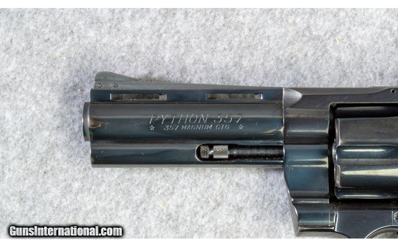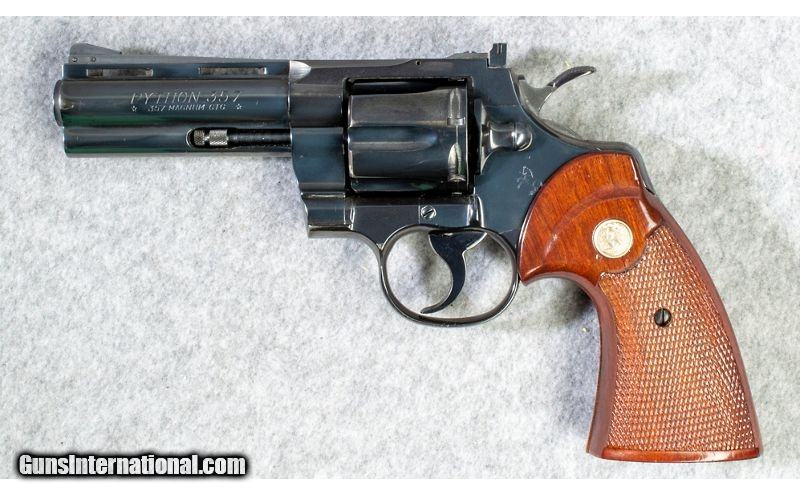 Description: 1972 Colt Python chambered in .357 Magnum. Blue and Bore are excellent, displaying only very minor handling marks. Wood is excellent. .357 Mag./ .38 Special SOLD Metal Condition: Excellent Wood Condition: Excellent Bore Condition: Excellent Barrels: 4" VR Barrel Butt Pad: Factory Colt Checkered Walnut Grips with Medallion Sights: "Fixed Front Blade, Adjustable Rear Item Location: short pump |