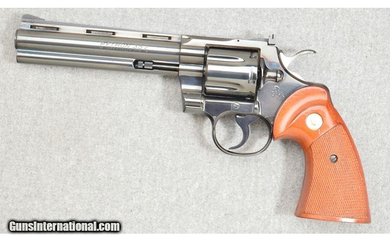 Description: For your consideration, a Colt Python chambered in .357 Magnum. With only a faint turn line marking the cylinder, it is in overall excellent condition. This piece dates to 1978. .357 Magnum SOLD Chambers: 6 Metal Condition: Excellent Wood Condition: Excellent Bore Condition: Excellent Barrels: 6 Triggers: Serrated Face Weight: 2.75 lbs Sights: Iron Sights Item Location: Hamburg, PA |