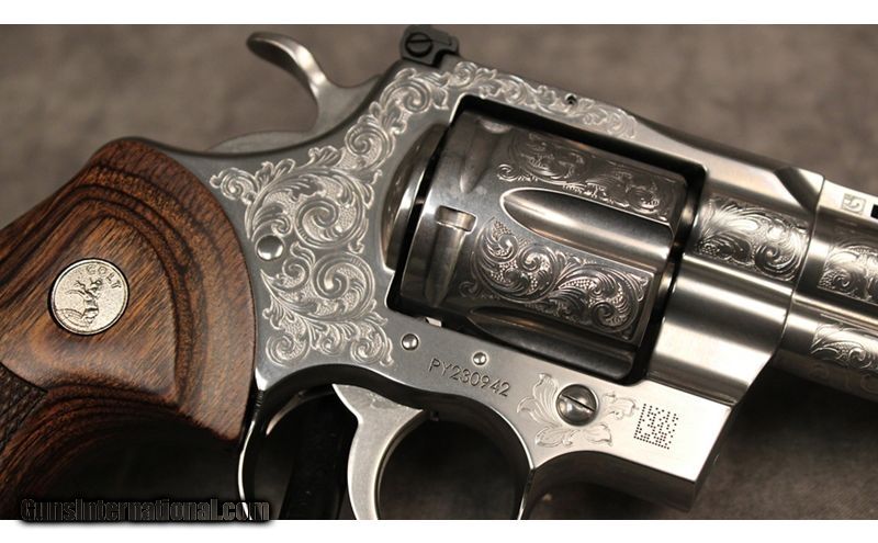 Description: This Colt Python features armory engraving throughout with a 6" barrel. .357 Magnum SOLD Metal Condition: Excellent Wood Condition: Excellent Bore Condition: Excellent Barrels: 6 Weight: 3lbs Item Location: Broken Arrow, OK |