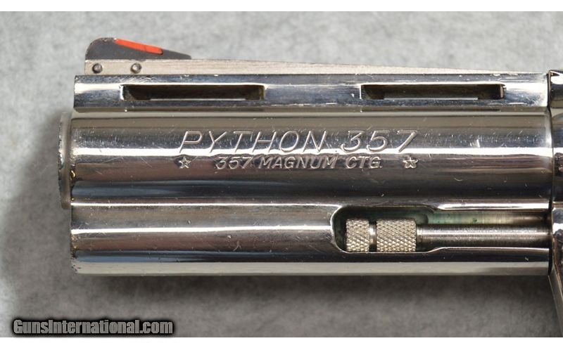 Description: Colt Python in excellent shape. Made in 1977, this Colt features the classic Colt action and stainless finish. Only minor handling marks and slight cylinder line. SN: 59923E .357 Magnum SOLD Metal Condition: Excellent Wood Condition: Excellent Bore Condition: "Clean, Good Rifling Barrels: 4 Butt Pad: Pachmayr Grips Weight: 2 lb 10 oz Item Location: Fort Worth, TX |
